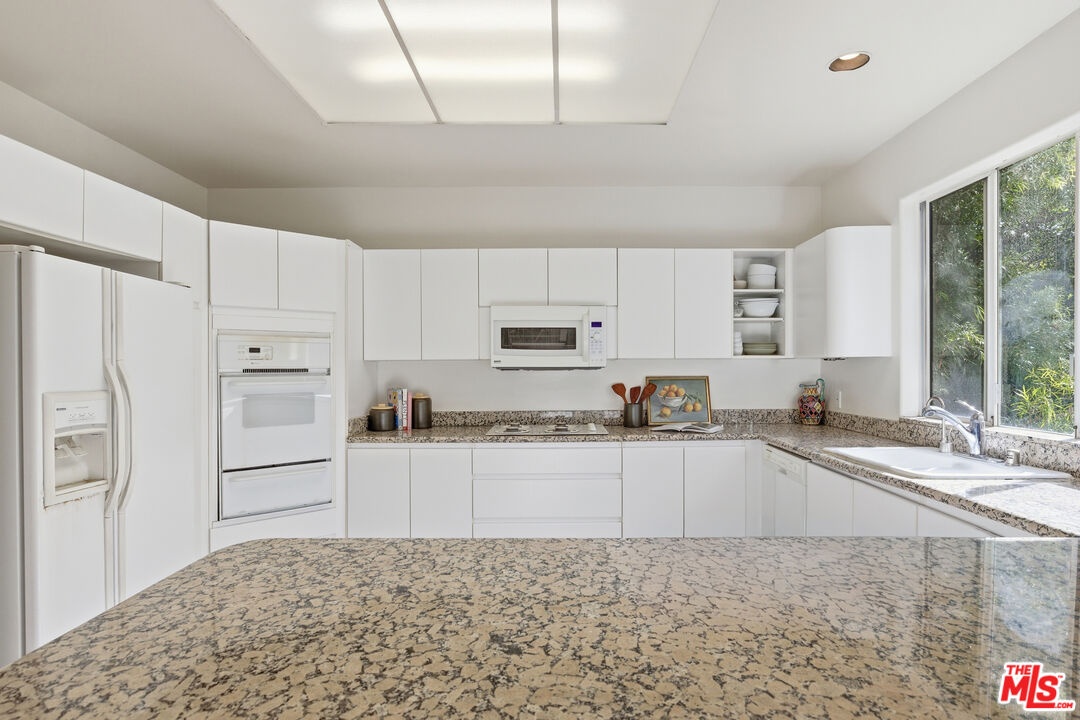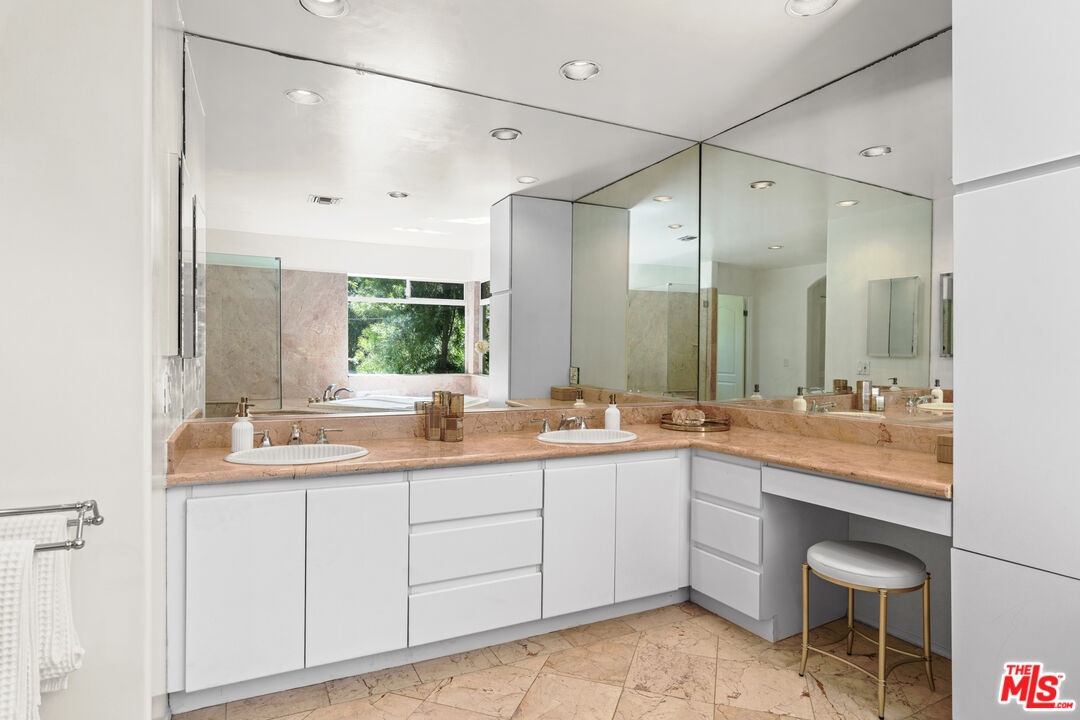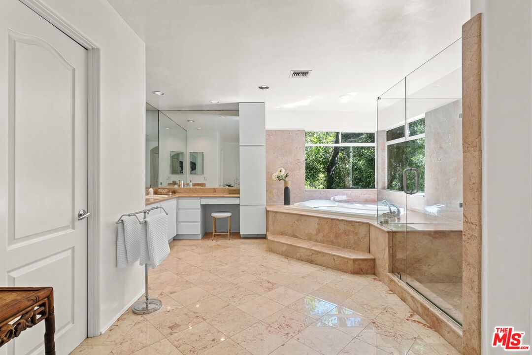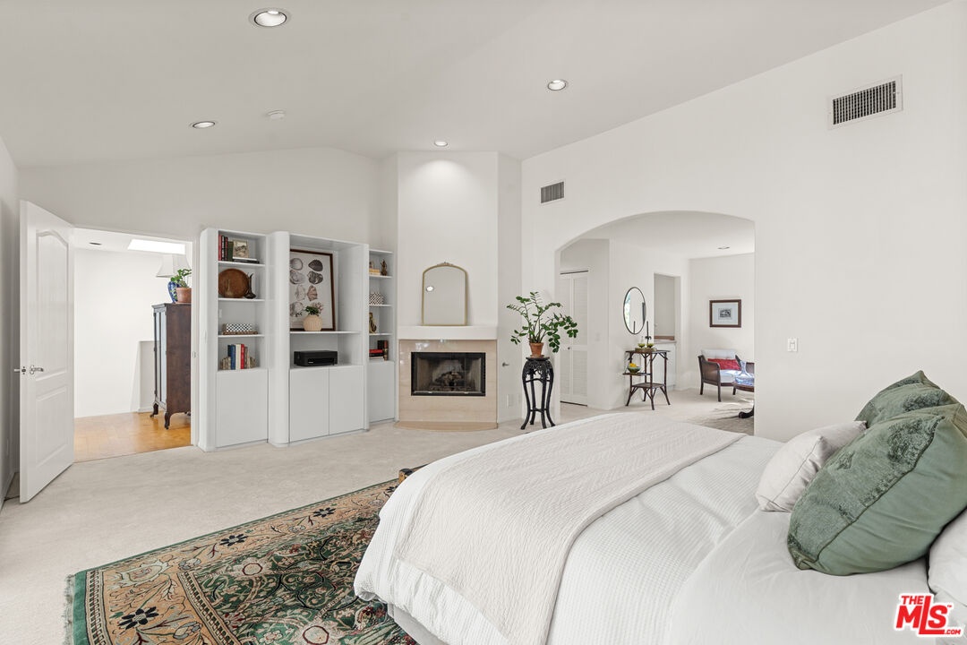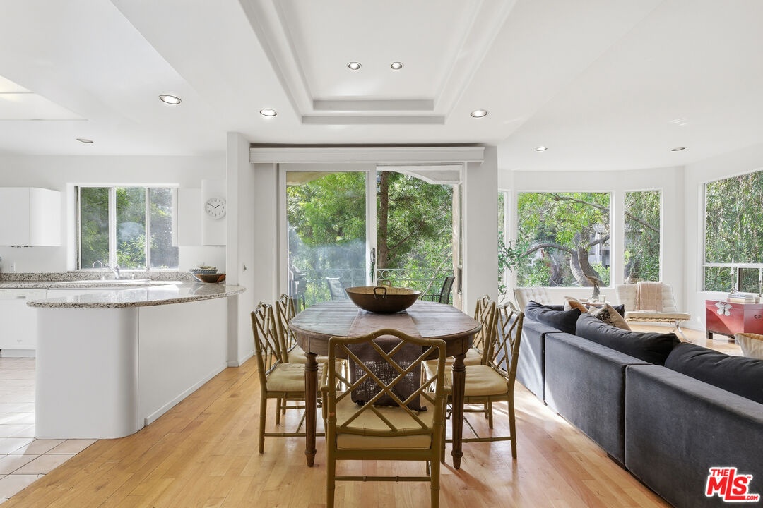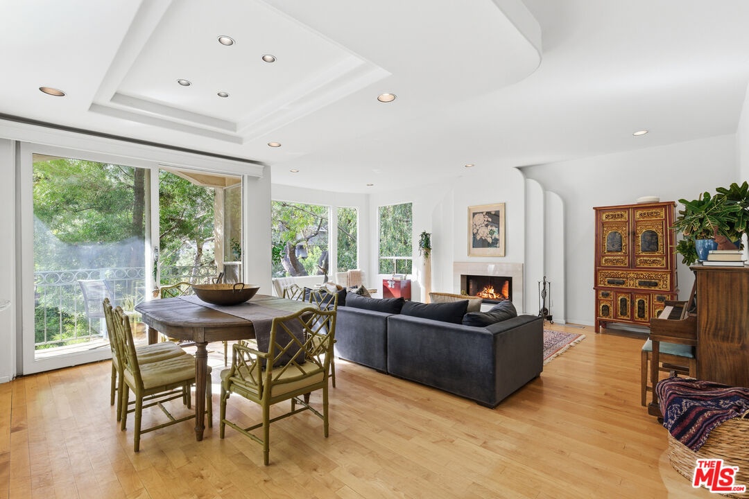 Nestled in a canyon above Beverly Hills, 10055 Reevesbury Drive is a centrally located, elegant retreat surrounded by peaceful nature. Seeking the nightlife of West Hollywood, the glamour of Rodeo Drive, the calm suburbia of Sherman Oaks, or the historic campus of UCLA? All are within a ten-minute drive from this Mediterranean villa.Located on a leafy street and zoned for top nearby schools, the true delight begins inside, as exceptional design and comfort await. Sun-filled open-plan spaces with recessed lighting make this multi-level home perfect for those seeking personal space and privacy while also offering a natural place to gather friends and family.A marble entry introduces a bedroom perfect as a guest suite, office, or creative studio, plus full bath and direct access to the attached two-car garage for easy parking and storage.The main level is built for easy entertaining: an open living and dining great room with expansive west-facing windows framing lush hillside views, wood-burning fireplace, and a chef's kitchen that keeps everyone connected while you host. Also on this floor, a generous second bedroom, bath and private courtyard - an intimate outdoor nook ideal for morning coffee or yoga.Upstairs, the primary suite lives like a private sanctuary, with soaring ceilings, a separate sitting area, a cozy gas fireplace, and over 1,000 square feet of comfort that makes long days feel shorter. Sliding glass doors open to a private terra cotta terrace for sunbathing or dinner al fresco. The spa-inspired primary bathroom is appointed with marble surfaces, a jetted soaking tub, and dual walk-in closets, evoking the luxury of a high-end spa.In a city that often demands choosing between convenience and calm, 10055 Reevesbury Drive stands out as a rare offering that delivers both. It's a place where ambition meets tranquility the pulse of the city at your fingertips, and a serene haven to come back home to.