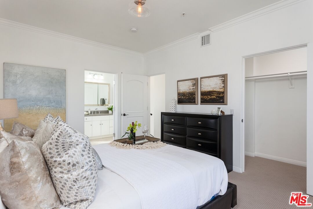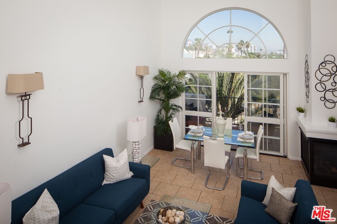 Luxurious Penthouse-like Condo at The Desmond West Hollywood. Experience elevated living in this rare two-story top floor condo at the iconic Desmond, one of the most coveted addresses in the Norma Triangle. Bathed in natural light through a dramatic arched picture window, the residence blends timeless architecture with modern upgrades. The main level showcases open-concept living and dining areas with 20+ft ceiling and a cozy fireplace that flow seamlessly to a generous balcony featuring views of the Design Center and DTLA. The chef's kitchen is updated with sleek Caesarstone countertops, marble backsplash, and stainless-steel appliances, plus in-unit laundry and a versatile en-suite guest bedroom with walk-in closet. Upstairs, the private primary retreat impresses with its own balcony, spacious walk-in closet, and en-suite bath. Additional highlights include two side-by-side gated parking spaces, secure entry, tons of secure guest parking, and access to The Desmond's lush courtyard with tranquil fountains. Spacious and thoughtfully designed, it has all the features that make condo living exceptional and is perfectly positioned just steps from West Hollywood's premier dining, boutiques, and nightlife. This penthouse offers an ideal mix of style, comfort, and convenience -- a perfect place to call home! Vacant and available now, furnished or unfurnished.