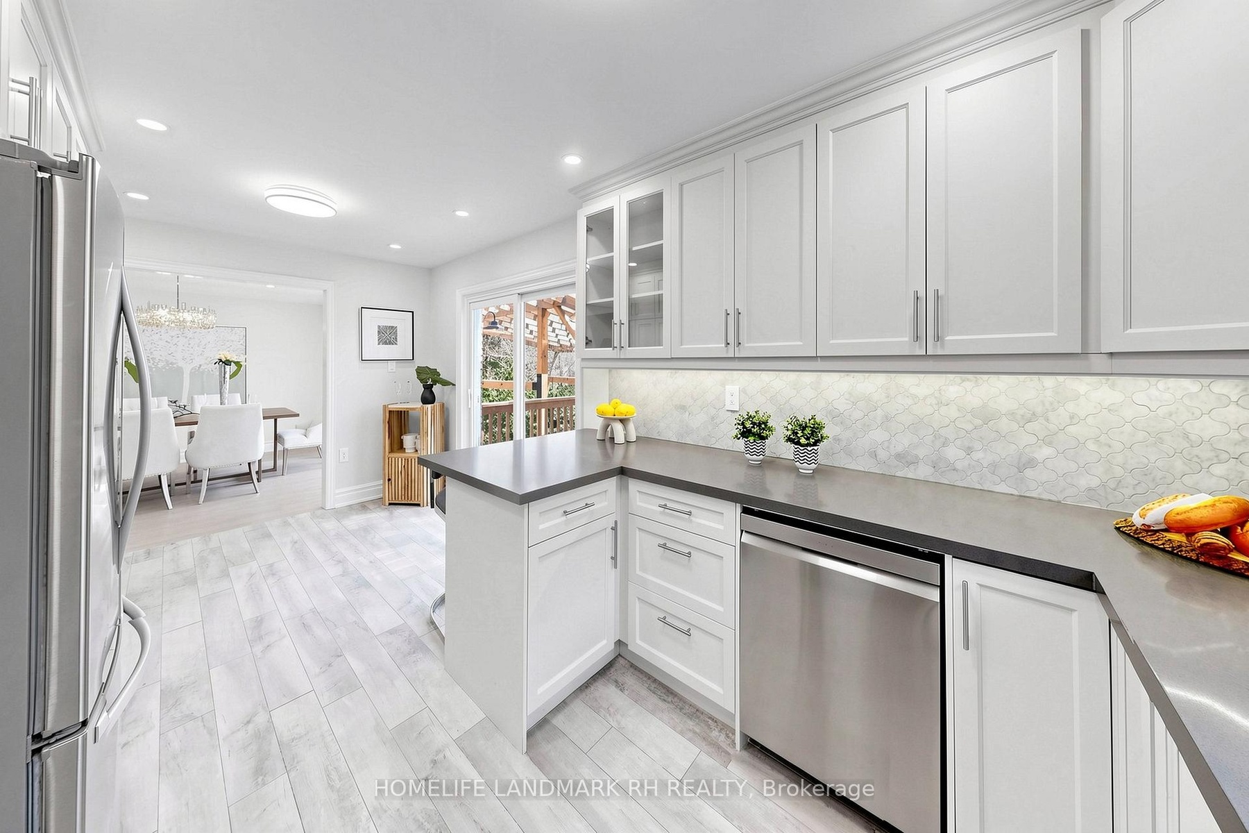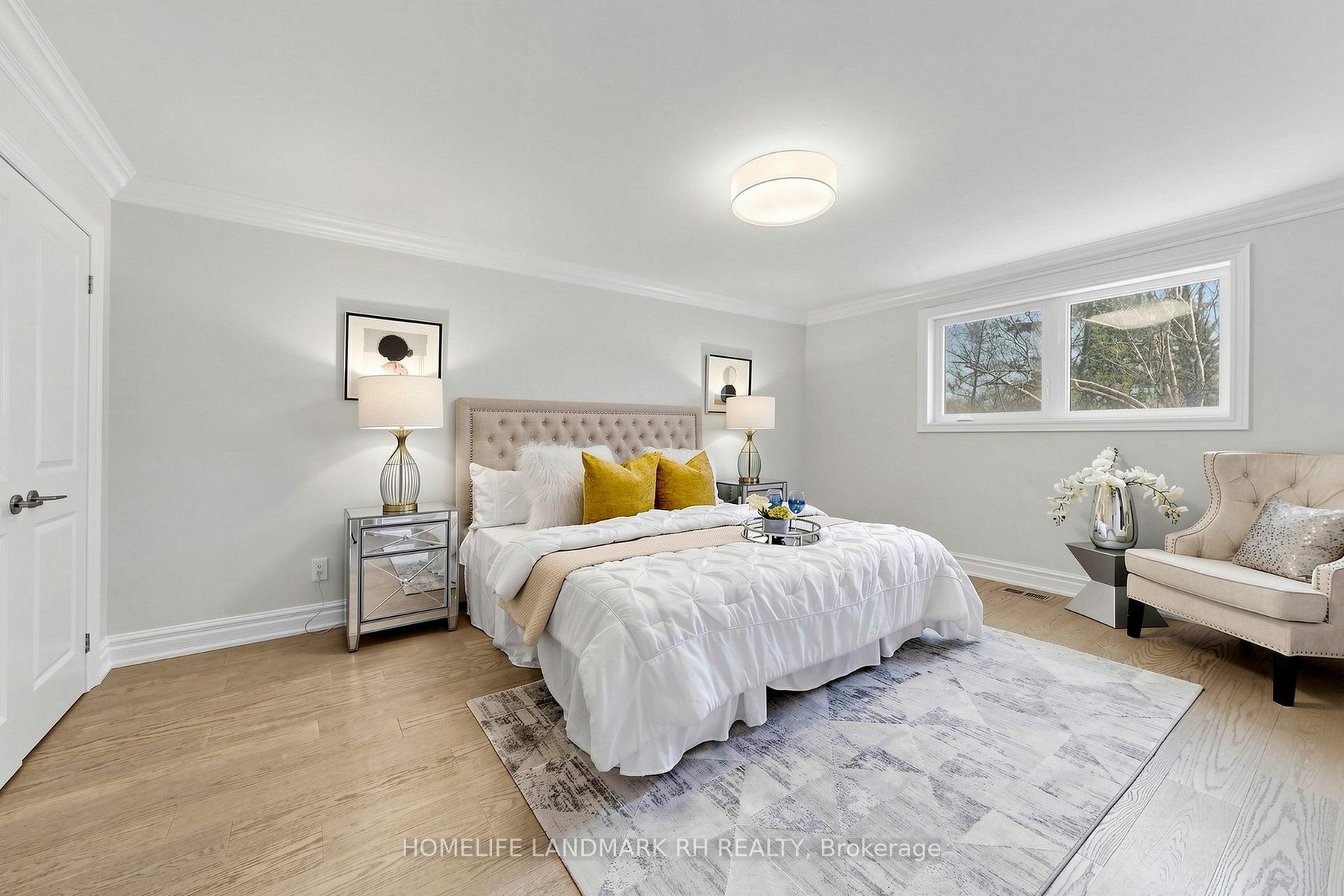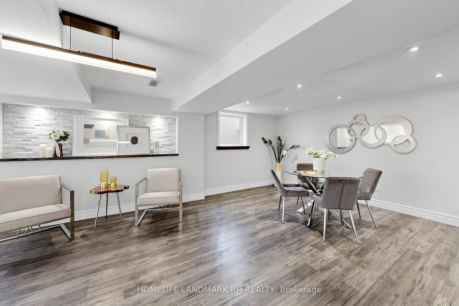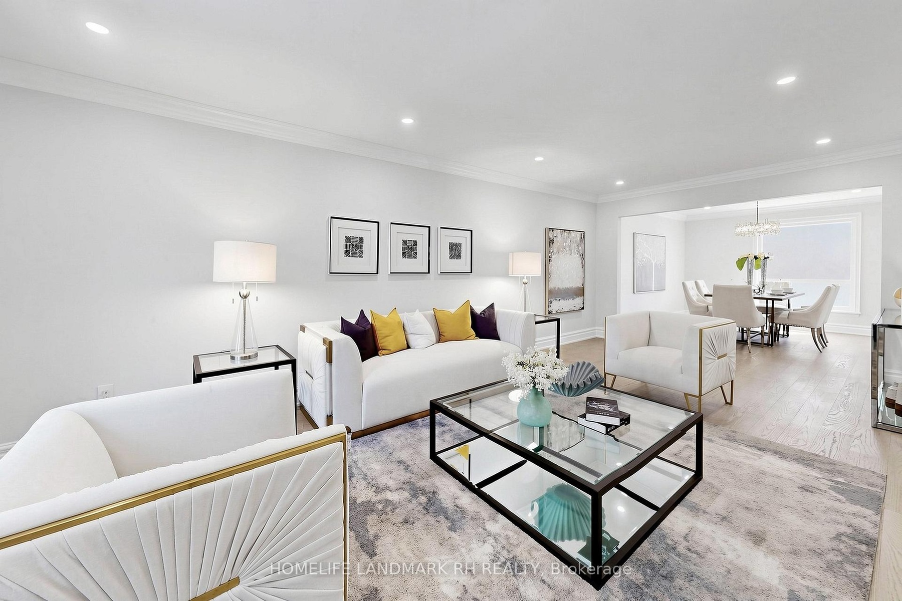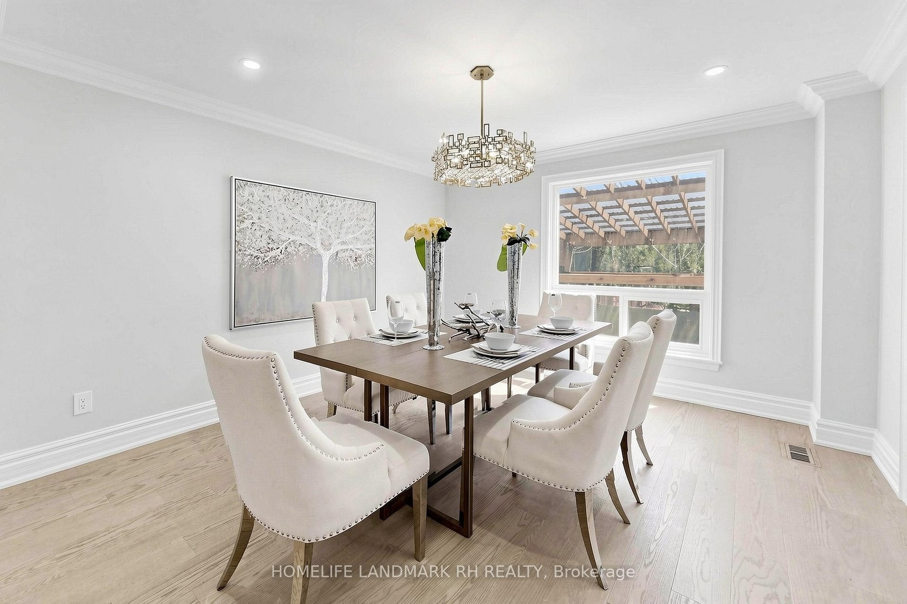 Gorgeous Detached Home w/ Double Car Garage in child safe Cul-De-Sac. Premium 60 Ft x 125 Ft Pie shaped Lot w/80 Ft rear. Over 3500 S.F. living space including Fin. Walk-Out Basement . $$$ Upgrades: Hardwood Flooring & Pot Lights throughout. Large Living / Dining with Crown Moulding. Beautiful Floating Staircase w/Glass Railing. Gourmet Kitchen w/ Granite Countertop & Breakfast Bar, Backsplash, Valance Lighting & Pantry. Large Primary Bdrm w/4 Pcs Ensuite and His & Hers Closets. Separate Entrance W/O Basement Apartment w/2 bedrooms, Rec, Sitting, Dining & Study, the 2nd Kitchen and the 2nd Laundry. Large Private South Facing backyard w/huge Deck w/Built-In Pergolas. Double Car Garage w/Built-In organizers & Epoxy Flooring. Long Driveway can park 6 cars. Close to Public Transit, Park, Schools & trails. Mins to Shopping Plaza, Golf, supermarkets and shopping. Close to Hwy 407 & 404. ** High Ranking Thornhill Secondary School.