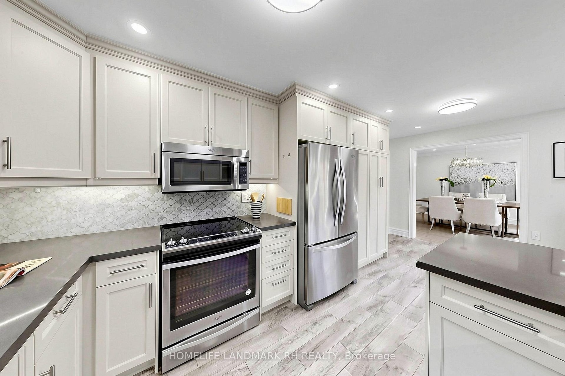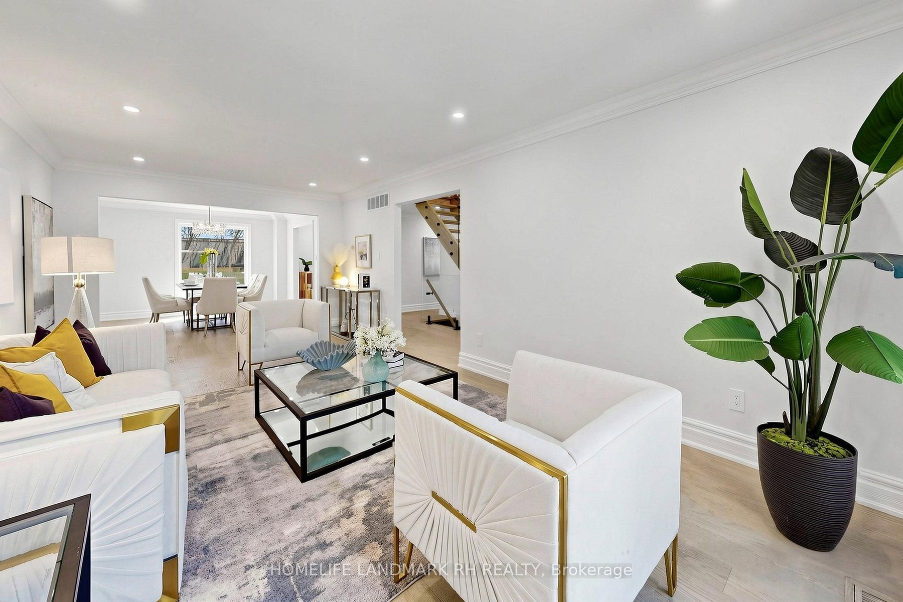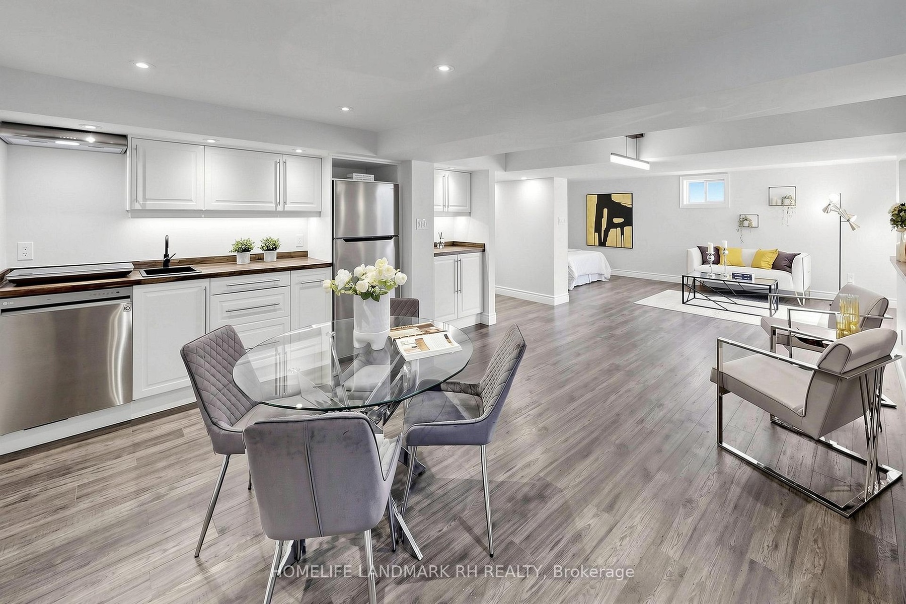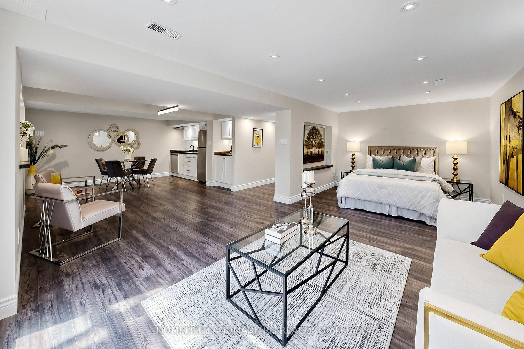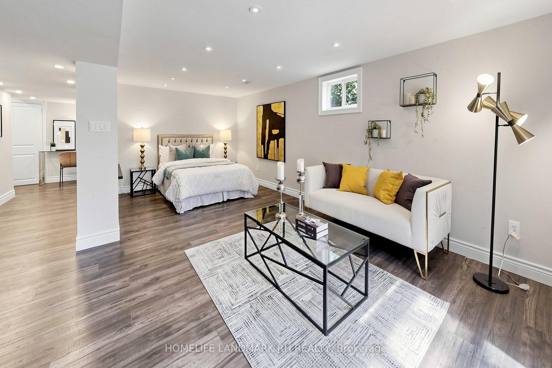 Gorgeous Detached Home w/ Double Car Garage in child safe Cul-De-Sac. Premium 60 Ft x 125 Ft Pie shaped Lot w/80 Ft rear. Over 3500 S.F. living space including Fin. Walk-Out Basement . $$$ Upgrades: Hardwood Flooring & Pot Lights throughout. Large Living / Dining with Crown Moulding. Beautiful Floating Staircase w/Glass Railing. Gourmet Kitchen w/ Granite Countertop & Breakfast Bar, Backsplash, Valance Lighting & Pantry. Large Primary Bdrm w/4 Pcs Ensuite and His & Hers Closets. Separate Entrance W/O Basement Apartment w/2 bedrooms, Rec, Sitting, Dining & Study, the 2nd Kitchen and the 2nd Laundry. Large Private South Facing backyard w/huge Deck w/Built-In Pergolas. Double Car Garage w/Built-In organizers & Epoxy Flooring. Long Driveway can park 6 cars. Close to Public Transit, Park, Schools & trails. Mins to Shopping Plaza, Golf, supermarkets and shopping. Close to Hwy 407 & 404. ** High Ranking Thornhill Secondary School.