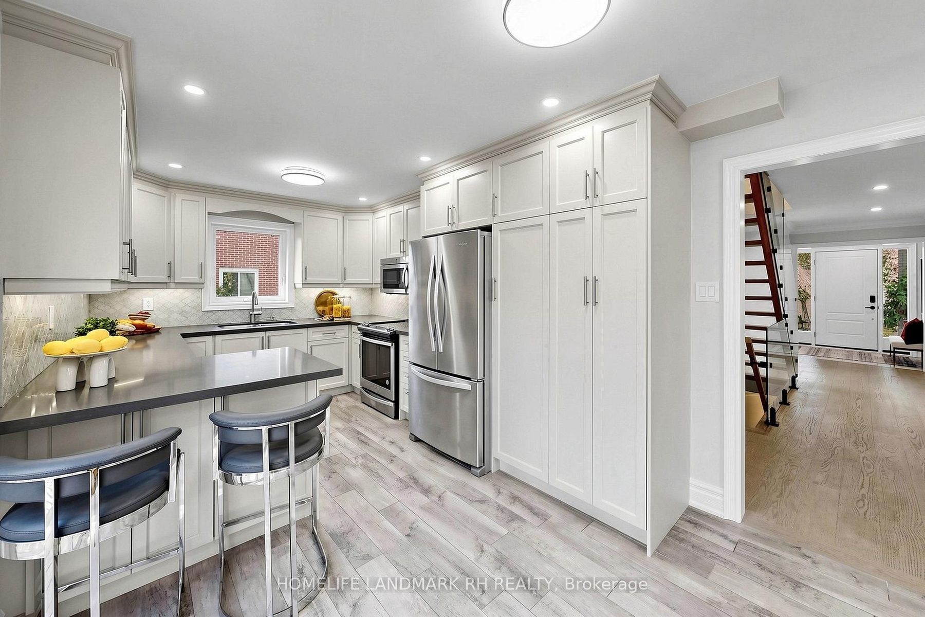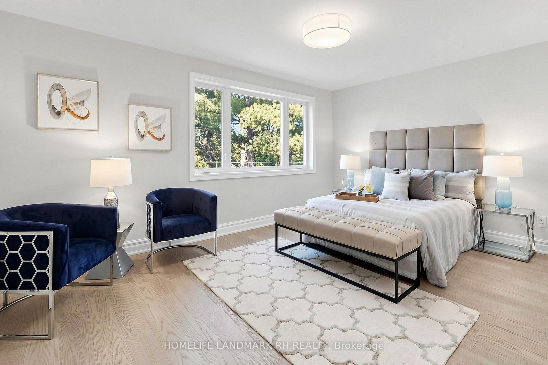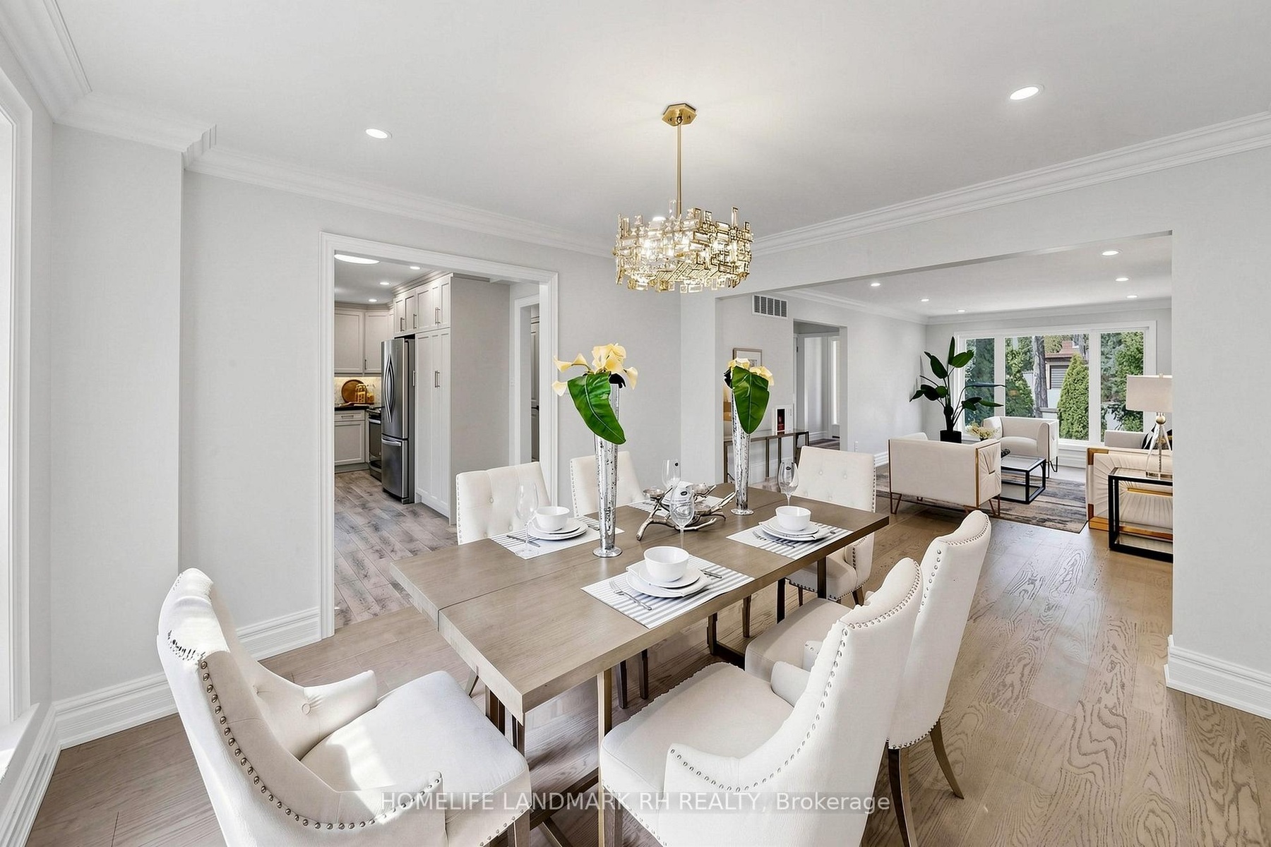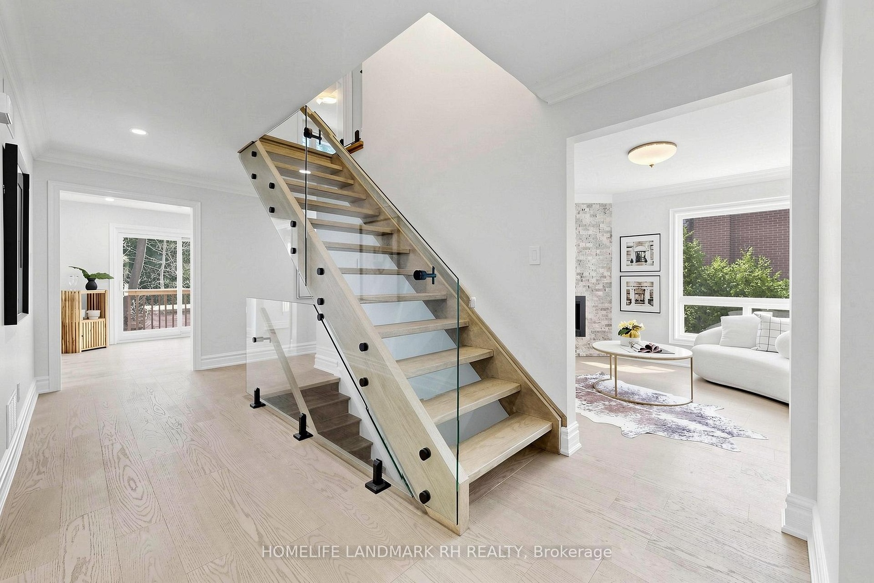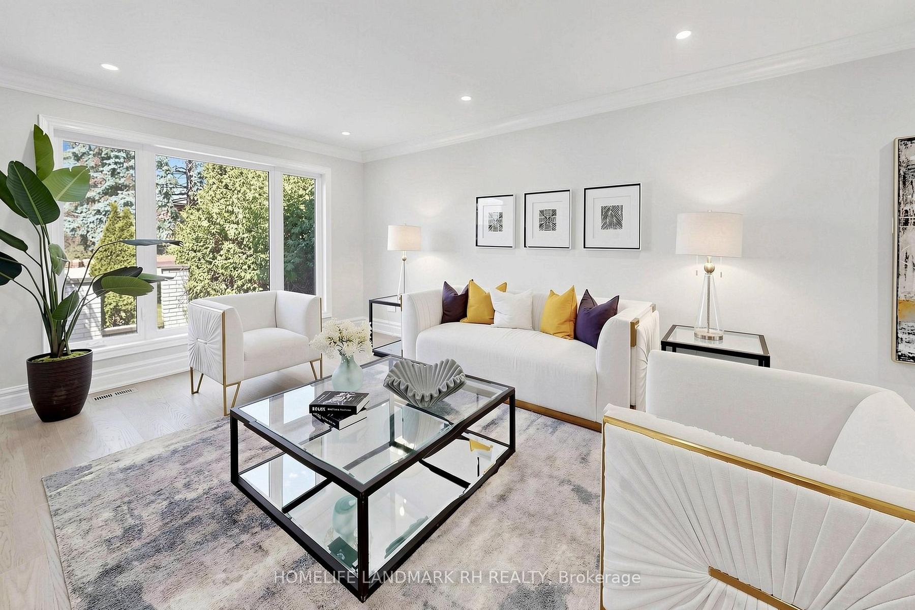 Gorgeous Detached Home w/ Double Car Garage in child safe Cul-De-Sac. Premium 60 Ft x 125 Ft Pie shaped Lot w/80 Ft rear. Over 3500 S.F. living space including Fin. Walk-Out Basement . $$$ Upgrades: Hardwood Flooring & Pot Lights throughout. Large Living / Dining with Crown Moulding. Beautiful Floating Staircase w/Glass Railing. Gourmet Kitchen w/ Granite Countertop & Breakfast Bar, Backsplash, Valance Lighting & Pantry. Large Primary Bdrm w/4 Pcs Ensuite and His & Hers Closets. Separate Entrance W/O Basement Apartment w/2 bedrooms, Rec, Sitting, Dining & Study, the 2nd Kitchen and the 2nd Laundry. Large Private South Facing backyard w/huge Deck w/Built-In Pergolas. Double Car Garage w/Built-In organizers & Epoxy Flooring. Long Driveway can park 6 cars. Close to Public Transit, Park, Schools & trails. Mins to Shopping Plaza, Golf, supermarkets and shopping. Close to Hwy 407 & 404. ** High Ranking Thornhill Secondary School.