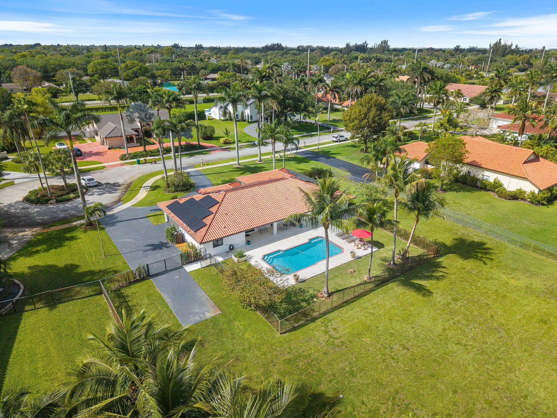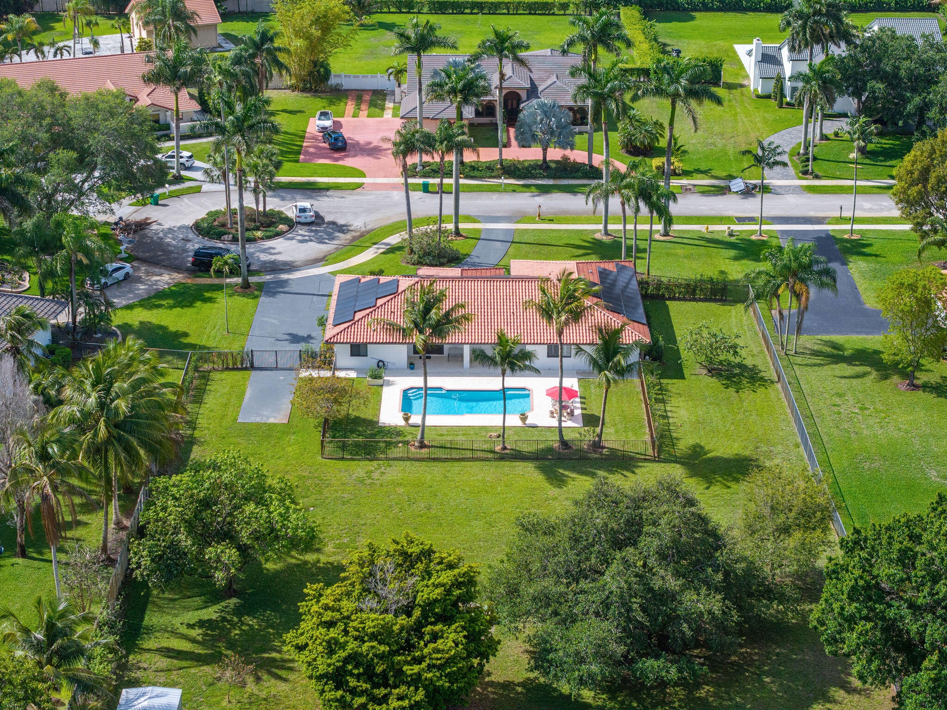 Set on a full acre in sought-after Shenandoah this fully renovated modern hacienda-style estate is a rare offering and the only 1 acre home currently available in the community Located on a wide cul de sac and set back from the road it offers exceptional privacy and curb appeal The home features 5 bedrooms 3 bathrooms and approx 3000 sqft with an open layout wood look flooring plantation shutters LED lighting a custom office and a chef's kitchen with high end appliances and wine fridge Newly installed impact windows and doors throughout Enjoy a resort style backyard with covered patio resurfaced pool 2024 fire pit and lush landscaping Over 300K in upgrades including fully paid solar covering 100 percent of electric usage offering efficiency and long term savings