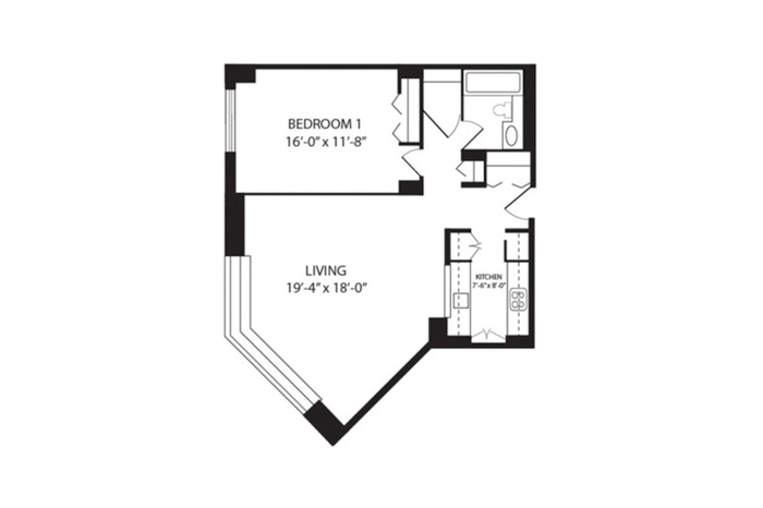 Bright and spacious 850 SF one-bedroom residence with open views and brilliant natural light throughout. This well-appointed home features an open pass-through kitchen, classic parquet floors, high ceilings, and excellent closet space. The deĢcor is styled in a tasteful eclectic contemporary design.