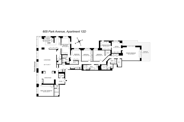 It truly is a home that seems to float above the bustling heart of Park Avenue, offering a rare blend of elegance, space, and luxury. 12B at 605 Park Avenue boasts 75" of Direct Park Avenue Frontage.