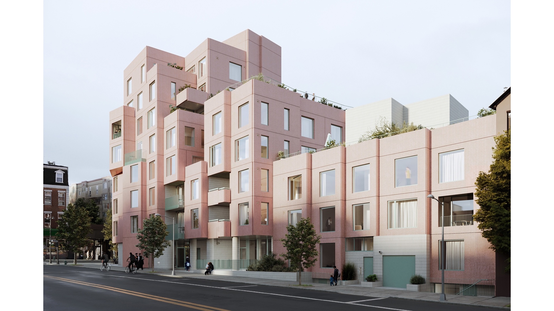 Designed by award-winning architecture firm SO-IL, 144 Vanderbilt features a limited collection of two- to four-bedroom residences in Fort Greene, Brooklyn. The building has an iconic precast silhouette in a distinctive pink color, striking terraces, and a variety of indoor and outdoor amenities. 144 Vanderbilt was conceived as an inventive reinterpretation of Brooklyn living through thoughtful, considered, and often playful architecture and design.