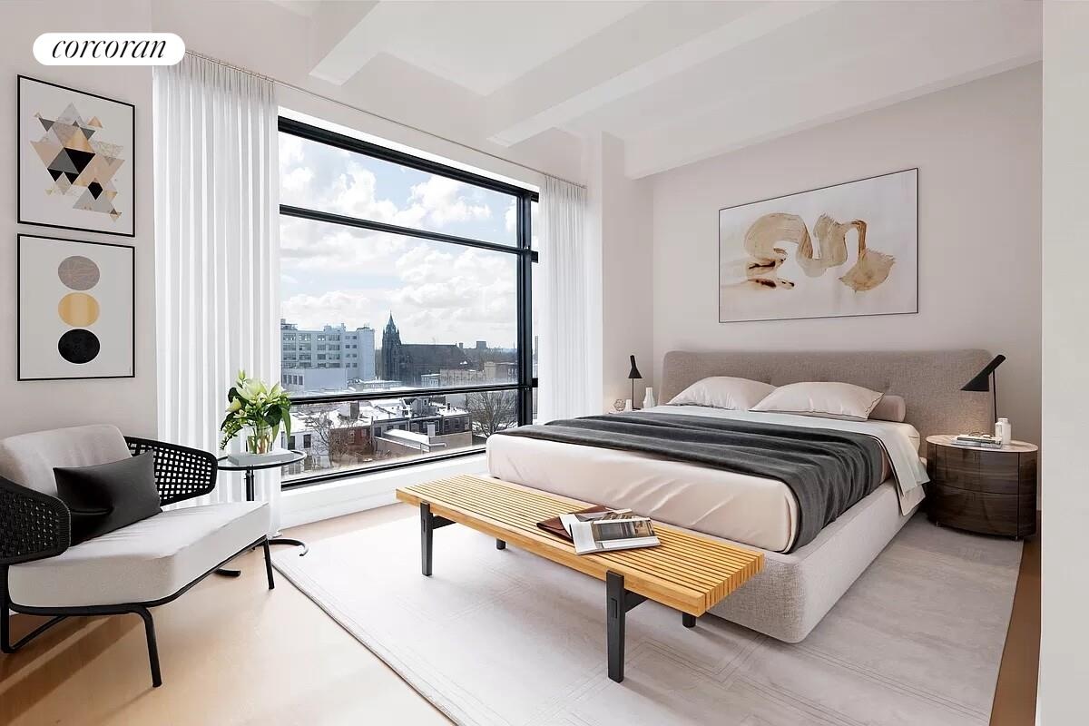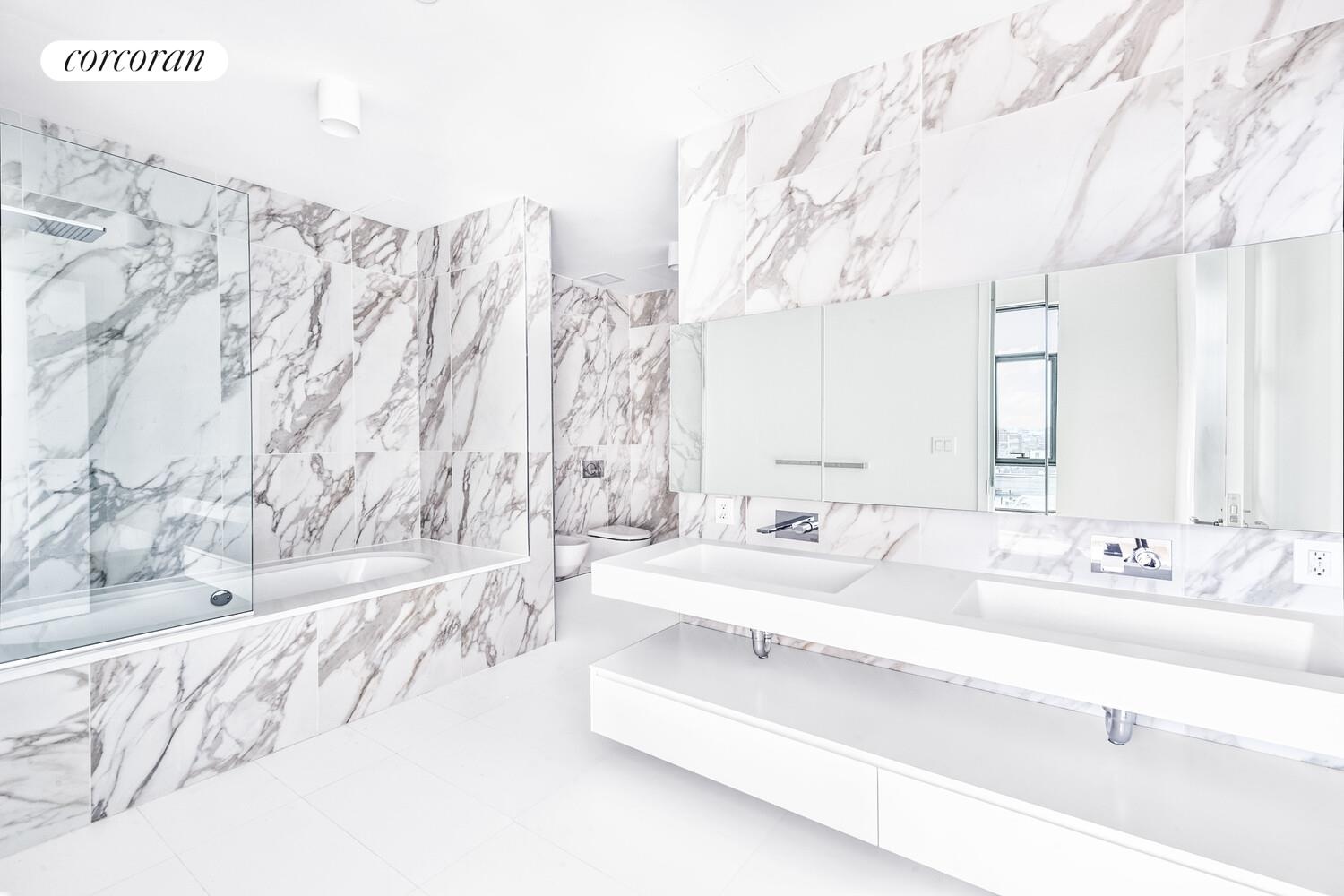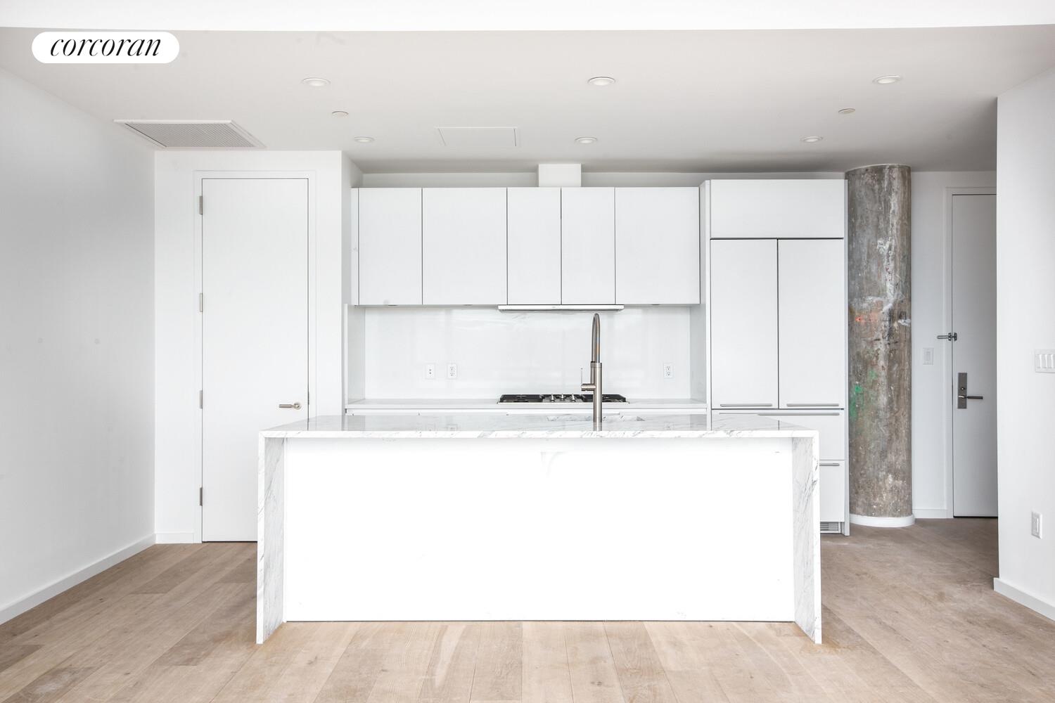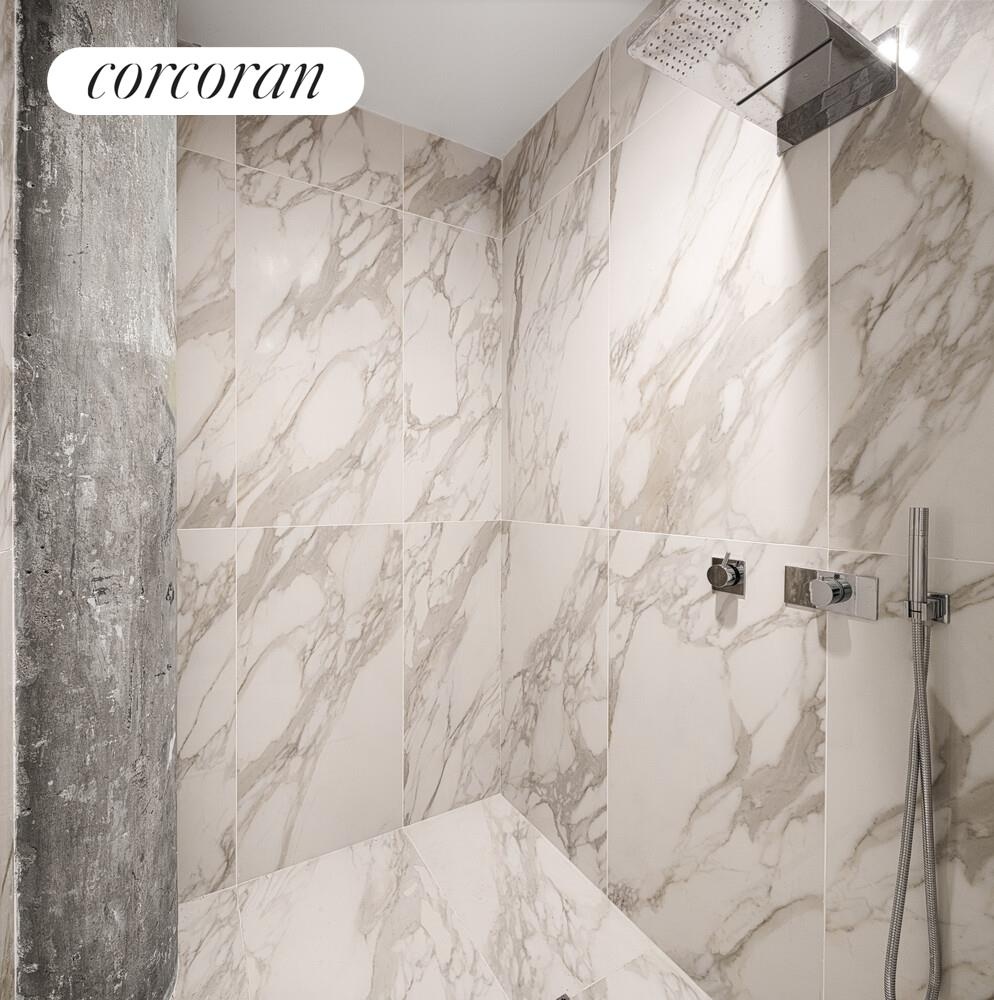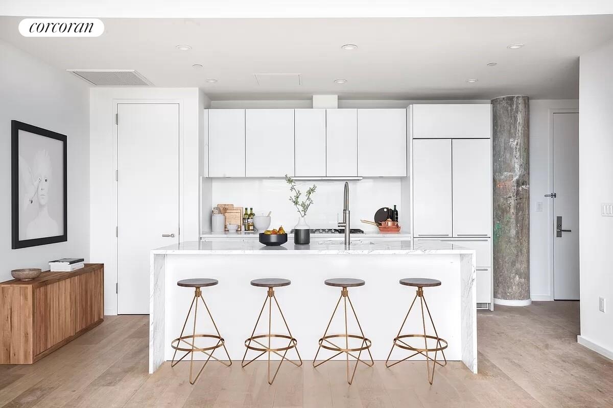 The designer kitchen by Bultharp showcases a center island featuring a waterfall marble edge, and includes premium Miele appliance package with gas cook-top. The floorplan has been carefully designed to provide large comfortable living areas. The oversized floor to ceiling windows built in cast iron, frame the rooms and allow glorious light to warm each room. Throughout the apartment you have the original concreate pillars that remind you this is a piece of historical architecture. The closet space is out of this world and each closet has been fitted with custom built storage. The two full baths are dripping in floor to ceiling marble. The primary bathroom features a separate shower and bathtub as well as a bidet