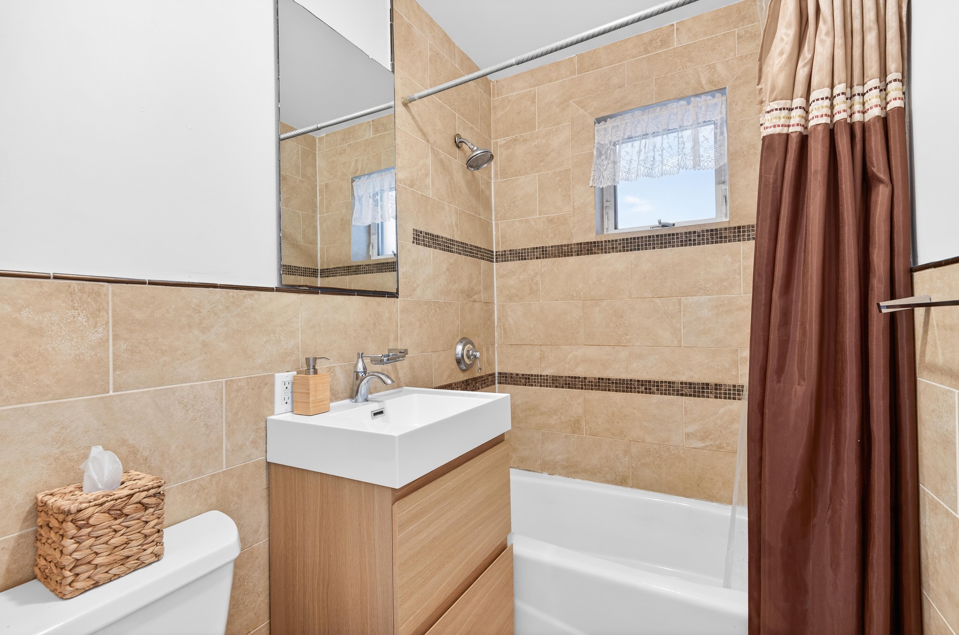 The main level is designed for sophisticated entertaining and effortless living with 10ft high ceilings. An expansive, light-filled living room features gorgeous 4” oak plank flooring and flows seamlessly onto a charming deck, your private perch for morning coffee or evening cocktails. The open chef’s kitchen is a masterpiece of form and function, outfitted with European design wooden cabinetry, sleek granite countertops, and a suite of premium appliances, including a Bosch dishwasher and a world-class Bertazzoni stove. A spacious and serene bedroom and an elegant full bathroom with Kohler fixtures and slate tile complete this level.
