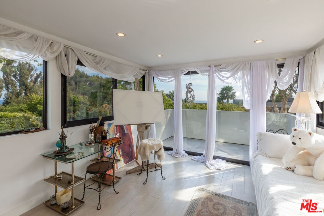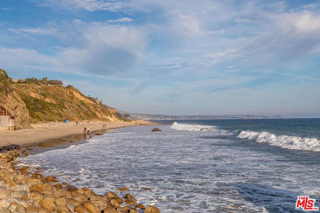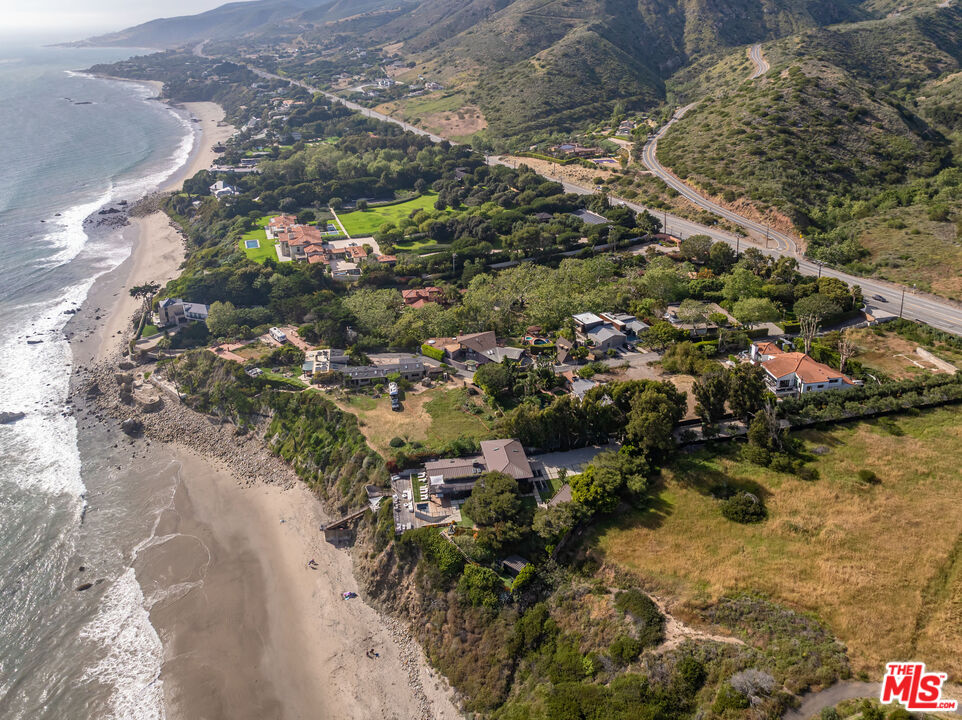 Discover a private coastal paradise along Malibu's iconic Encinal Bluffs. Set behind the gates on a quiet private street, this sophisticated residence offers a rare blend of tranquility, lifestyle amenities, and highly coveted deeded access to some of the most secluded beaches in all of Malibu. Spanning .88 acres of lush curated landscape, the estate introduces itself with a private sports court and generous outdoor living areas, establishing an atmosphere of resort-style serenity and elevated coastal living from the moment you arrive. A stunning all-glass entry welcomes you with an abundance of natural light, setting a luminous tone of openness and calm that connects the home to its natural landscape. At the heart of the residence is a beautifully appointed chef's kitchen showcasing top of the line appliances and a dramatic center island finished in a single slab of marble creating a focal point for gathering and hosting. The primary suite unfolds as a true indoor-outdoor sanctuary, featuring expansive folding glass doors leading out to private deck with a secluded hot tub with a rejuvenating space designed for wellness rituals and sunset relaxation. The accompanying spa-like primary bath offers an extravagant walk-in shower and a sculptural soaking tub. 2 additional bedroom suites are designed as peaceful retreats, offering comfort, natural light and a sense of quiet separation from the homes main living spaces. A spacious second level bonus room offers a versatile retreat ideal for a creative space, office, or yoga studio equipped with a private deck and stunning views. Expansive landscaped grounds feature a wide lawn, outdoor shower, mature trees lining a year-round stream, and a multi-level cascading waterfall that creates a serene resort-like setting. Outdoor barbecue off the kitchen creates a perfect place for outdoor dining. The generous driveway provides parking for 8 or more cars, while thoughtful modern upgrades include a solar energy system and electric vehicle charging stations. Offering the perfect balance of beachside living and convenience, the property is ideal for surfers and close to Malibu's finest restaurants and shops. A distinctive offering where space, serenity and the feeling of paradise truly come together.