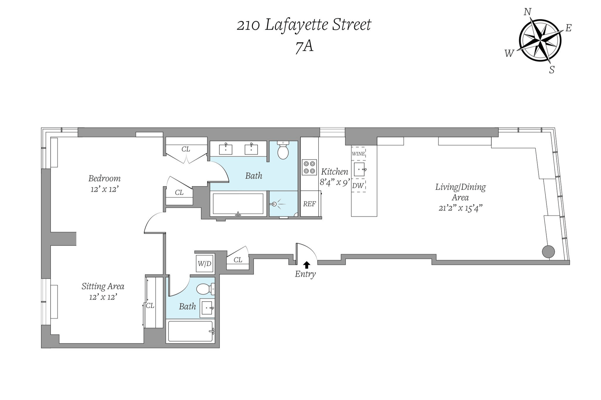 Originally configured as a two-bedroom, Residence 7A at One Kenmare Square has been thoughtfully reimagined as an expansive one-bedroom with an additional sitting area. The layout remains flexible and can easily be converted back to a true two-bedroom, with space for a second full bathroom just before the primary suite.