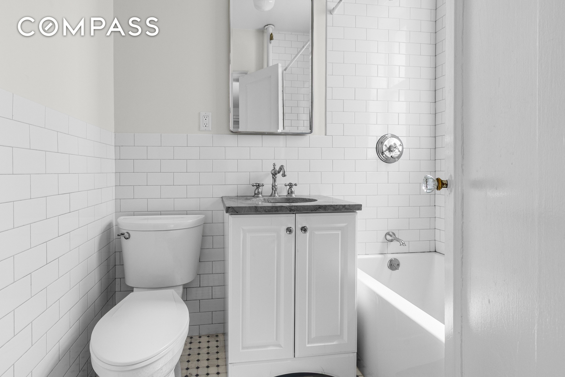 Quietly nestled in the bright, South-facing front of its pre-war, elevator building -- in the coveted and peaceful set-back of the building -- is this winsome wonder of a home. Yes, the monthlies are low, and yes the kitchen and bath are upgraded, and yes there are joyful views of the West Village, and downtown -- you even see the Freedom Tower. The living/dining opens to the kitchen, and the space works nicely for entertaining. This corner home's layout gives it a design edge, and a graceful separation between the living space and the sizable, West-facing bedroom. Offering a foyer, good storage, hardwood floors, high ceilings, and a winsome vibe, this sweetheart is a residential stand-out.