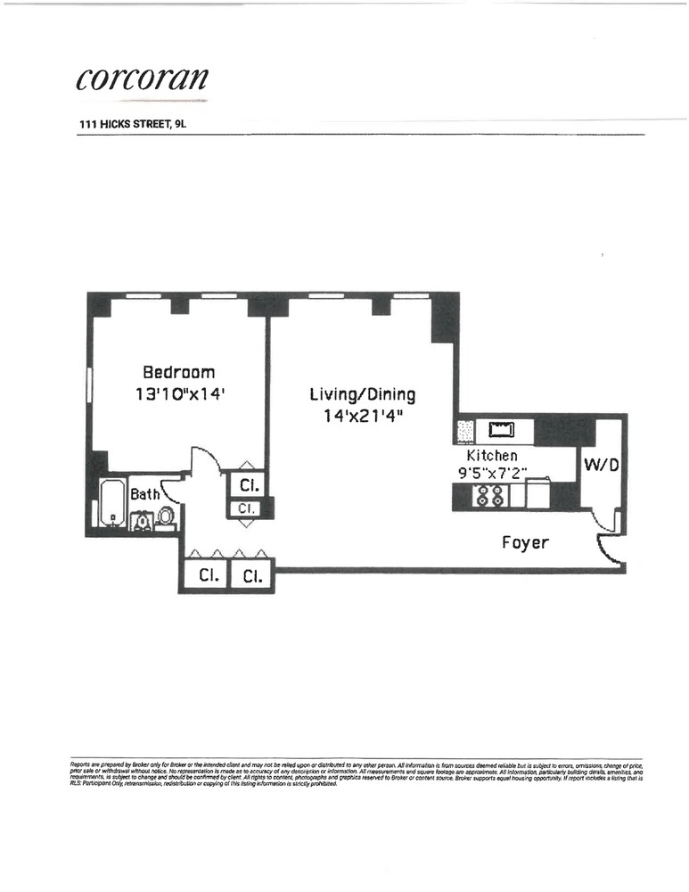 Residence 9L at 111 Hicks Street is a well proportioned one bedroom, one bath home of approximately 800 square feet in the St.