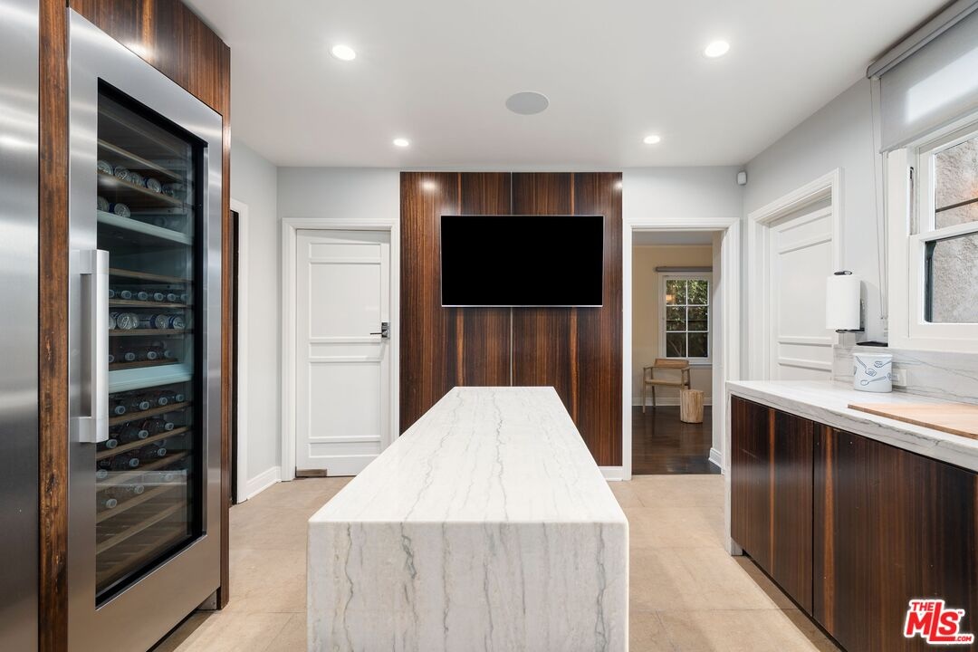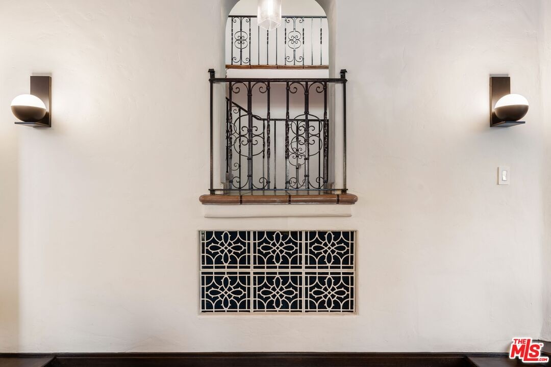 A rare opportunity to own a piece of Los Angeles history, this Spanish Revival residence in Hancock Park was originally designed by noted architect Donald Uhl. Blending timeless 1920s character with modern upgrades, the home has been reimagined to meet today's lifestyle while honoring its architectural roots. Step through the arched entryway and be greeted by original tile floors and a sweeping wrought-iron staircase, setting the tone for the craftsmanship found throughout. Natural light fills the formal dining room, which opens to a private courtyard featuring an outdoor fireplace and fountain, perfect for intimate gatherings. The gourmet kitchen is equipped with top-tier Miele appliances, including a wine fridge, steam combi oven, and built-in coffee system, making it both functional and stylish. A versatile den or office sits just off the entry, offering flexibility for work or relaxation. Upstairs, three spacious ensuite bedrooms provide comfort and privacy. The primary suite includes access to a private balcony, extending the living space outdoors. The grounds are beautifully landscaped with mature plantings, including camellias, coral trees, palms, and roses, all enhanced by thoughtfully designed exterior lighting. With a full home sound system, Wi-Fi integration, security, and CCTV, this residence seamlessly merges historic charm with the conveniences of contemporary living.