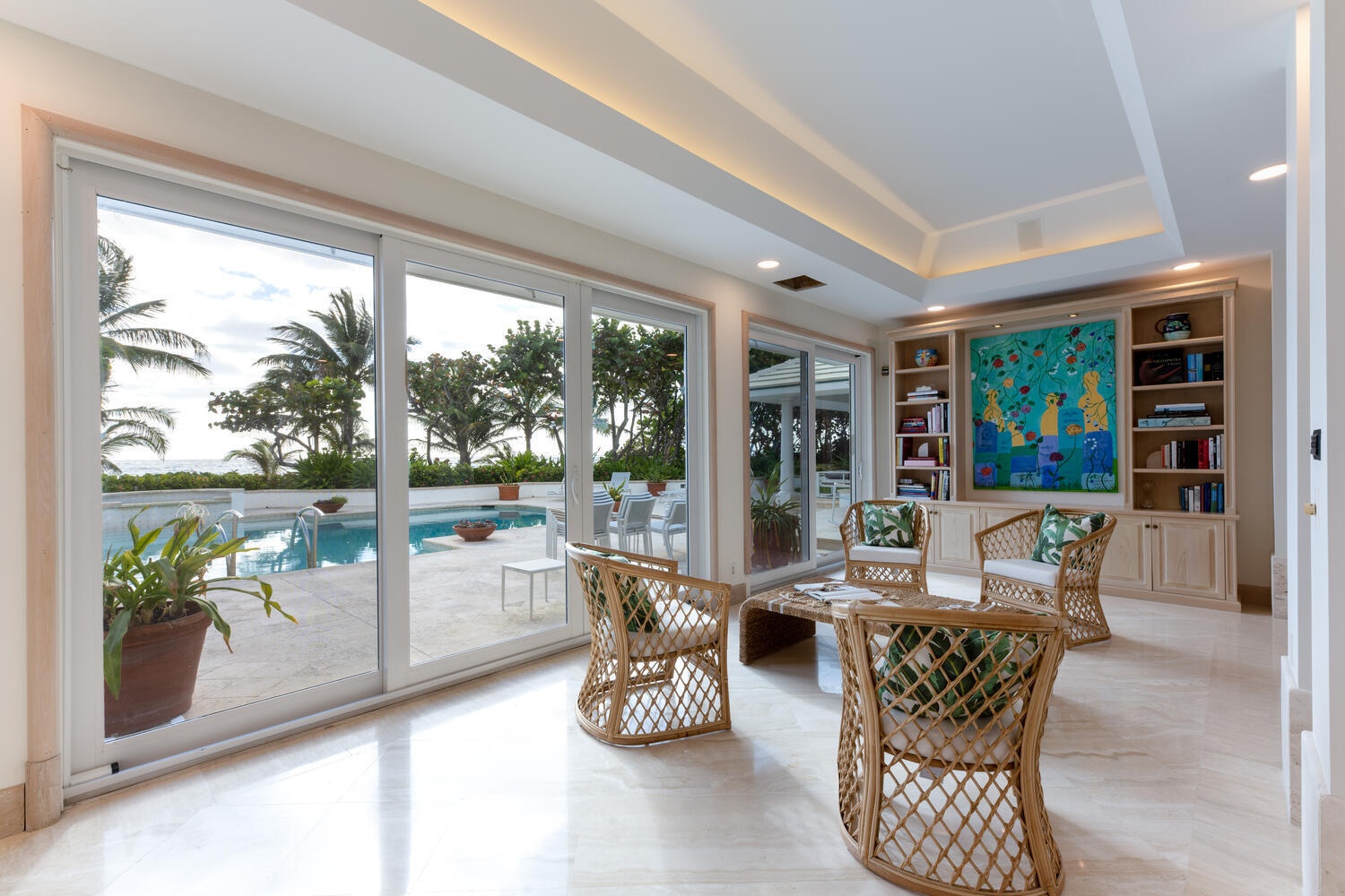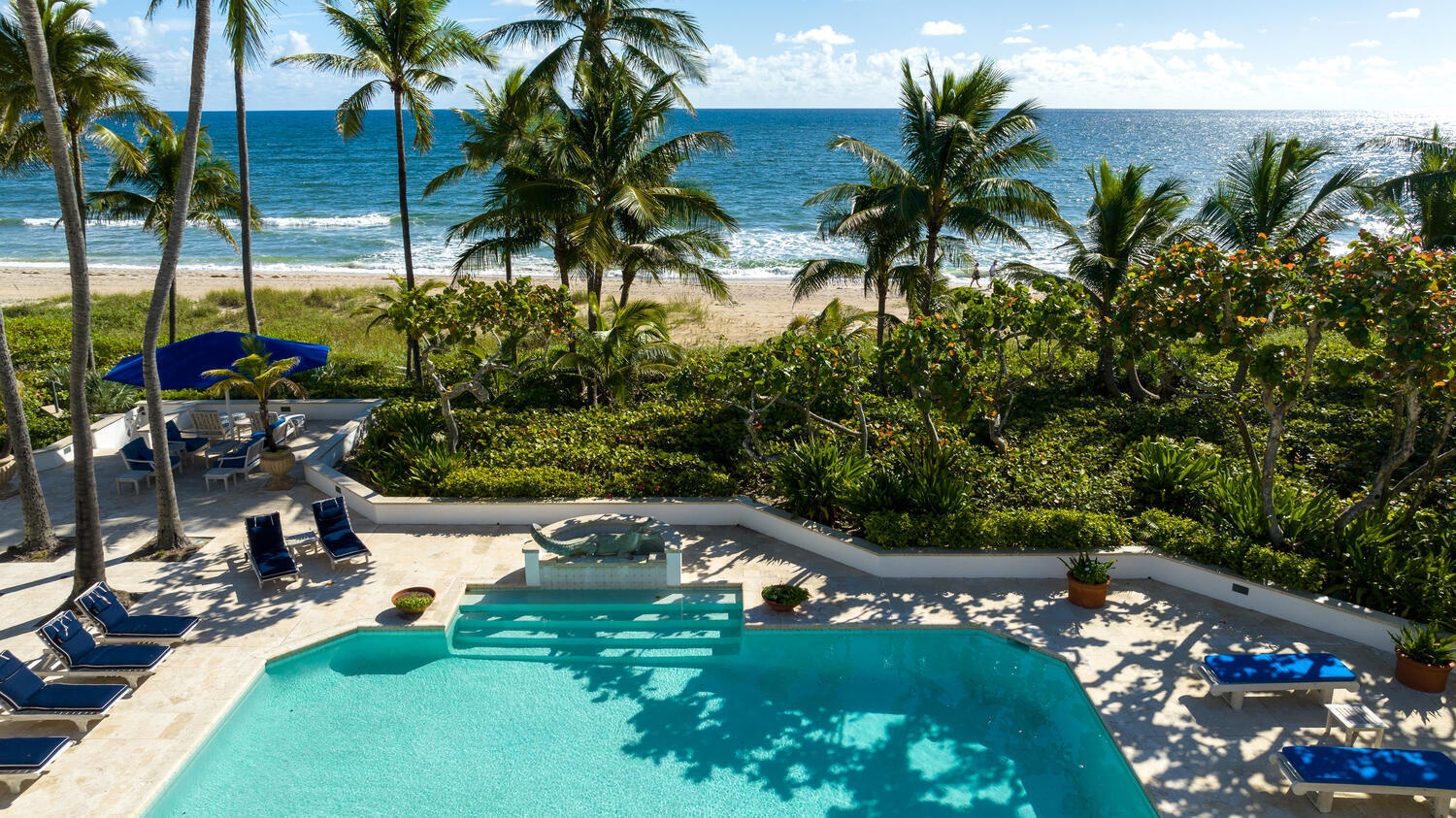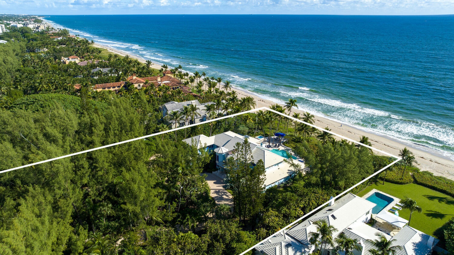 The ''Humming Bird House''. A stunning two-acre direct oceanfront estate with 200 feet of ocean frontage. Over 11,000 total sq.ft. 6 bedrooms, 7 full bathrooms and one-half bath. Sweeping views of the Ocean. Grand living area. Eat in kitchen and pantry, high-end appliances, custom cabinets, hurricane impact doors and windows, full house generator, sound system, and ample storage space throughout. Outdoor Pool and Spa with plenty of patio area to entertain and enjoy the expansive surroundings. Grand living/dining space and water views. Pet friendly. Easy distance to all that the area has to offer: good schools, golf, Atlantic Avenue, shops, restaurants, nightlife, Morikami Museum & Japanese Gardens, CityPlace, Kravis Center and Norton Museum of Art.