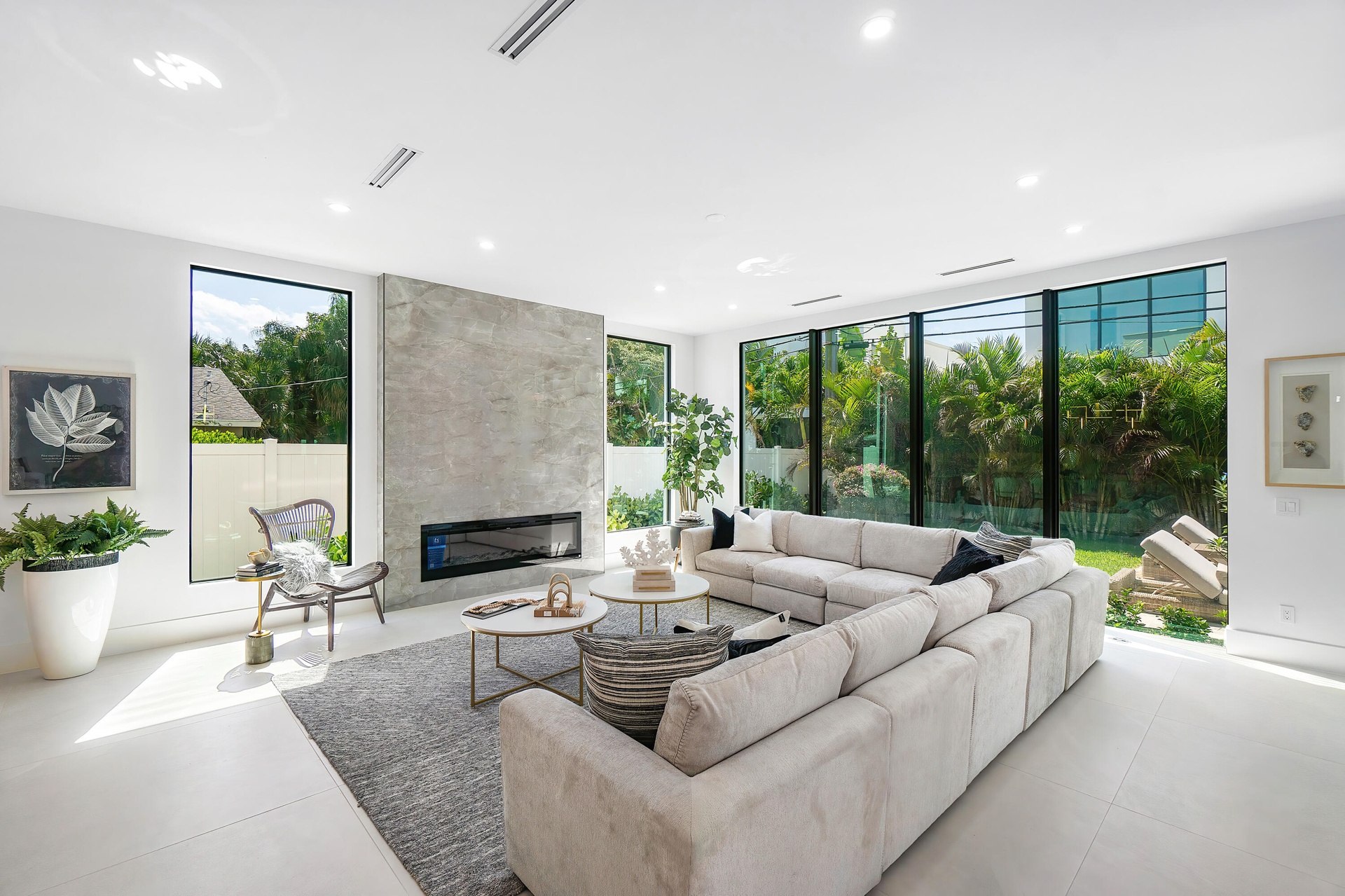 Contemporary sophistication and a prime Golden Triangle location. Just blocks to Mizner Park and downtown Boca Raton, this just completed five-bedroom estate features a grand open floor plan, with expansive two-island kitchen (two sinks, two dishwashers), a two-story living room, expandable dining room, and large family room. A first-floor bedroom is an ideal office or in-law suite, while upstairs you'll find three junior suites, plus a light filled primary with extended closets and spa inspired bath. Outside the south facing marble patio features a built-in summer kitchen, heated saltwater pool and spa, plus plenty of room for pups or playsets. Walkable to Mizner Park a Moke ride away from The Boca Raton and beaches, this home is not to be missed!