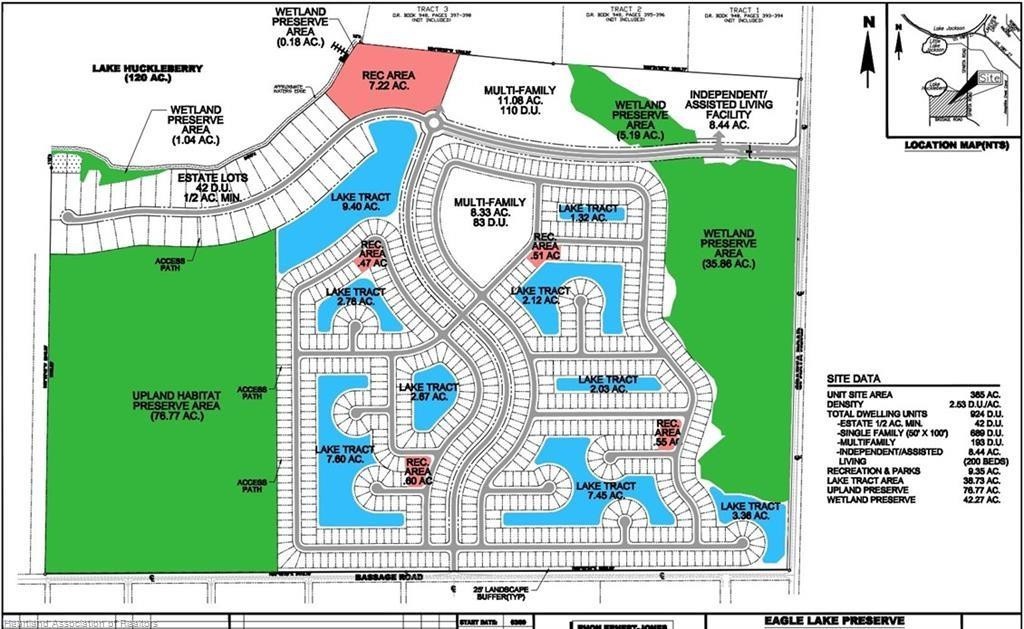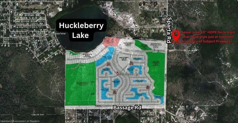 *** OWNER'S FINANCING AVAILABLE***Sebring,FL. 365+- Lake Huckleberry Premium Gated Lakefront Development Site @ Only $7,684 per Unit(924+-Units)after ALF site Allocation(200+-Beds)! Planned Unit Development Order in Place w/ Water & Sewer for this beautiful 364+-Acres with 2,400+-Ft along the South shoreline of Lake Huckleberry with multiple interior lakes to be formed further accenting the already premium Profit Potential from existing lake frontage. PUD consists of mostly single family lots (689 lots);42+- Estate Lots;193+-Mult-Family Lots; Plus 8+-acre ALF Site (200+-Beds). All is located only a few miles from the Heart of Sebring's Prime Retail Shopping areas & the Quaint Downtown Shops & restaurants recently filmed on HGTV small town make-over.