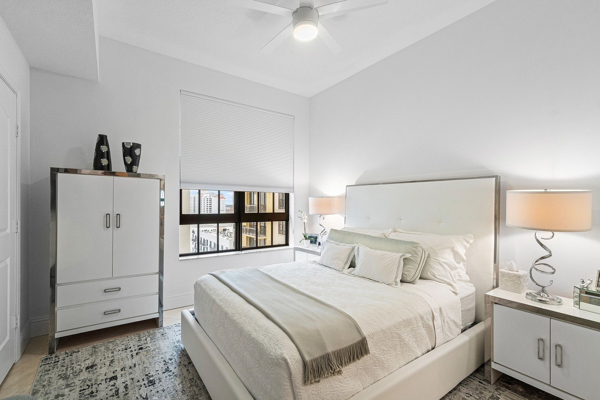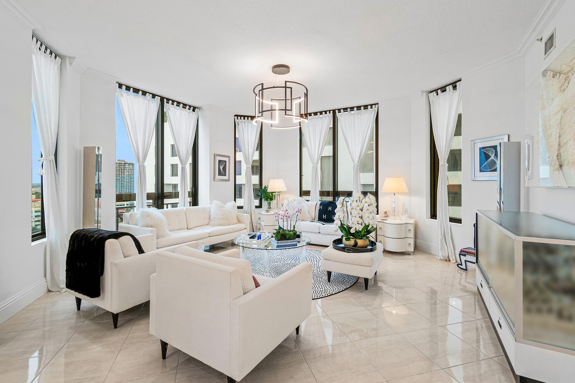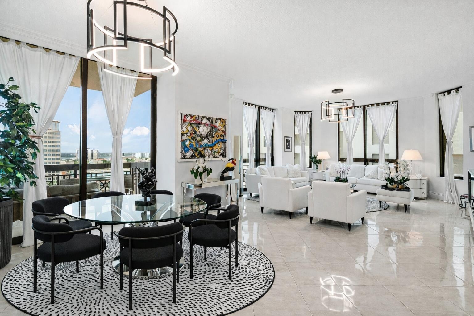 This 3 Bedroom & 2.5 Bathroom luxury corner condo boasts breathtaking panoramic skyline & sunset views over Clear Lake! Dramatic floor-to-ceiling windows, high ceilings, dedicated foyer, full-size upgraded laundry room, and parking on low ''M'' level are just a few of the features that separates this spacious 1858sqft luxury condo. In addition, hardwood, marble & tile flooring throughout, incredible closet space, crown-molding, tray ceilings, light granite counters in gourmet kitchen. Fully furnished turnkey with stunning finishes to truly enjoy your summer season in luxury. Located just moments from dining, shopping, nightlife, and cultural attractions, Two City Plaza offers full-service, resort-style amenities in one of downtown's most desirable addresses. Amenities in this full-service building are endless; 24-hr security, concierge, roof top pool, hot tub, sauna, steam room, fully renovated state of the art fitness center/gym, outdoor kitchen w/ BBQ area and all NEW Restoration Hardware furniture, outdoor & indoor movie theaters, club room, table tennis, lanai courtyard w/ water feature, renovated roof top dog park area, complimentary valet parking & exceptional staff. Centrally located in the heart of Downtown West Palm Beach, across from One Flagler offices, 7 minutes to PBIA airport, award winning restaurants and shopping, and walking to Worth Ave, Palm Beach.