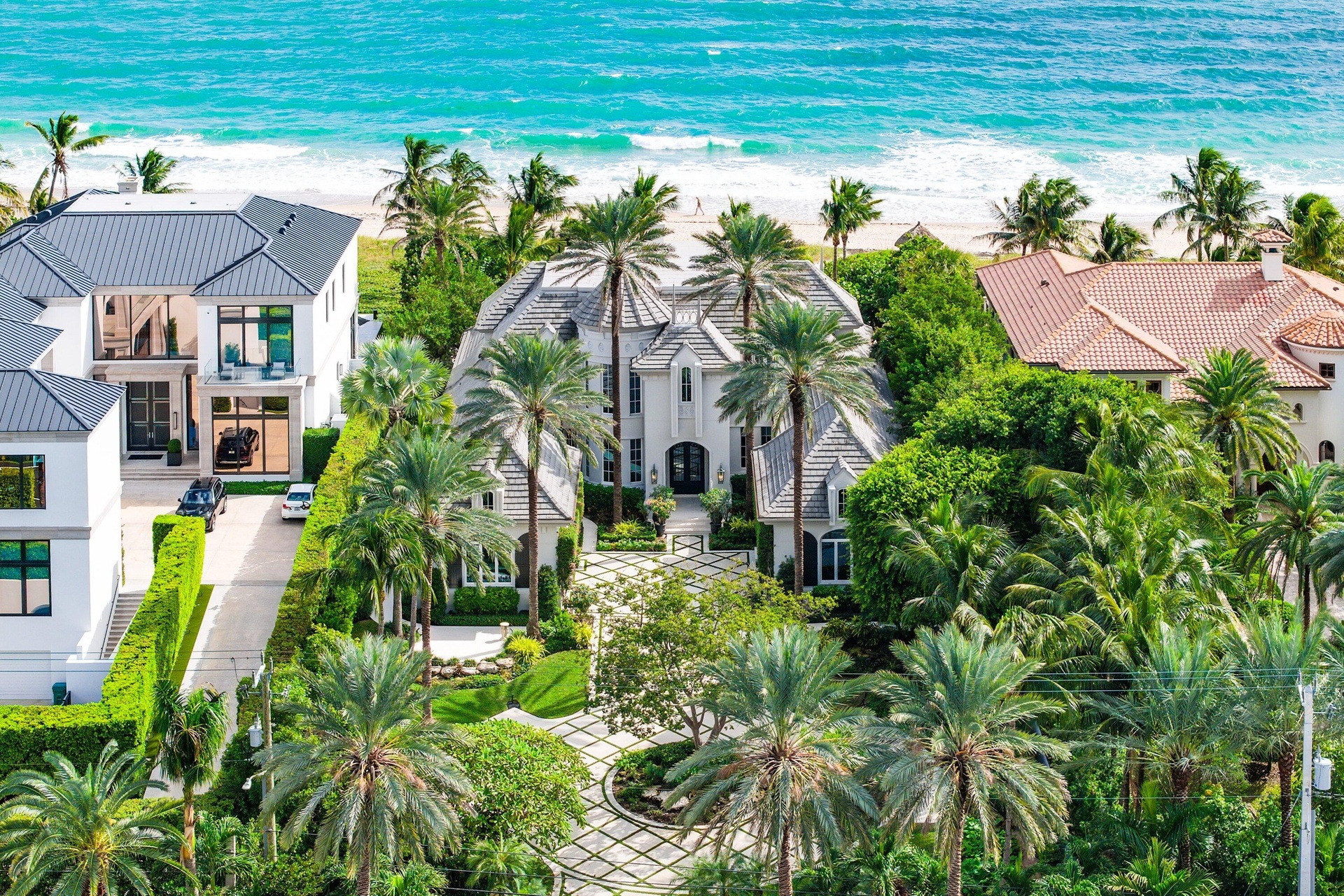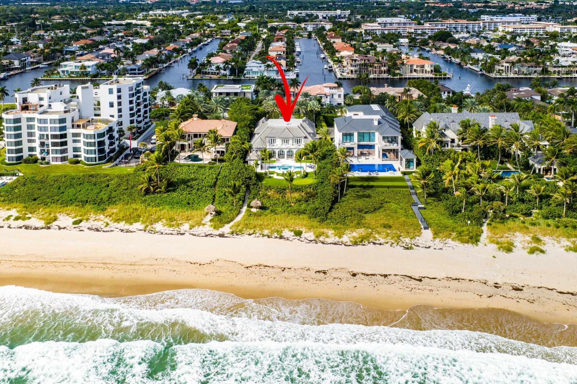 Spectacular appr 1 Acre Deep Estate Lot, Like New and Furnished Direct Oceanfront Gated Estate located in the Exclusive Town of Highland Beach.