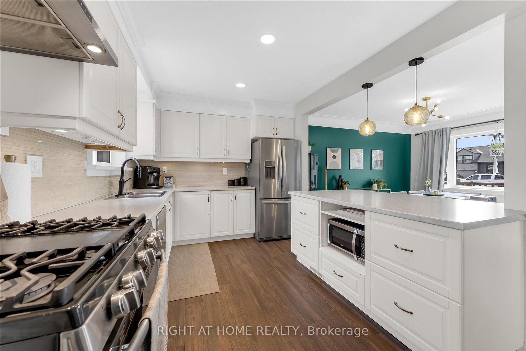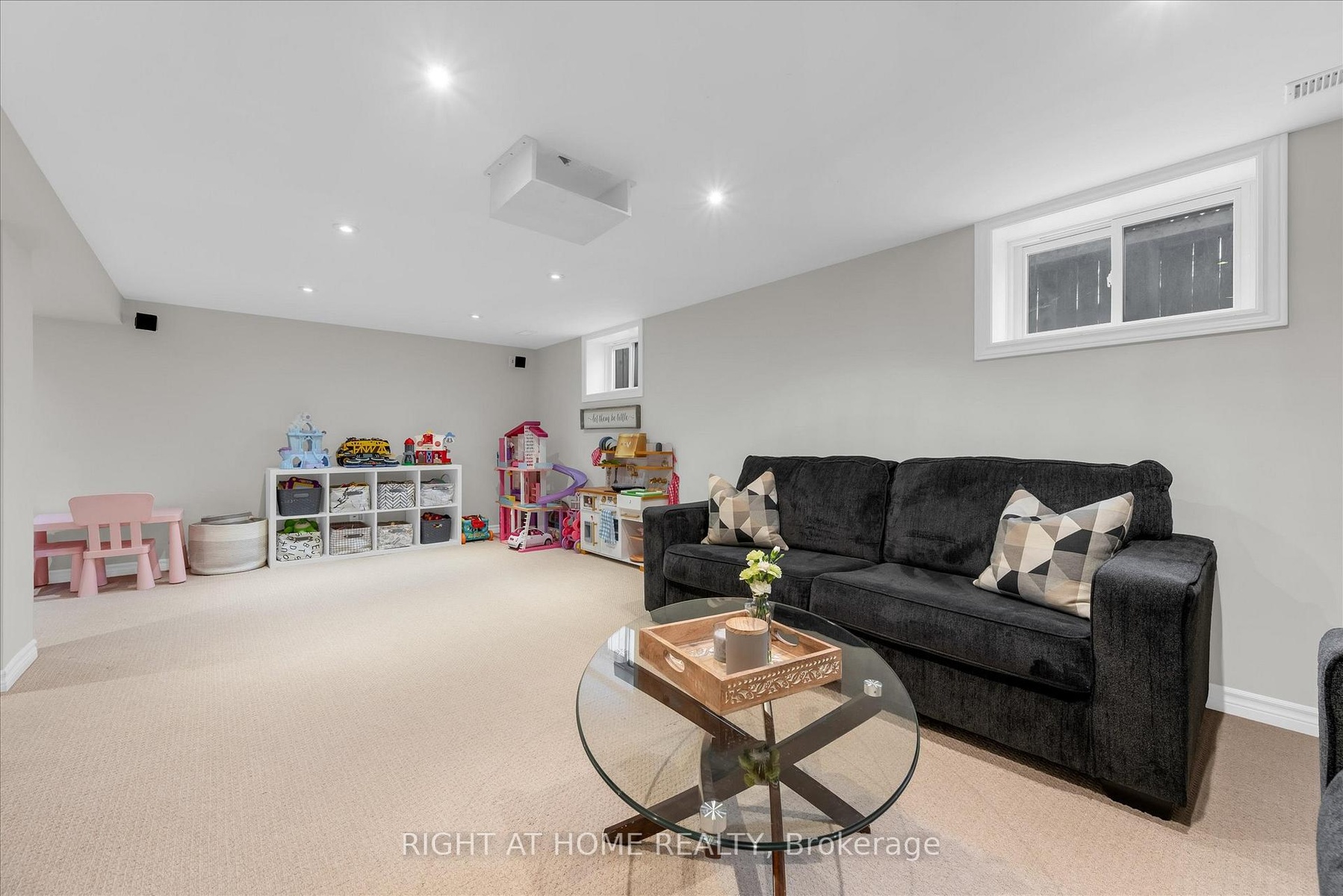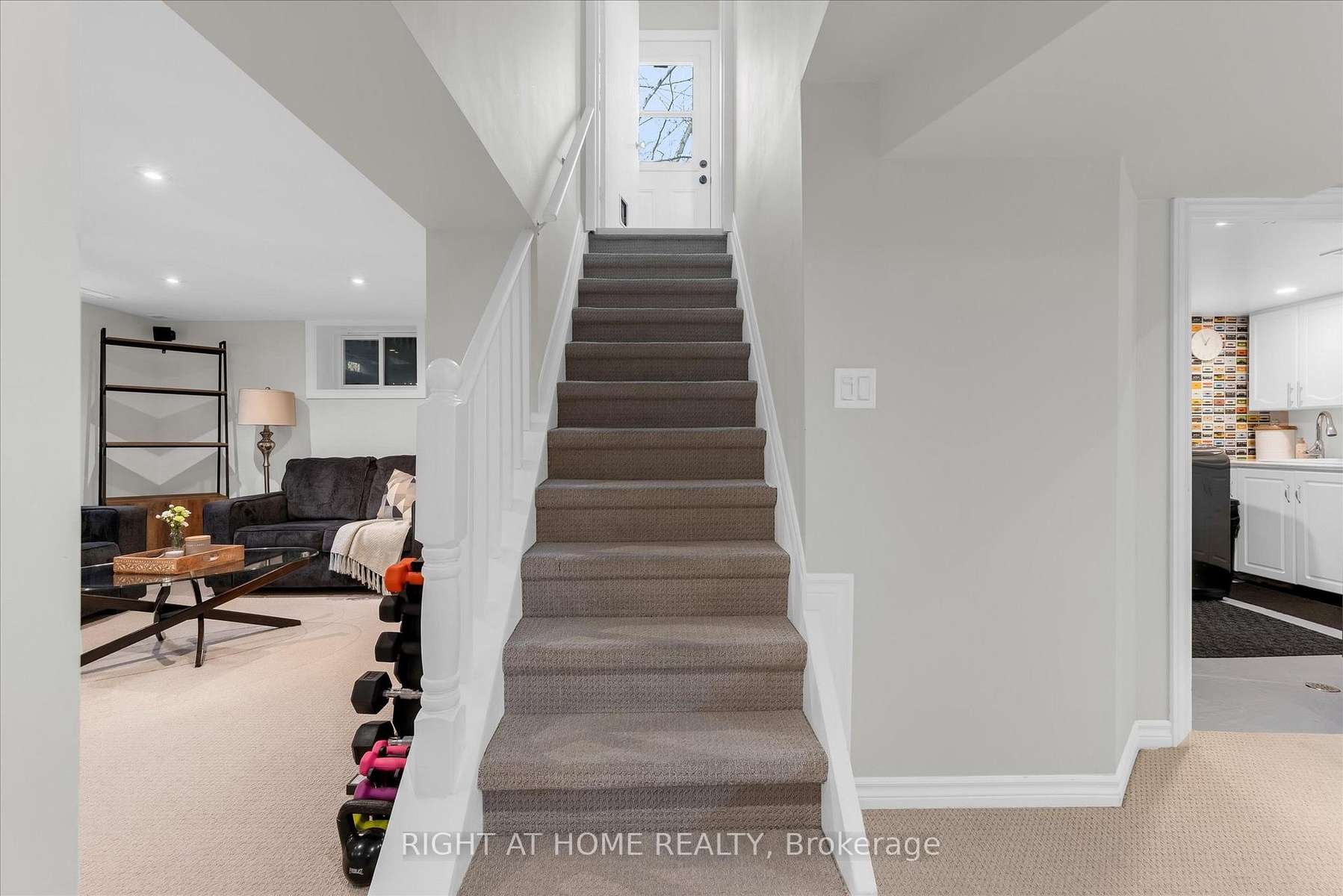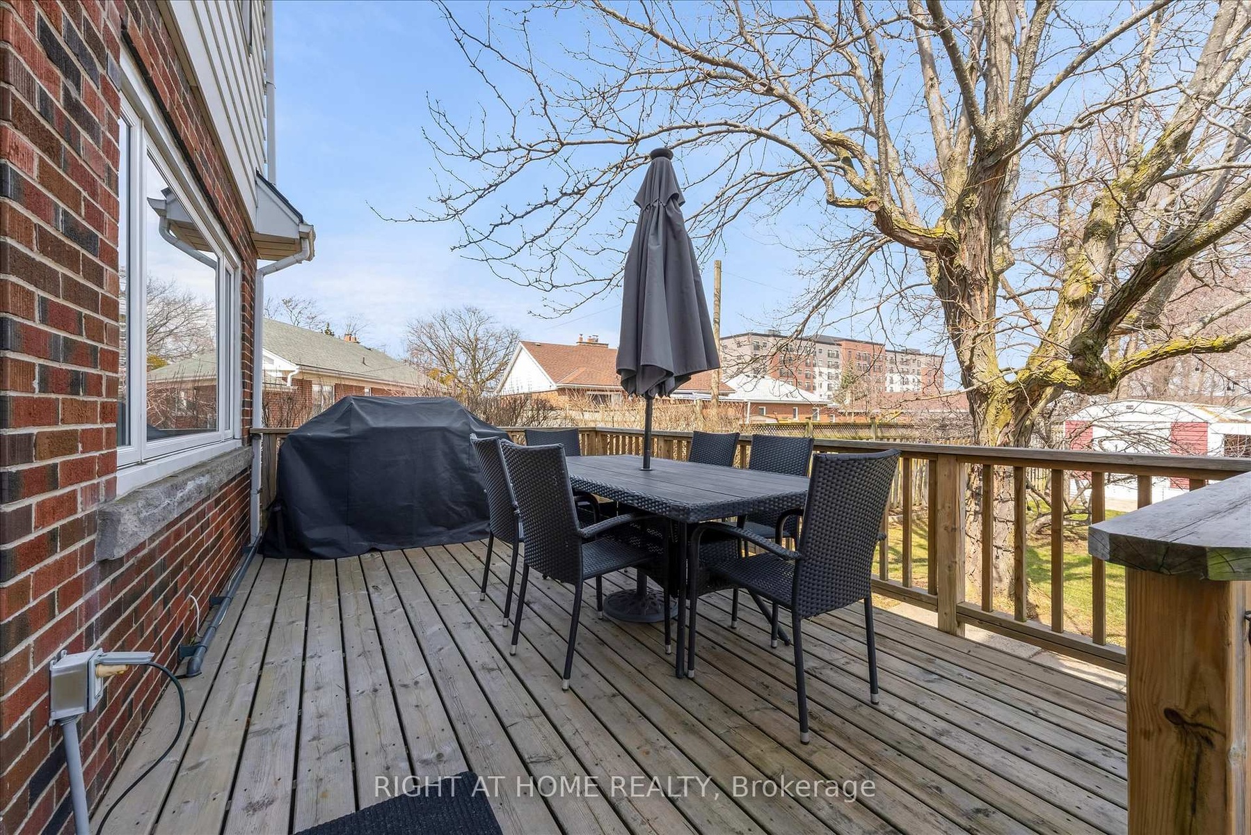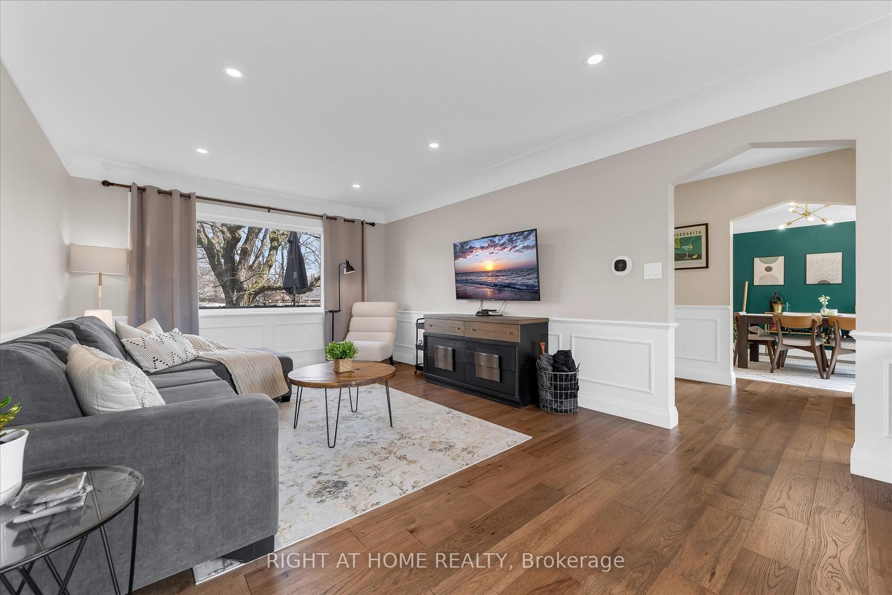 Bright and tastefully finished two storey home on a quiet cul-de-sac in desirable Stoney Creek neighbourhood. Steps to Green Acres Park and community pool. Walking distance to downtown Stoney Creek and Eastgate Mall. Property offers a private, oversized backyard with shed/workshop and plenty of potential to build your outdoor oasis. Mature trees and shrubbery throughout. Exterior features traditional red brick finish with black and white accents and large driveway. A blend of mid century character and modern updates compliment a well thought out floor plan with large living spaces and bedrooms. Finished basement with spacious laundry room and rec room featuring projector and surround setup. Recent updates include roof (2025), decking (2019), windows and doors (2013-17) and kitchen (2018).