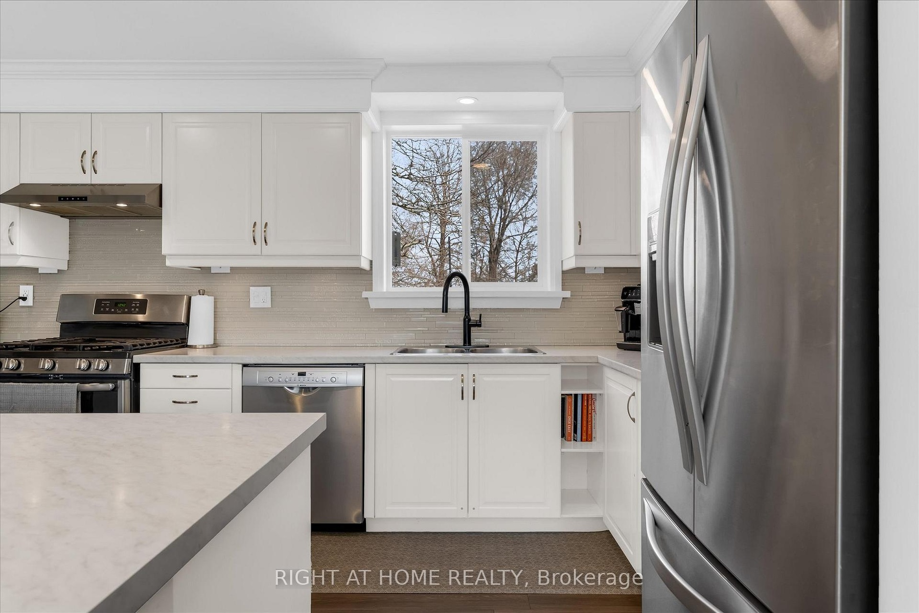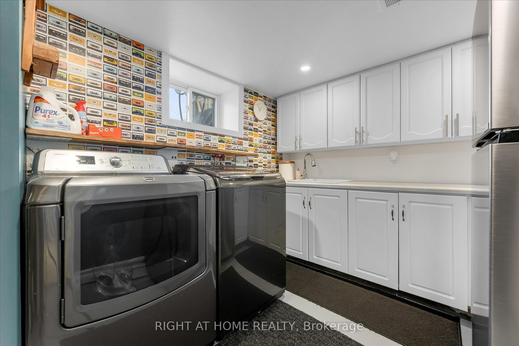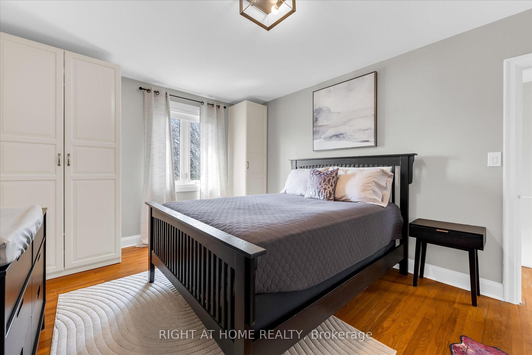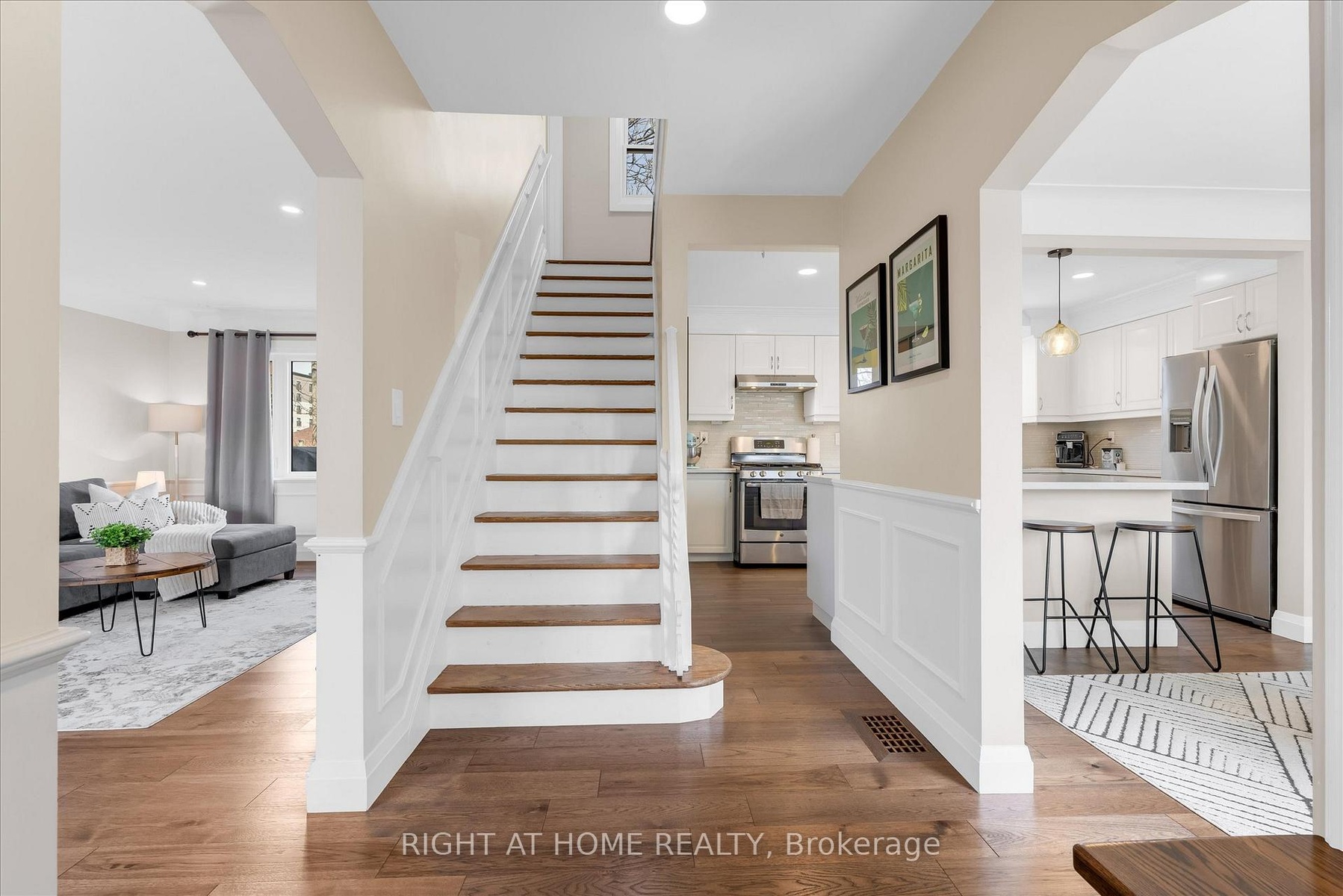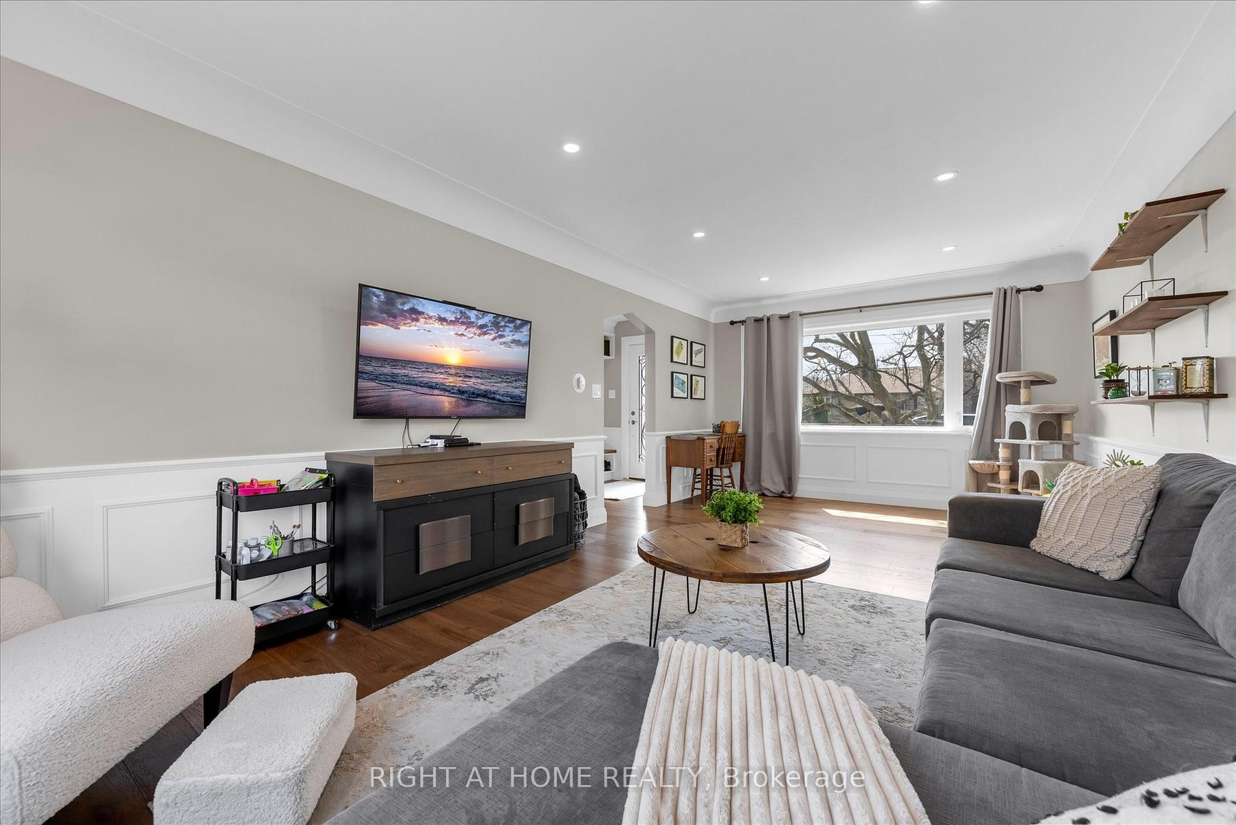 Bright and tastefully finished two storey home on a quiet cul-de-sac in desirable Stoney Creek neighbourhood. Steps to Green Acres Park and community pool. Walking distance to downtown Stoney Creek and Eastgate Mall. Property offers a private, oversized backyard with shed/workshop and plenty of potential to build your outdoor oasis. Mature trees and shrubbery throughout. Exterior features traditional red brick finish with black and white accents and large driveway. A blend of mid century character and modern updates compliment a well thought out floor plan with large living spaces and bedrooms. Finished basement with spacious laundry room and rec room featuring projector and surround setup. Recent updates include roof (2025), decking (2019), windows and doors (2013-17) and kitchen (2018).