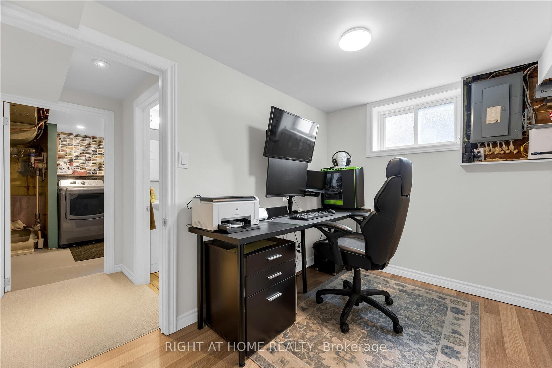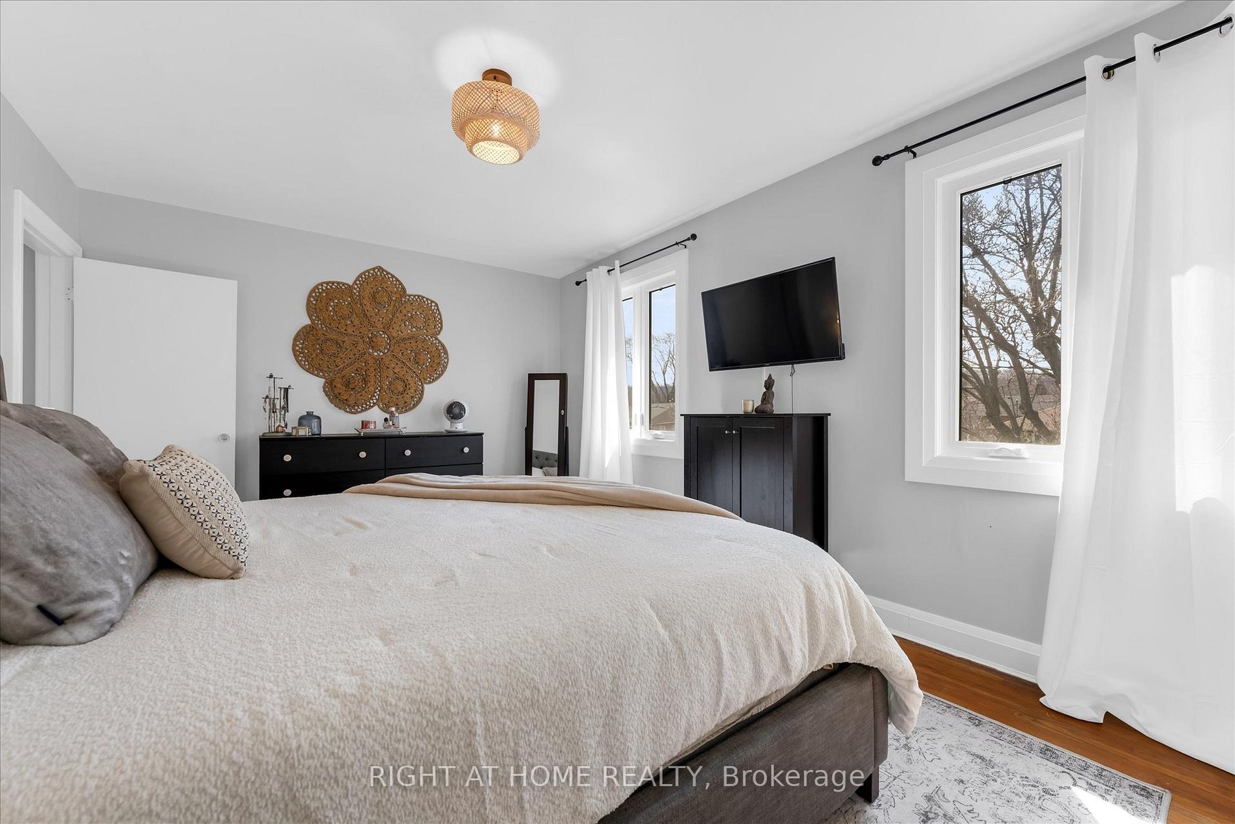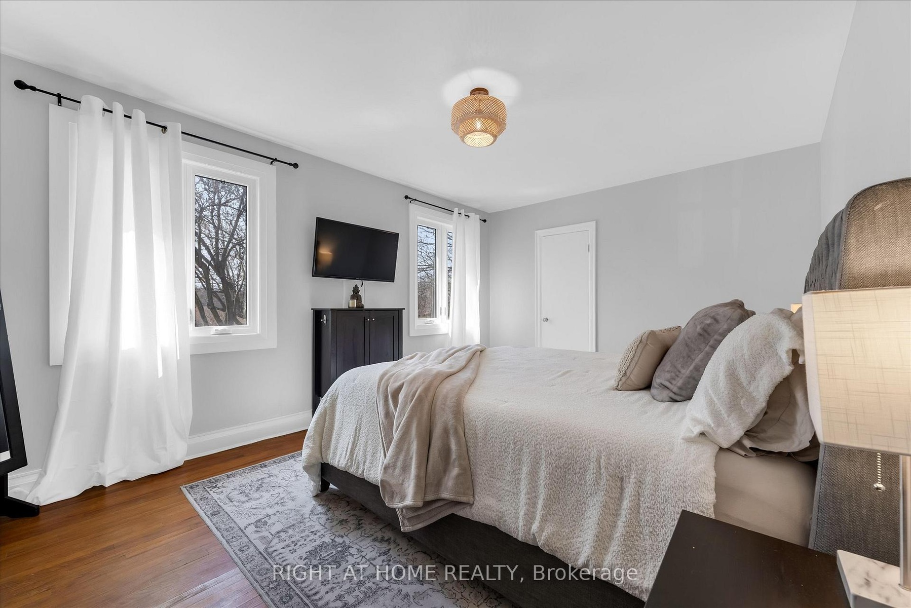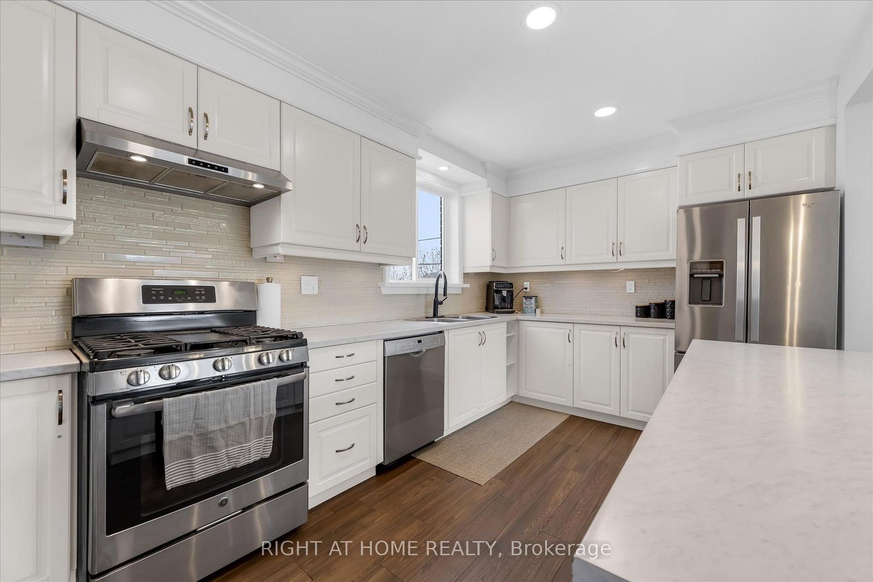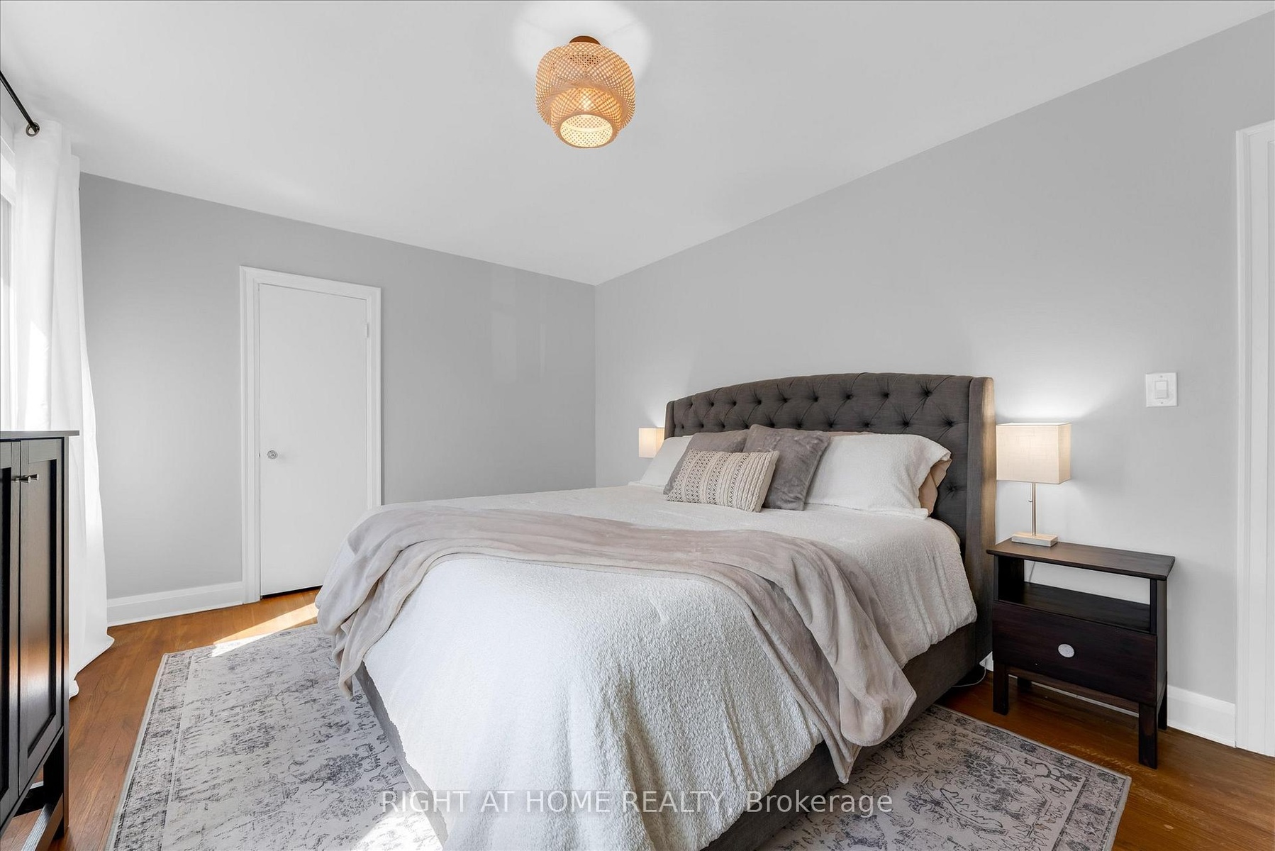 Bright and tastefully finished two storey home on a quiet cul-de-sac in desirable Stoney Creek neighbourhood. Steps to Green Acres Park and community pool. Walking distance to downtown Stoney Creek and Eastgate Mall. Property offers a private, oversized backyard with shed/workshop and plenty of potential to build your outdoor oasis. Mature trees and shrubbery throughout. Exterior features traditional red brick finish with black and white accents and large driveway. A blend of mid century character and modern updates compliment a well thought out floor plan with large living spaces and bedrooms. Finished basement with spacious laundry room and rec room featuring projector and surround setup. Recent updates include roof (2025), decking (2019), windows and doors (2013-17) and kitchen (2018).
