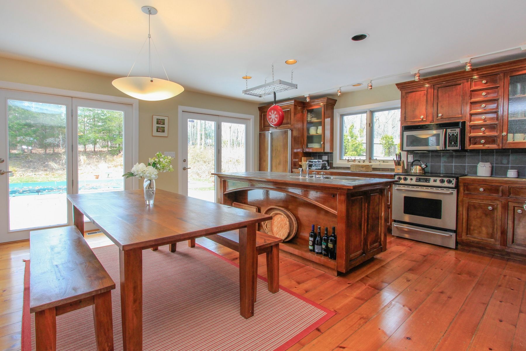 Brand new to the market this fabulous 2 story Country home has all the amenities and comfort you need in a home , located on a private 3/4 of an acre with a heated pool and huge deck. This very spacious living room and Dinning room are surrounded by french doors . The first floor master suite is complete with a sitting area and a huge master bathroom. The junior master has a fireplace and doors that open into the deck. The first floor master suite is complete with large master bathroom and a sitting area with access to the pool. Amazing 3 bedrooms with lots of sunlight!