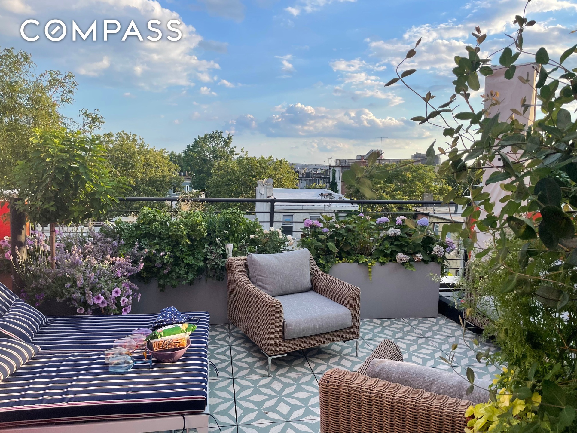 The second level is the primary suite with a large windowed bathroom, private laundry, and a huge closet. Then another flight up to your own private landscaped roof deck with its own irrigation system, making maintenance as easy as can be!