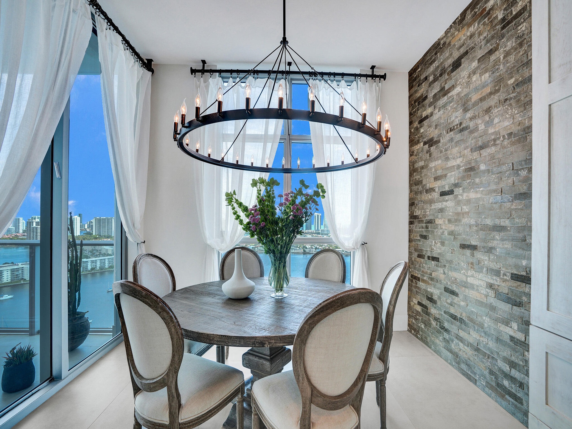One-of-a-kind penthouse residence offering 4 bedrooms, 4.5 bathrooms, plus office/den, professionally designed and fully furnished with top-quality RH furniture, lighting, and décor. This turnkey "mansion in the sky" features 10' ceilings, an open floor plan, 60x30 porcelain floors, and 3 private terraces with breathtaking panoramic views of the Miami skyline, Intracoastal, Bay, and Ocean. Gourmet kitchen with dual Sub-Zero refrigerators, Wolf ovens, built-in microwave, wine refrigerator, and coffee system. Smart home lighting, electric/solar shades, spacious walk-in closets, and a luxurious Roman soaking tub in the primary suite. Full-service building with spa, gym, valet, café, pool, party room, and private marina slips available for purchase accommodating yachts from 45' to 100'. Includes storage and 2 garage spaces. Marina slips available for purchase based on marina availability, accommodating yachts from 45' to 100'.