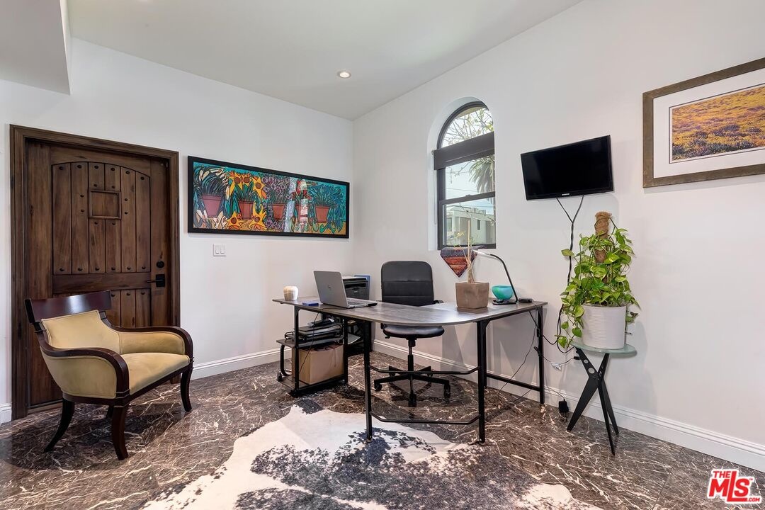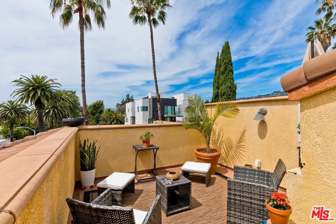 Set in the heart of the coveted West Hollywood Flats, this striking townhome brings together privacy, modern design, and an unbeatable lifestyle in one unforgettable package. As a corner unit in an exclusive four- unit building, it feels like your own private hideaway, yet mere steps from Melrose Place, the Beverly Center, Cedars-Sinai, and some of L.A.'s most iconic cafes, boutiques, and restaurants. The first floor welcomes you with a flexible office/creative space featuring its own private entrance and a convenient half bath perfect for working from home, hosting clients, or carving out a personal retreat. Head upstairs and the home opens dramatically: high ceilings, sunsplashed living spaces, and a seamless flow ideal for both everyday living and stylish entertaining. The kitchen elevates the experience with stainless steel appliances, custom cabinetry, and a walk-in pantry that feels like a luxury all its own. On the third level, two spacious bedrooms are thoughtfully separated by a versatile bonus area ideal for a lounge, reading nook, or media space. And then there's the showstopper: a rooftop terrace with sweeping views. It's the ultimate backdrop for morning coffee, sunset cocktails, or unforgettable gatherings under the stars. Everyday comfort is woven into every detail, from multiple balconies to direct entry, EV- ready garage parking, in-unit laundry, and generous storage throughout. Whether you're seeking a serene sanctuary or a dynamic space built for entertaining, this West Hollywood gem delivers the very best of modern living in one of L.A.'s most iconic neighborhoods.
