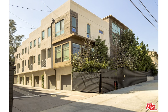 Welcome to one of Hollywood's most coveted addresses, a stunning 2018-built townhouse-style condo nestled within a sleek, gated community just moments from the best dining, entertainment, and culture the city has to offer. Spanning 1,588 square feet across multiple levels, this thoughtfully designed residence delivers the space and privacy of a home with the ease of modern condo living, ideal for young professionals and creatives who want to be at the center of it all while staying connected to every corner of LA via the 101 and 405 freeways. The sun-drenched main level features an open-concept kitchen, dining, and living area with warm hardwood-style flooring, recessed lighting, and a clean, contemporary aesthetic throughout. The chef's kitchen impresses with crisp white cabinetry, a subway tile backsplash, stainless steel appliances, and a generous island perfect for entertaining. The dining area flows seamlessly into a relaxed living room with a private balcony, ideal for morning coffee or evening unwinding.Upstairs, two spacious en-suite bedrooms each offer their own full bath, with the primary suite featuring a large walk-in closet with built-in shelving and drawers an organizer's dream. A convenient powder room on the main level rounds out the thoughtful layout. An in-unit washer and dryer adds everyday convenience.The crown jewel of the home is the expansive private rooftop terrace a true outdoor living room complete with string lights, a gas BBQ, and lounge seating with open sky views across the Hollywood Hills. A charming covered alcove off the terrace offers the perfect nook for a home office with a view, making remote work or study feel anything but ordinary. It's the ideal space to host, create, or simply decompress above the city. Additional highlights include a 2-car tandem garage, 4 guest parking spots, a dog run, and gated security. Trash is covered by the landlord; tenant is responsible for electricity, water and gas. This is Hollywood living at its finest a rare opportunity for those who demand both style and substance in the heart of LA.