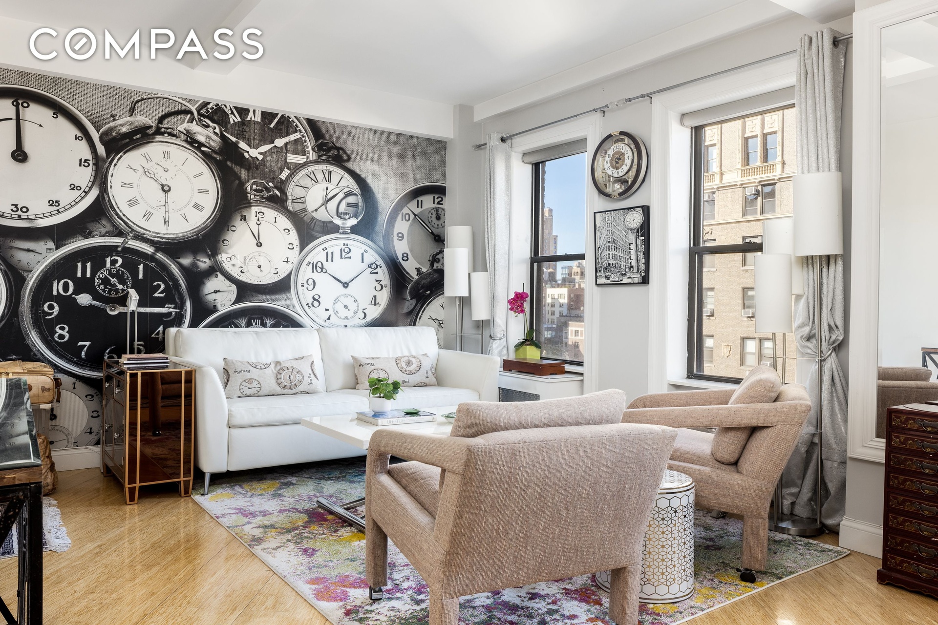 Bright alcove studio on the Upper West Side — an ideal blend of classic pre-war character and modern convenience. North-facing with abundant natural light through four oversized windows and open city views. The apartment features a windowed sleeping alcove separated by a door that is a work of art. other features include high beamed ceilings, bamboo floors, generous custom closet storage including a walk-in, and a fully renovated open kitchen with ample cabinetry, and a Bertazzoni microwave/convection oven. Prime UWS location; one block from Central Park and steps from the 1/2/3 and B/C subway lines. This pre-war elevator building offers video security, on-site common laundry, and a live-in Superintendent. Just a few blocks from Riverside Park, Lincoln Center, top restaurants, cafes, museums, theaters, Trader Joe’s and Fairway — a stylish, well-equipped space perfect for calling home!
