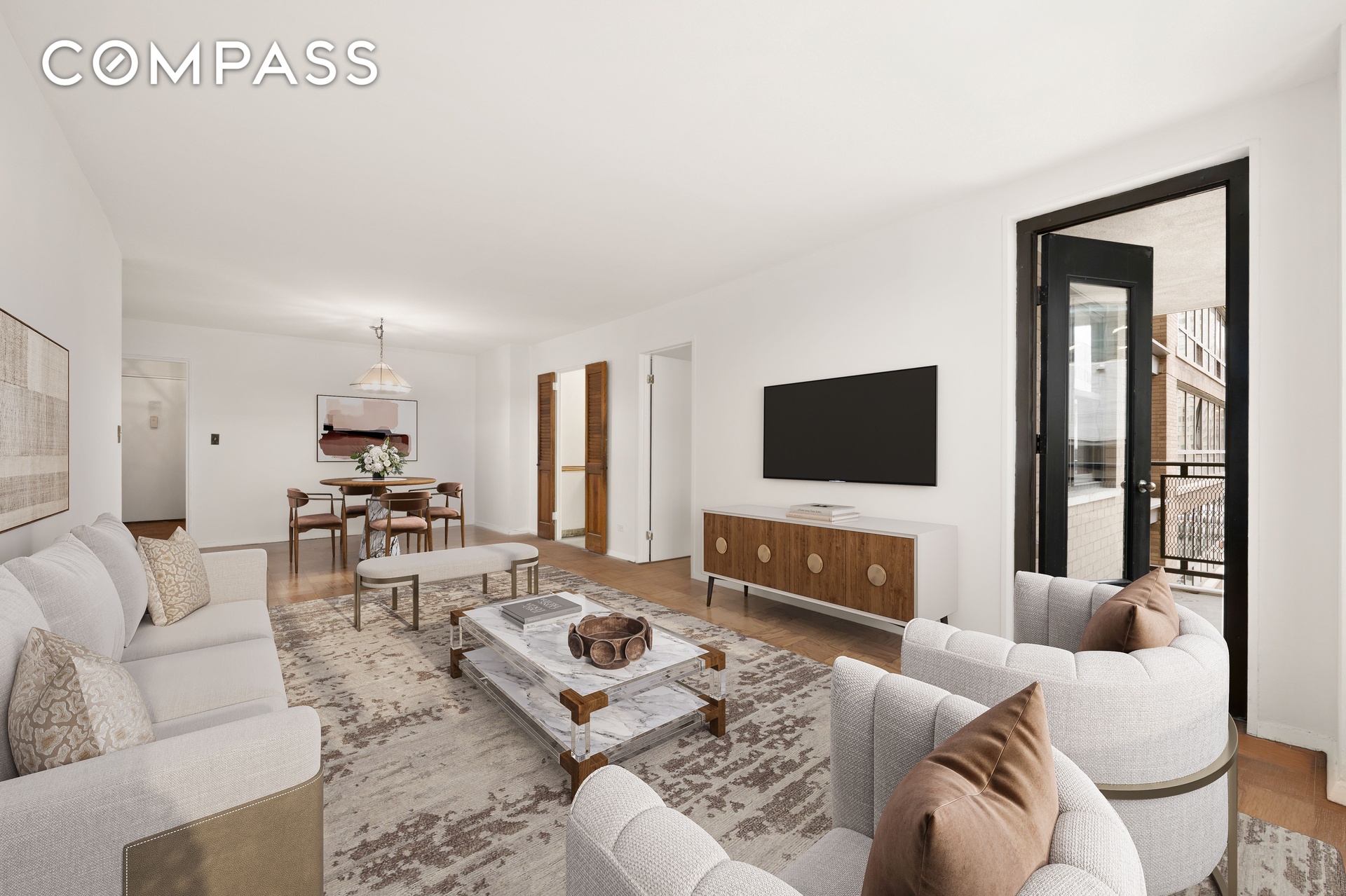 Welcome home to Residence 6W at 165 West 66th Street — a bright and generously proportioned corner residence offering exceptional space, flexible living, and a private terrace in the heart of the Upper West Side.