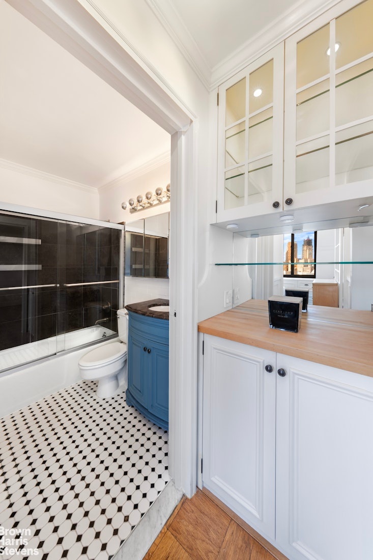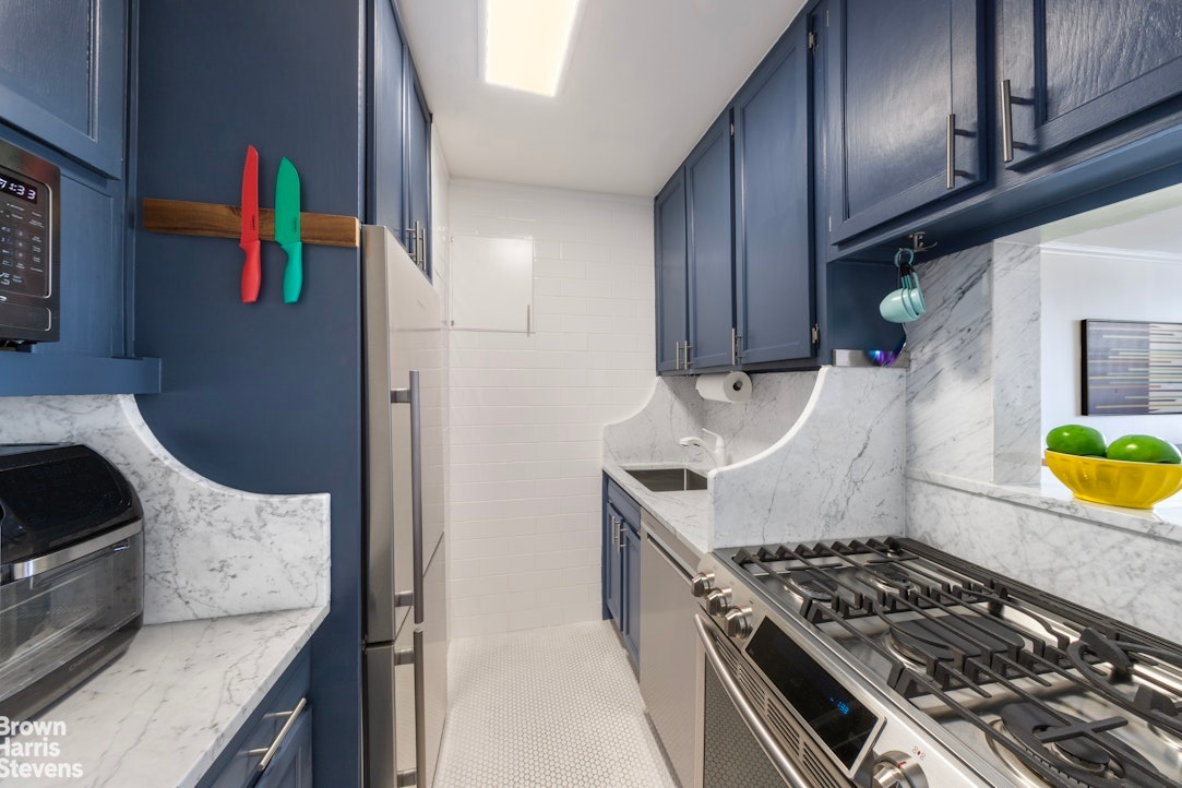 If extraordinary light and views are what you have been searching for, all in a beautifully renovated, home, then your search has just ended! This high floor, sun-flooded, completely turnkey 1 Bedroom, 1 Bathroom home has it all. From the moment you enter, you are captivated by huge picture windows with the NYC Skyline & Central Park as the framed photo. The custom kitchen has barely used stainless steel appliances, white penny tiled floors, and white Caesar stone countertops opened into the dining area with an added island/hidden drawer bonus. The bedroom easily holds a queen-sized bed with accompanying furniture and has the same iconic views as the living room. Renovated bathroom, crown/baseboard moulding, recessed lighting, and custom built-ins throughout, make this home your next chapter!