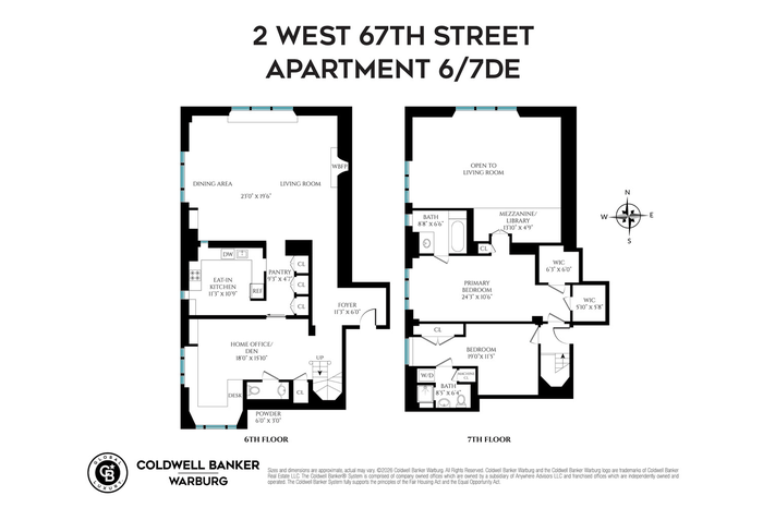 A beautiful prewar staircase leads to the upper level, where the primary suite boasts a charming mezzanine overlooking the great room. Down the hall is a second bedroom with an ensuite bathroom with washer/dryer. Central air conditioning completes this exceptional home.