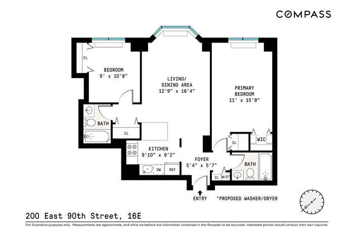 You're welcomed home by blue sky and lots of southeastern sunlight. Your gracious living room has a rare bay window, the perfect place for a cozy chair. So open is the view from here (and both bedrooms), that you can even see slivers of the East River. You'll also look down on tree-filled Ruppert Park, half a block away. Your king-sized primary bedroom easily fits a king bed with nightstands and a desk if you want one, and has two oversized closets. Your bathroom is smartly tucked away to allow your bedroom's extra closet space while also adding some privacy. The split second bedroom also maximizes privacy, has a large closet, and has an adjacent full bathroom of its own. Your open kitchen is wide enough for teamwork cooking and has a breakfast bar and lots of counter and storage space. A proposed washer/dryer in the closet adjacent to the primary bathroom, for those interested in adding one, helps this home to check another important box.