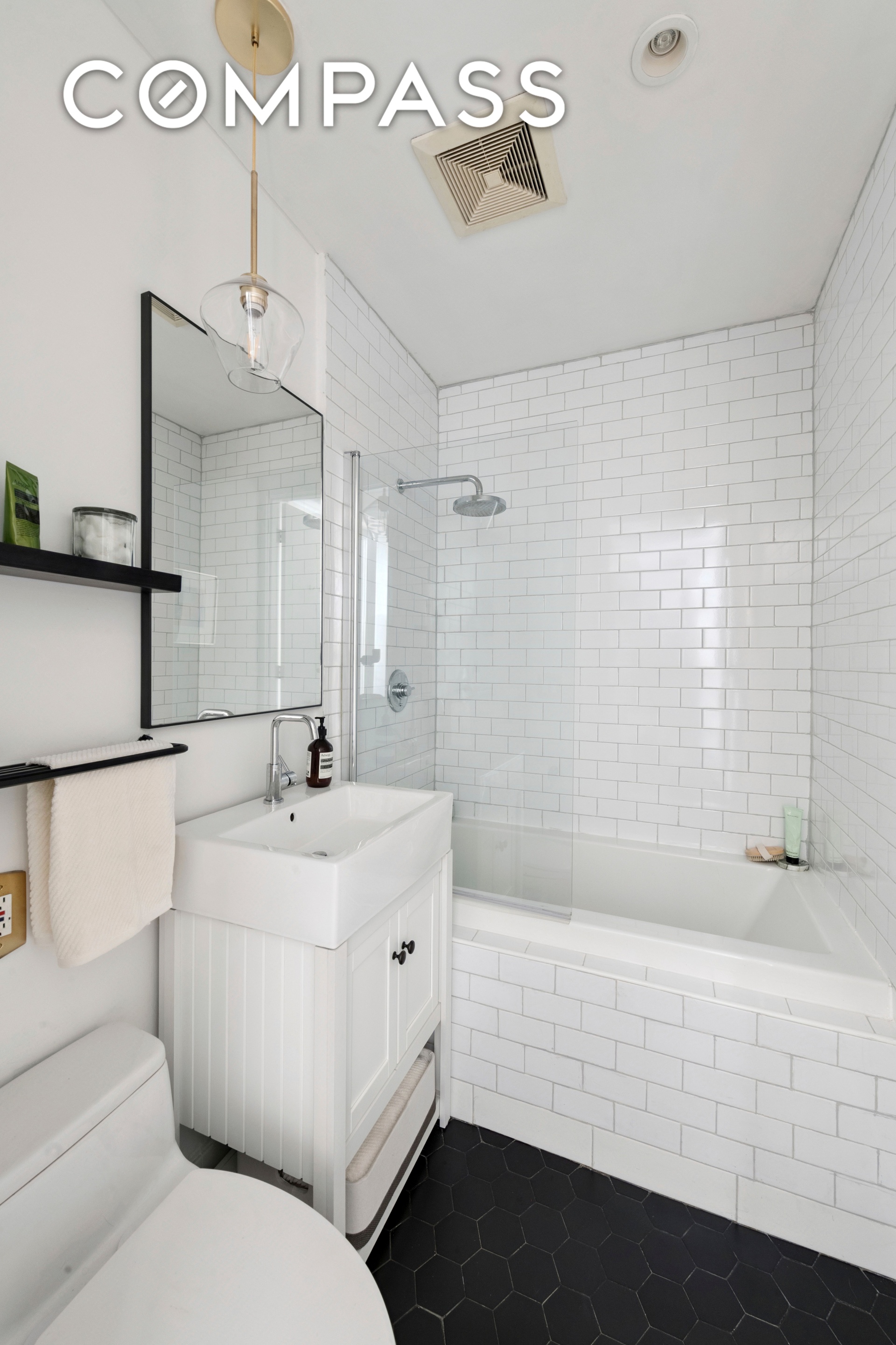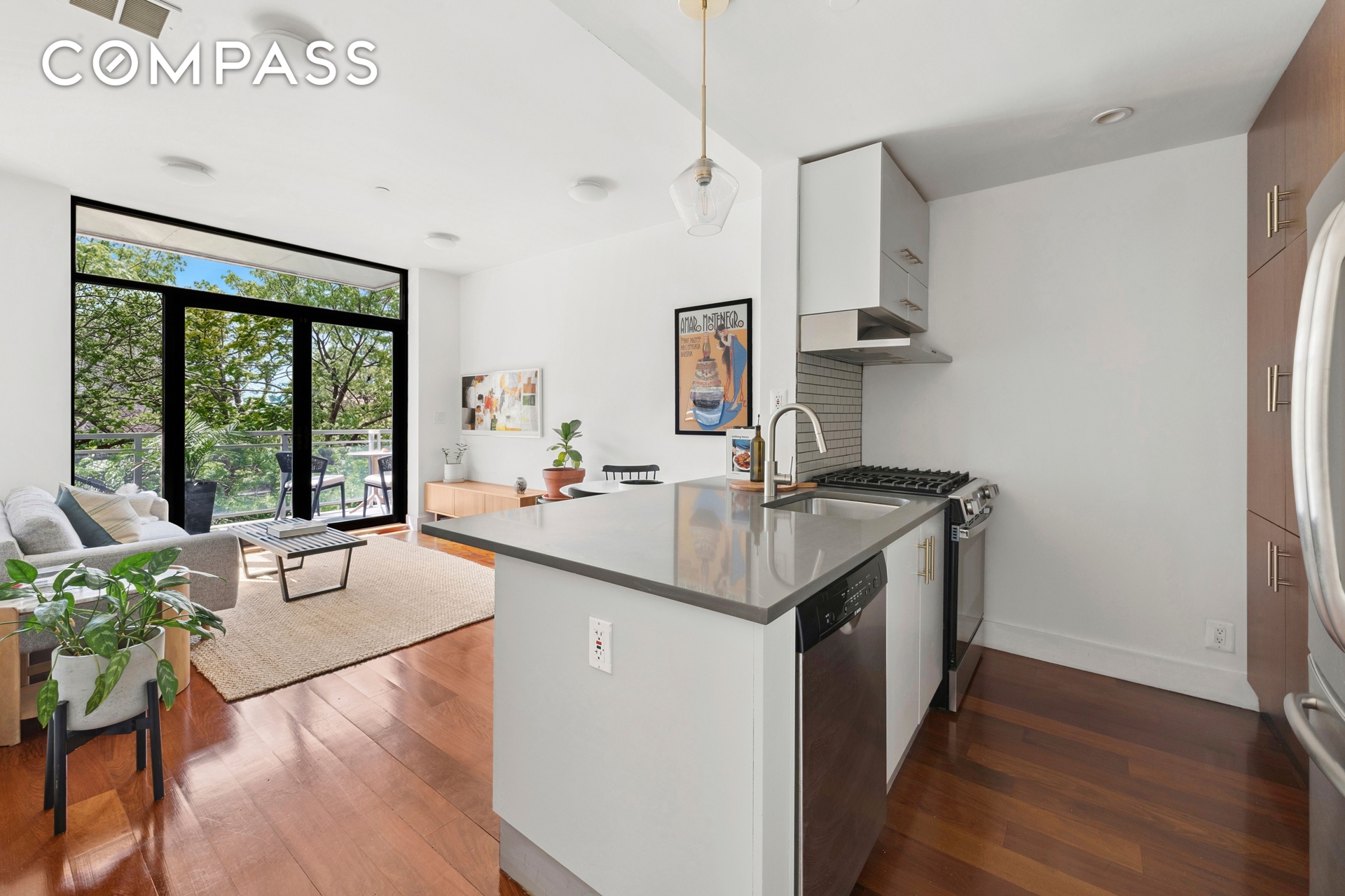 Make Apartment 3D your next home. Located just three blocks from Fort Greene Park, this smartly outfitted one bedroom features hardwood floors, high ceilings, and space for everything you need. Take the elevator up and enter your space: a beautiful kitchen with a big island for cooking and entertaining, with full-size appliances, cabinetry, and dishwasher.