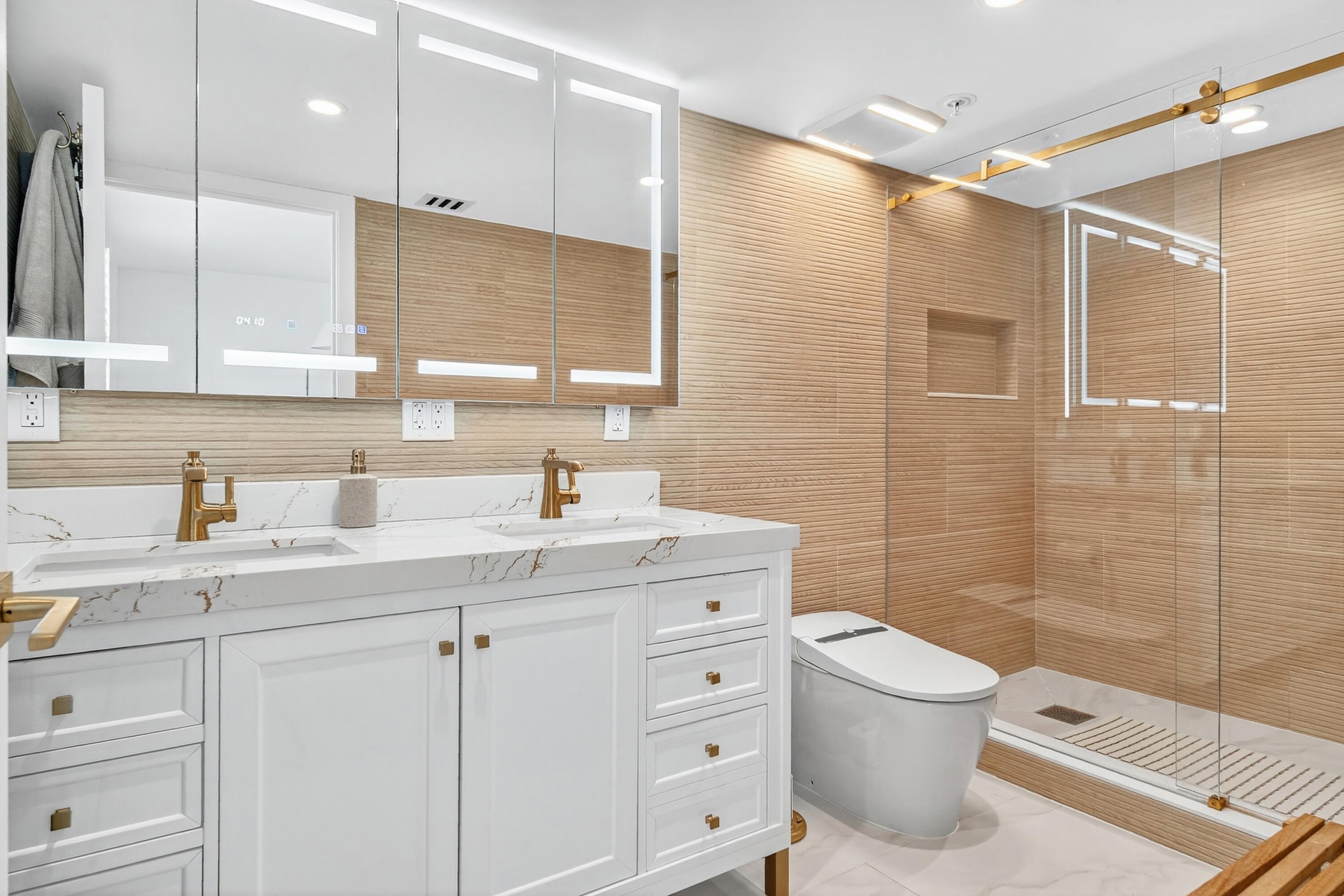 Spectacular Waterfront Condo, No Expense Spared - Custom Luxury Build by Ferguson Home Build Experience elevated living in this meticulously upgraded, one-of-a-kind residence where every detail has been thoughtfully designed and flawlessly executed. This is not just a home—it's a statement of luxury, security, and craftsmanship. Designer Kitchen Perfection A true showpiece with custom cabinetry, a seamless one-piece Cambria quartz countertop and full backsplash, and top-of-the-line Sub-Zero refrigerator and Bosch appliances. Includes a custom-designed space for a 188-bottle wine cooler—perfect for collectors and entertainers. uxury Bathrooms - Spa-Level Experience Indulge in high-end custom bathrooms featuring: • Italian hand-painted tiles • 100% solid brass faucets and shower fixtures • Custom double-sink vanities • LED smart mirrors with magnifiers, defrost, and front/back lighting • Premium DXV bidet system with all advanced functions Custom Interiors Throughout • Built-in closets by design • Solid, soundproof custom wood doors and frames with designer hardware • 1.5-inch thick custom media walls and shelving • Plantation shutters throughout Architectural Enhancements & Finishes No detail overlooked—walls and ceilings have been fully refinished to a smooth, modern finish, removing all outdated textures. Enhanced with custom paint, recessed lighting, and thoughtfully placed under-cabinet outlets. Unmatched Quality & Security Featuring a 700 lb ballistic rifle-proof entry door with bulletproof peephole and the highest-rated fire protection—crafted by Armored Residential Doors (London, UK). Paired with brand-new hurricane impact windows and doors for ultimate peace of mind and Much More...