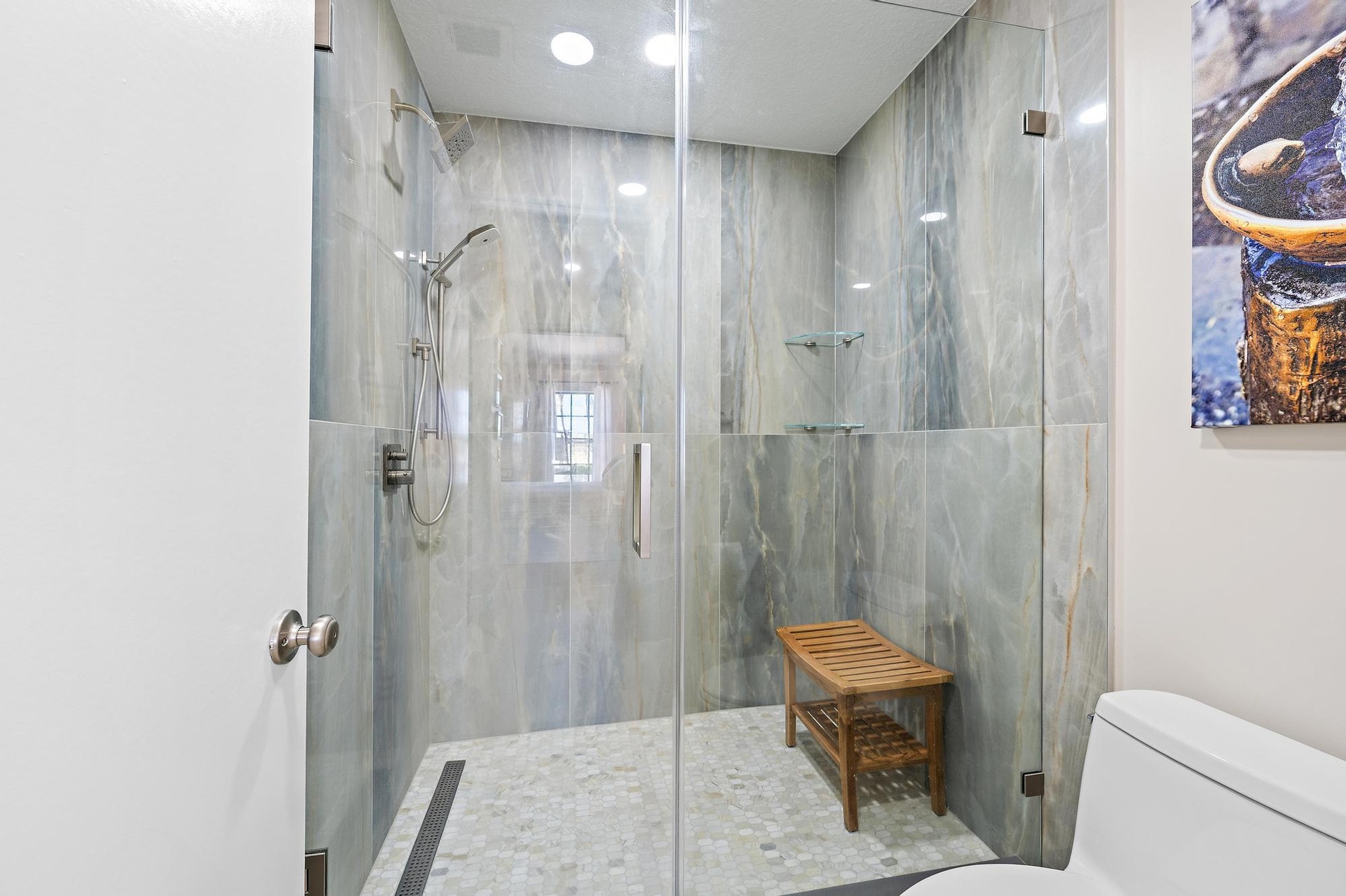 - Back patio with panoramic water views steps from freshwater boat slip.