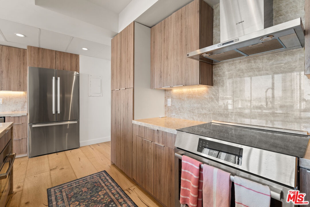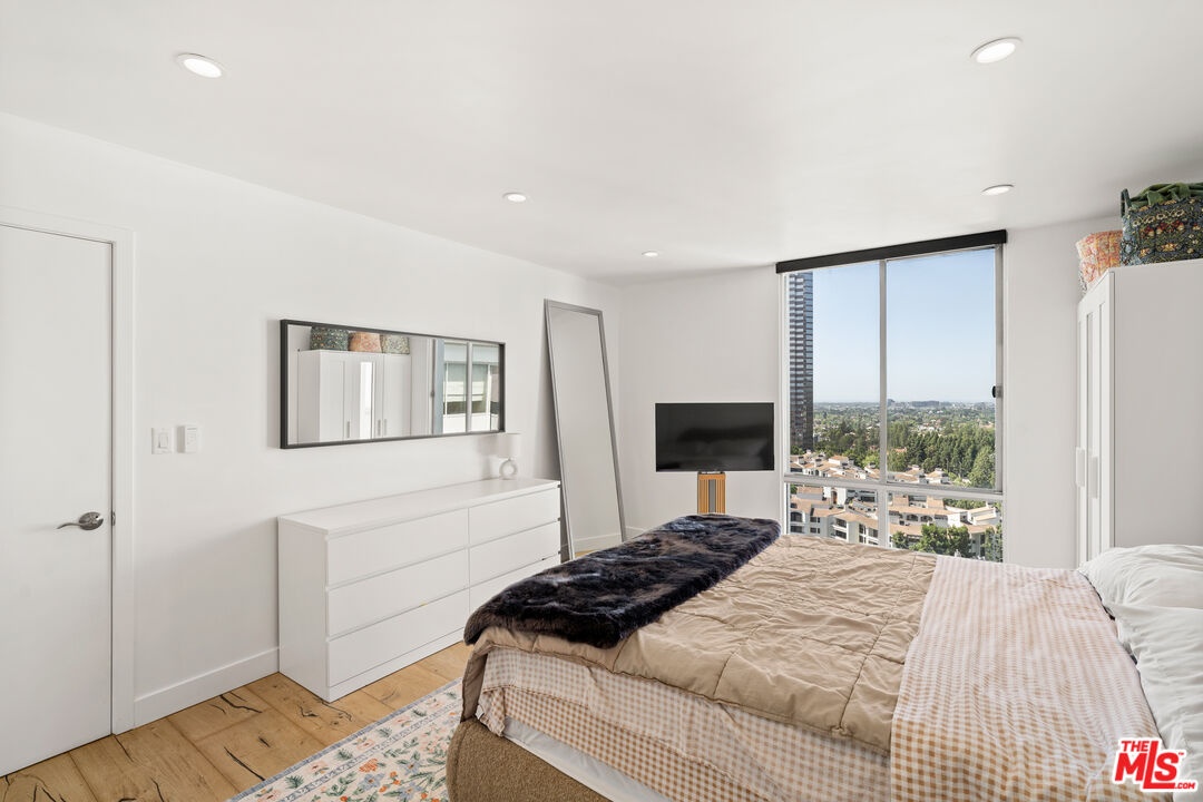 Perched high above the city in the iconic Century Park East, this rare penthouse residence presents a truly elevated lifestyle. Fully remodeled in 2025, this 2-bedroom, 2-bathroom home spans 1,053 sq. ft. of refined living space, designed with modern elegance and effortless flow. An open-concept kitchen anchors the home, showcasing custom wood cabinetry, sleek quartz countertops, and breathtaking views that extend to the ocean. Floor-to-ceiling windows frame dazzling city lights from every room, while raised ceilings, rich wood floors, and abundant natural light create an atmosphere of sophistication and warmth. The thoughtfully designed layout places one bedroom on either side of the living room, ensuring privacy, while the west-facing private balcony offers the perfect vantage point for golden sunsets. Century Park East is renowned for its full-service lifestyle, offering 24-hour valet, concierge, doorman, and guest parking. Residents enjoy resort-style amenities including an Olympic-size heated pool, tennis court, state-of-the-art fitness center, dog park, children's playground, and beautifully landscaped grounds. Set in the heart of Century City, this home is just moments from world-class shopping, dining, and entertainment at Westfield Century City, with Beverly Hills and Westwood only minutes away. Penthouse opportunities in this building are exceedingly rare making this an exclusive chance to own a piece of Los Angeles luxury living.