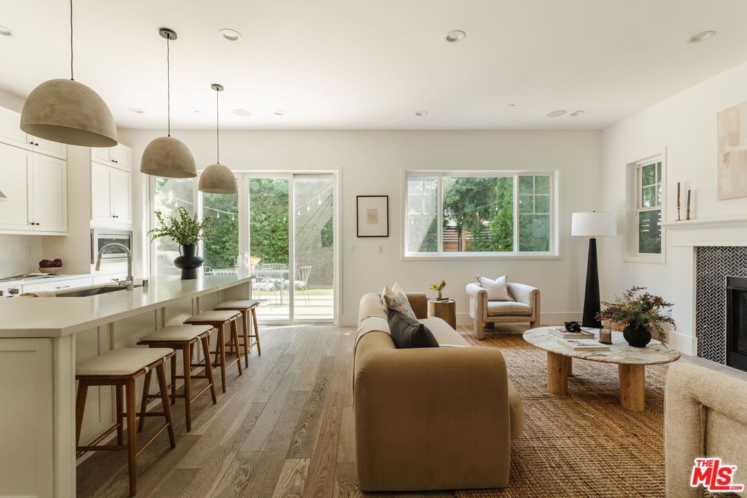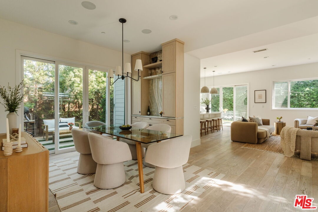 Welcome to 3914 Keeshen Drive, a bright and inviting modern farmhouse in Mar Vista that perfectly blends comfort, style, and privacy. This 4-bedroom, 3-bathroom residence spans 2,421 square feet and is filled with natural light, highlighting beautiful hardwood floors throughout. Equipped with solar panels, the home also offers energy efficiency and long-term savings. Designed for both everyday living and entertaining, the home features a dining area that opens to two outdoor patios, along with a custom marble bar that creates the perfect setting for hosting. Ample storage throughout adds to the home's functionality. A main-level bedroom offers flexibility as a guest room, office, or playroom. Upstairs, three bedrooms provide a peaceful retreat, including a spacious primary suite with dual sinks and a large closet. Outside, the backyard is enveloped by tall hedges and strung with soft overhead lighting, offering exceptional privacy and a warm, inviting atmosphere. Located in one of Mar Vista's most desirable neighborhoods, just moments from the farmers market and centrally positioned for easy access across Los Angeles.