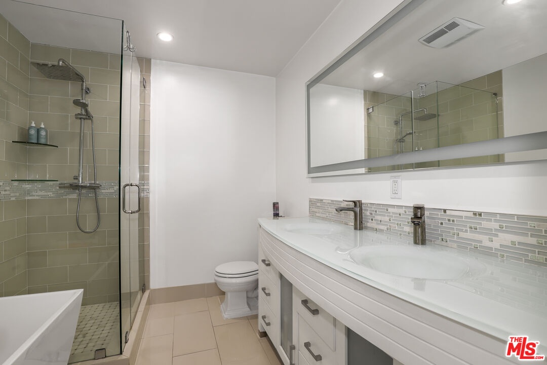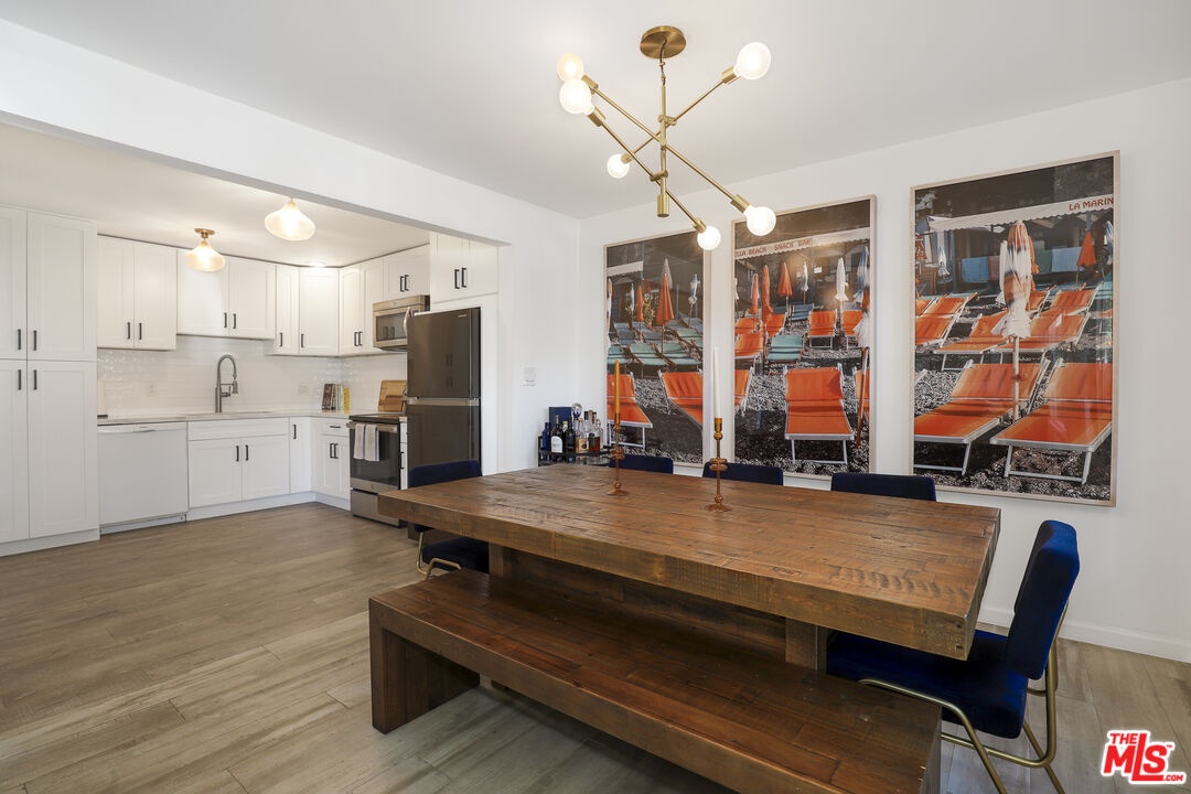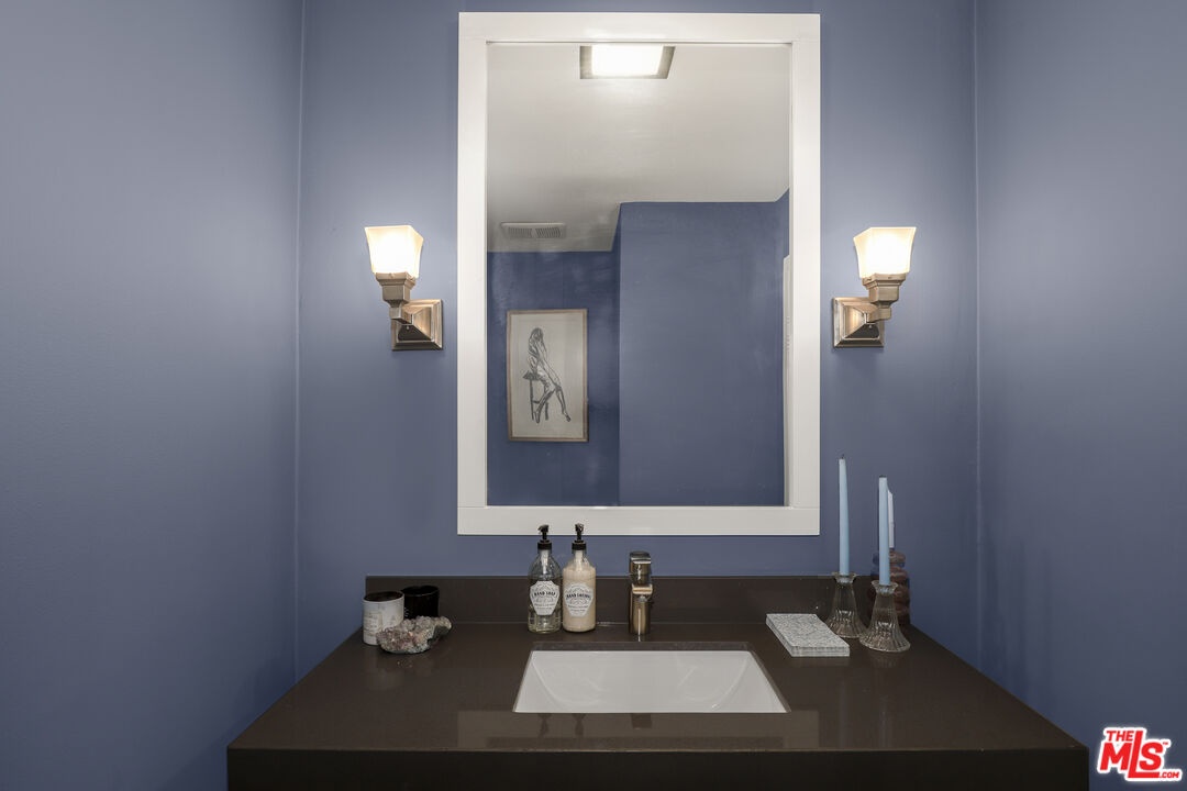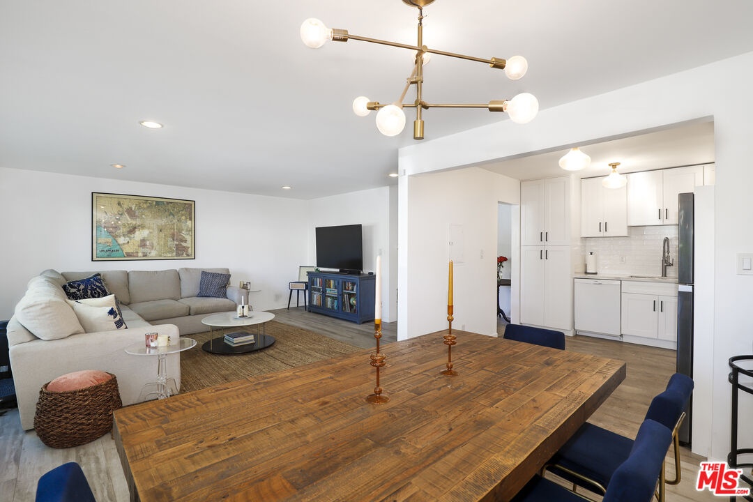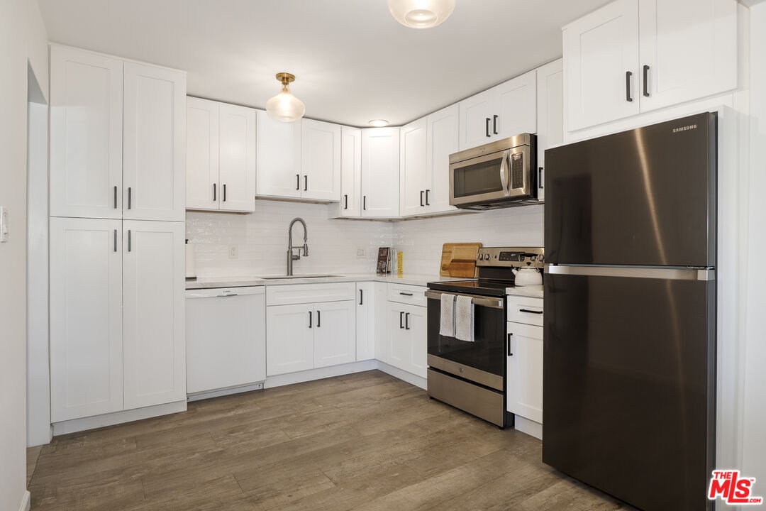 A rare offering in the heart of Beverly Hills, this exquisitely reimagined 1-bedroom, 1.5-bath residence embodies modern sophistication and effortless luxury. Thoughtfully curated with high-end designer finishes, the home unfolds through an open-concept layout bathed in natural light, where expansive windows frame a serene, elevated living experience. Refined interiors are defined by sleek flooring, ambient recessed lighting with dimmers, and a seamless flow designed for both intimate living and elevated entertaining. The chef's kitchen is a statement of style and function, featuring striking quartz countertops, premium stainless steel appliances, and custom soft-close cabinetry.A beautifully appointed powder room enhances the main living space, while the primary suite serves as a private retreat- complete with multiple closets, custom automatic blinds, and a spa-caliber bath offering dual vanities, a deep soaking tub, and a separate glass-enclosed shower. Modern conveniences include central HVAC, in-unit laundry, a Ring Video Doorbell, and a fully integrated SimpliSafe security system. The residence also includes secured, gated parking. Positioned moments from Blue Bottle Coffee, Alfred Coffee, Whole Foods Market, Trader Joe's, the Beverly Center, and the world-renowned Robertson Boulevard, this residence offers unparalleled access to the finest dining, shopping, and lifestyle amenities. A true turnkey jewel for the most discerning buyer.