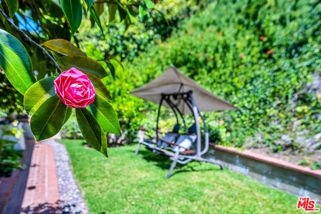 Rare opportunity to own in Brentwood at an approachable price point in an enchanting 2 bedroom, 2 bathroom jewel-box traditional that feels like a private garden retreat. Surrounded by lush, mature landscaping including hibiscus, bougainvillea, citrus and persimmon trees, the home feels tucked away and serene with greenery framed from nearly every window. Sunlight fills the interiors, while the layout offers an easy, comfortable flow for everyday living and entertaining. Living room with wood-burning and gas fireplace opens to a cozy den with built-ins and large sliding doors which lead to rear patio, creating a seamless indoor-outdoor flow ideal for hosting friends or relaxed evenings at home. The kitchen features a Dutch door to the yard, double farmhouse sink overlooking Camellia trees and yard, with breakfast bar that opens to a bright dining area. Spacious primary suite offers a dressing area, built-in vanity, and cedar closet while the second bedroom and second full bathroom are thoughtfully positioned off the hall. Central heat and air paired with ceiling fans and cross breezes through windows for controlled or natural air flow. Hardwood oak floors, plantation shutters and Gimbal art lights on dimmers blend classic charm with everyday comfort. Whether you move right in or personalize over time, this is a unique chance to establish roots in one of the Westside's most sought-after neighborhoods offering both immediate livability and long-term upside.