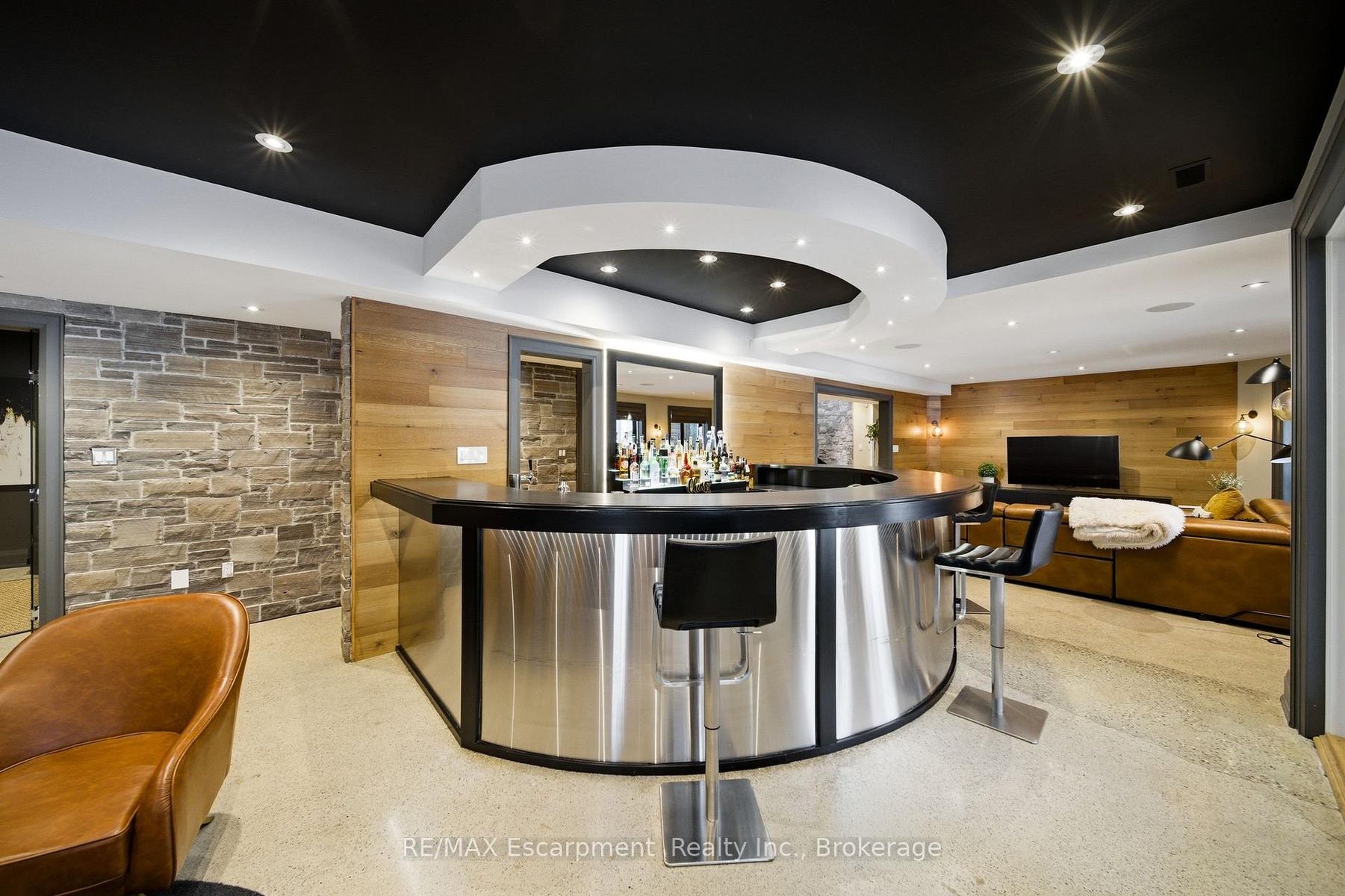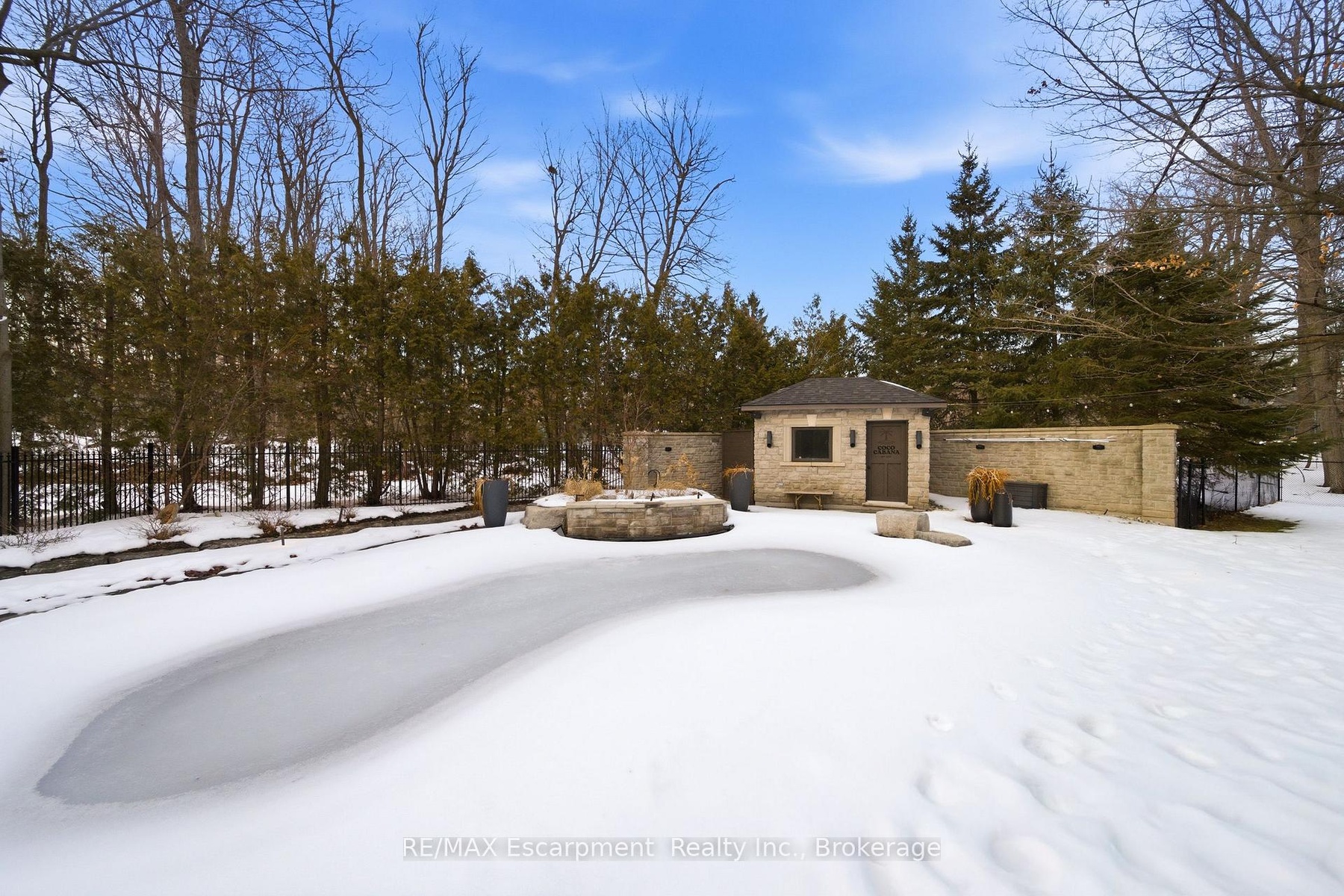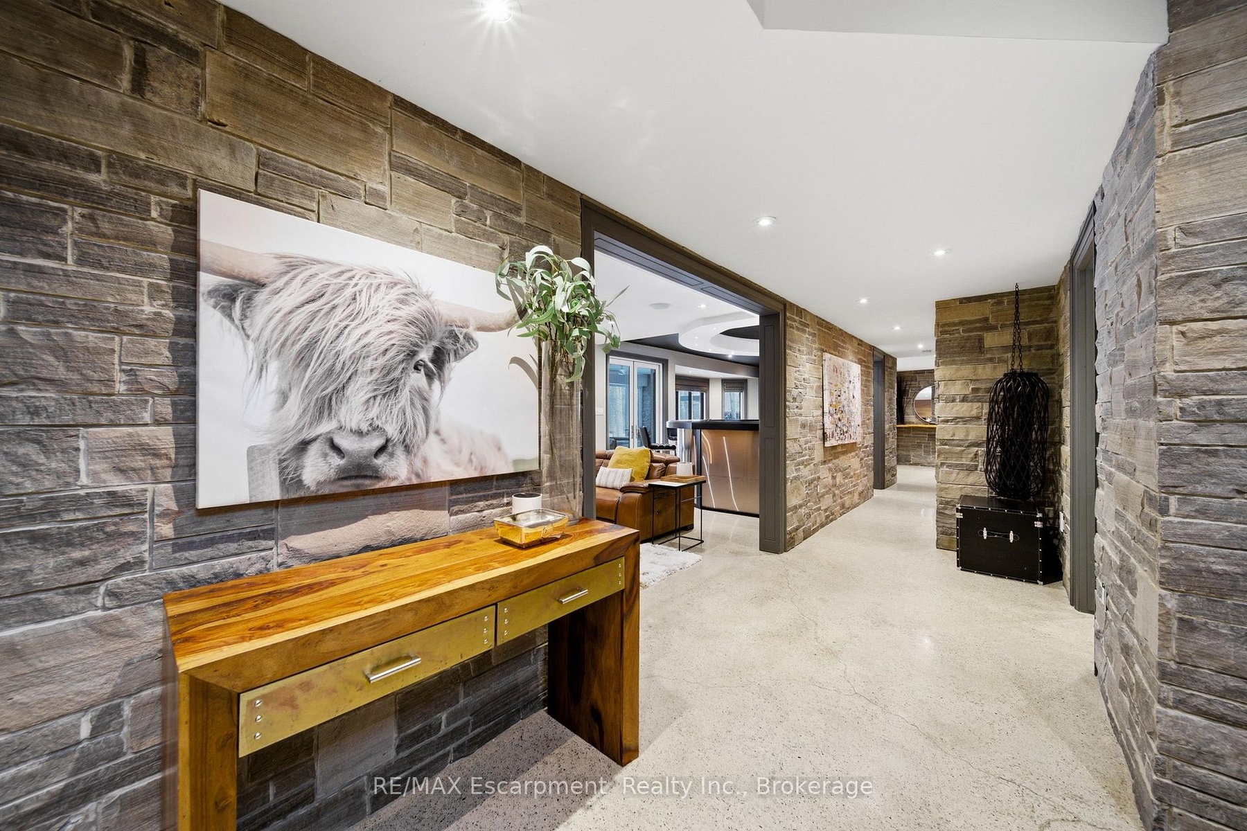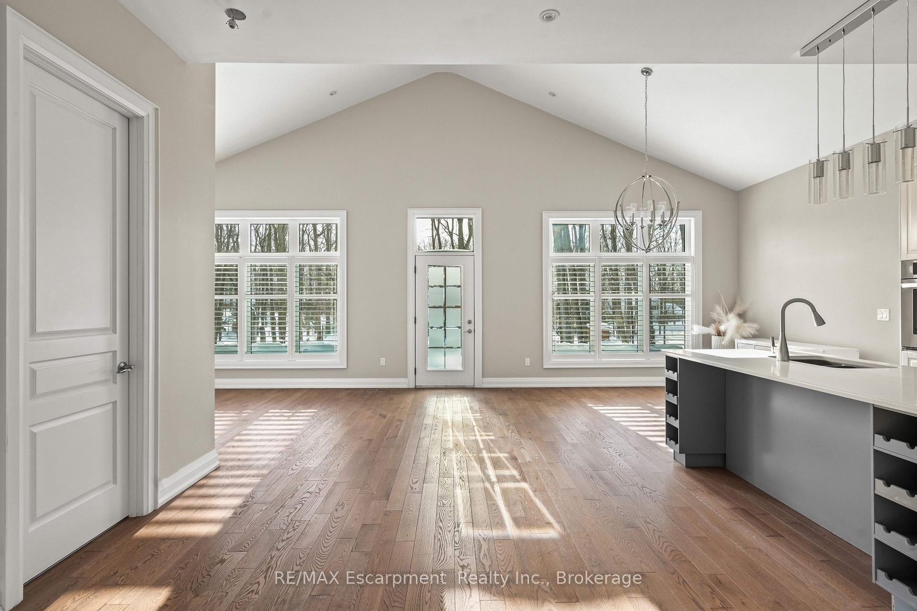Rare offering on 2 private acres in one of Burlington's most sought after estate communities. Fully renovated bungalow with over 6,000 sq ft of finished living space, beautifully designed for everyday living, entertaining, and long term flexibility. An incredible chef's style kitchen features Wolf and SubZero appliances and a large multifunction island while the separate prep kitchen is ideal for everyday use with a direct walkout to an elevated patio overlooking the pool and landscaped grounds. The open concept living and dining areas are bright, inviting, and flow naturally for both daily life and hosting. The main level includes a beautiful primary suite with a spa-like ensuite, an additional bedroom, and a private office, creating a layout that works just as well years from now as it does today. The lower level is a standout, offering additional bedrooms, a gym, and a large recreation space with custom bar, ideal for entertaining or giving older kids and guests their own space. Outside, the property is truly special. A saltwater pool, multiple cabanas, outdoor kitchen, fireplace, hot tub, and expansive grass and treed areas create a private setting that is hard to find within Burlington. A fully separate coach house offers incredible flexibility with its own kitchen, bedroom, and bathrooms, ideal for extended family, guests, or live in support. Rare lower level garage parking for up to five vehicles, in addition to the attached garage and large driveway. A beautifully finished estate property offering space, privacy, and a level of functionality that is rarely available within the city.