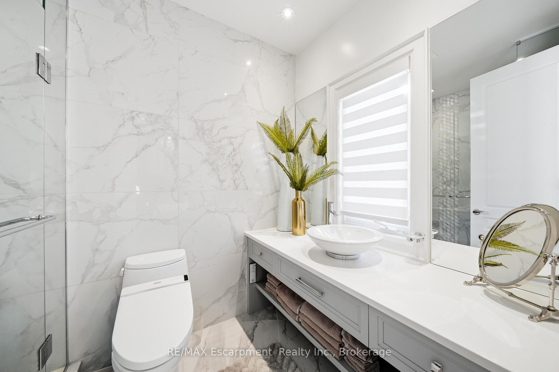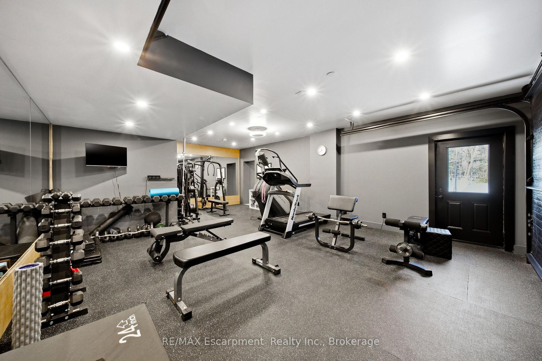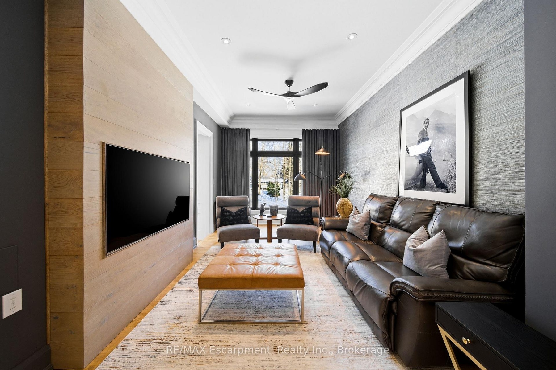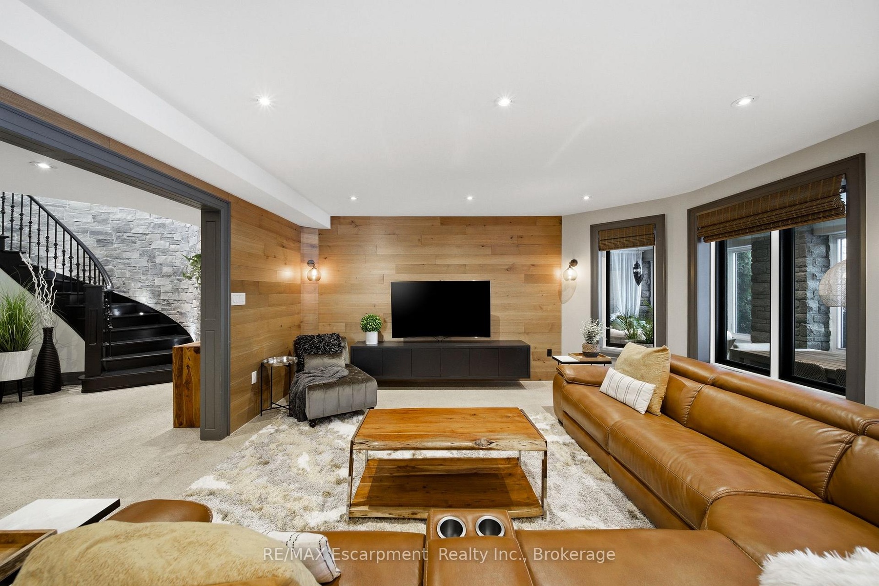 Rare offering on 2 private acres in one of Burlington's most sought after estate communities. Fully renovated bungalow with over 6,000 sq ft of finished living space, beautifully designed for everyday living, entertaining, and long term flexibility. An incredible chef's style kitchen features Wolf and SubZero appliances and a large multifunction island while the separate prep kitchen is ideal for everyday use with a direct walkout to an elevated patio overlooking the pool and landscaped grounds. The open concept living and dining areas are bright, inviting, and flow naturally for both daily life and hosting. The main level includes a beautiful primary suite with a spa-like ensuite, an additional bedroom, and a private office, creating a layout that works just as well years from now as it does today. The lower level is a standout, offering additional bedrooms, a gym, and a large recreation space with custom bar, ideal for entertaining or giving older kids and guests their own space. Outside, the property is truly special. A saltwater pool, multiple cabanas, outdoor kitchen, fireplace, hot tub, and expansive grass and treed areas create a private setting that is hard to find within Burlington. A fully separate coach house offers incredible flexibility with its own kitchen, bedroom, and bathrooms, ideal for extended family, guests, or live in support. Rare lower level garage parking for up to five vehicles, in addition to the attached garage and large driveway. A beautifully finished estate property offering space, privacy, and a level of functionality that is rarely available within the city.