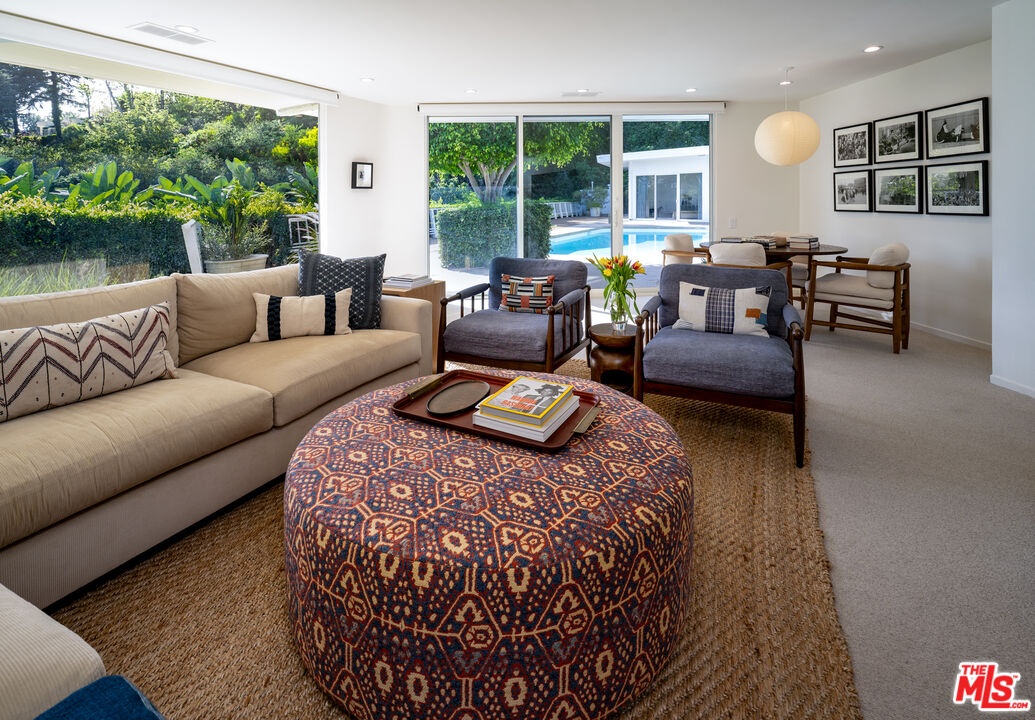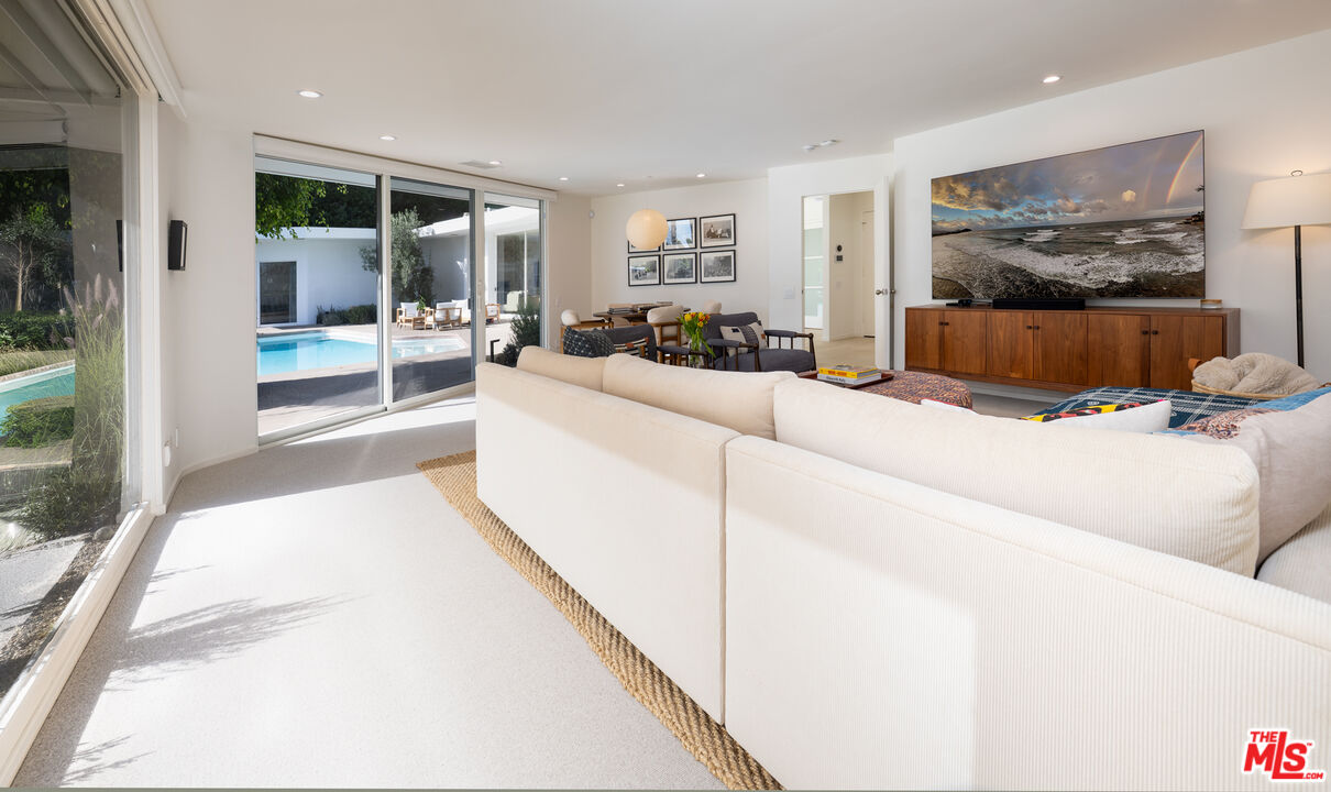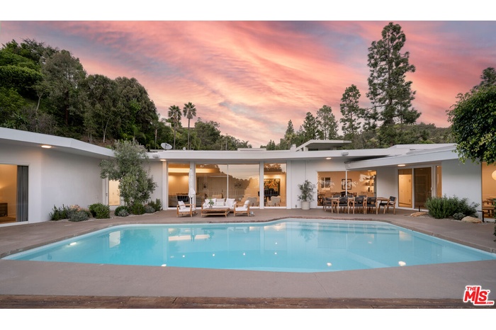 Set within the prestigious enclave of Trousdale Estates this beautifully remodeled mid-century architectural home offers panoramic city views with a glimpse of the Pacific Ocean with an effortless indoor-outdoor lifestyle synonymous with the best of Beverly Hills living. Stepping into a light-filled living room anchored by a fireplace and dramatic glass walls stretching across the home, framing the sparkling pool and breathtaking skyline. This single-level residence features six bedrooms and five bathrooms, all thoughtfully updated in a 2025 renovation; including new fixtures, elegant tilework, and kitchen adding modern appliances while preserving the timeless character of its mid-century design. Designed for both relaxed living and refined entertaining, the home flows seamlessly to the outdoor grounds with landscaped gardens, a tranquil koi pond, and a swimmer's pool with an expansive view terrace. With a spacious motor court accommodating multiple vehicles, complemented by a three-car garage this exceptional property offers a rare and exceptional opportunity in one of Beverly Hills' most coveted neighborhoods. Inquire for availability starting in July and for furnished lease terms.