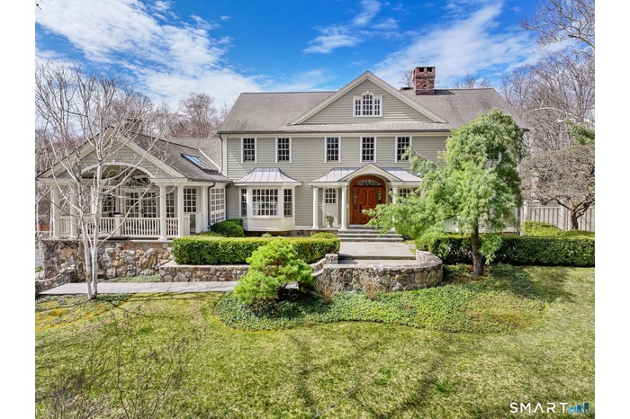 Designed by acclaimed architect Dinyar Wadia, this exceptional 5 bedroom estate is set on breathtaking, park like grounds just minutes from downtown New Canaan.