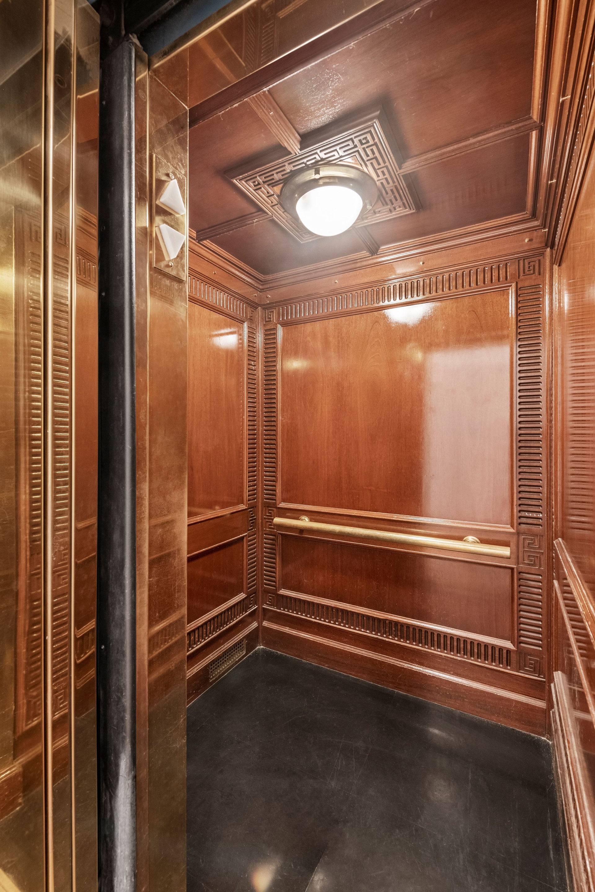 The townhouse spans five full floors, all serviced by an expansive wood-paneled commercial elevator. Additional highlights include: