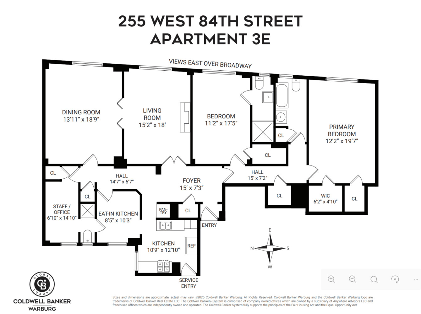 While technically the third floor, this apartment has the floor height of the fifth floor in other buildings, and features city views, partial sky, and lots of sunlight. In-unit washer/dryer and central air are permitted with board approval. Built in 1914, The Alameda is a preeminent full-service building located on 84th Street between Broadway and West End Avenue - in the heart of the vibrant Upper West side and just a few blocks from both Central Park and Riverside Park. Residents enjoy a full-time doorman and porter, live-in superintendent, landscaped GREEN roof deck with both Hudson and Central Park views, and bike room. Conveniently located near the city's best public and private schools, as well as some of the Upper West Side's most notable restaurants, services, and public transportation. 75% financing, pets and co-purchasing permitted.