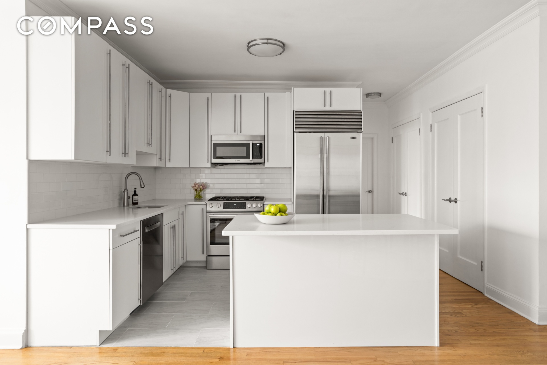 From the pristinely renovated bathrooms, beautiful hardwood floors, and modern chef's kitchen with stainless steel appliances, a five-burner stove and Sub-Zero refrigerator, this apartment also comes with it's own in-unit Washer/Dryer.