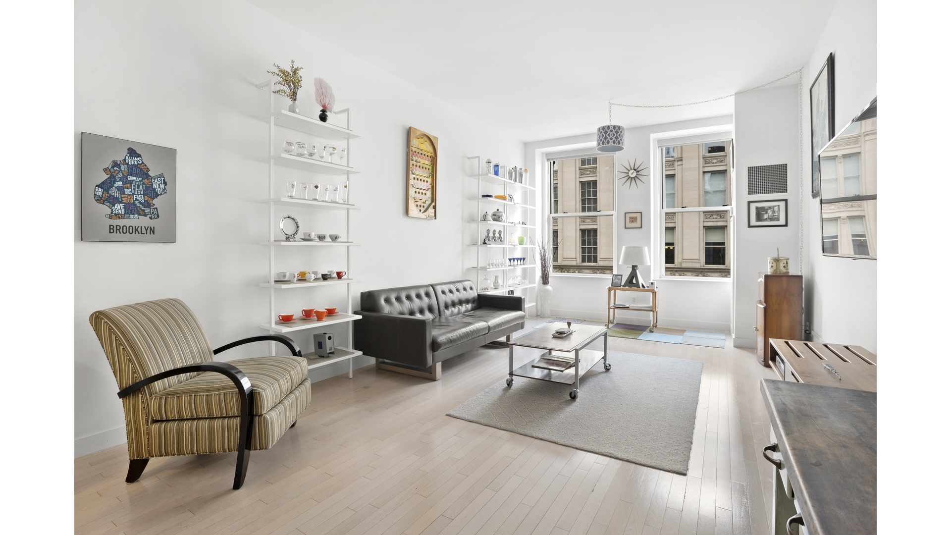 Juxtapose between Flatiron and Chelsea enjoy Loft Living at The Cammeyer, a 19th century shoe store restyled as minimal loft condo residences. Unit 5D, is a sprawling west-facing studio with a separate sleep den boasting architectural New York City views.