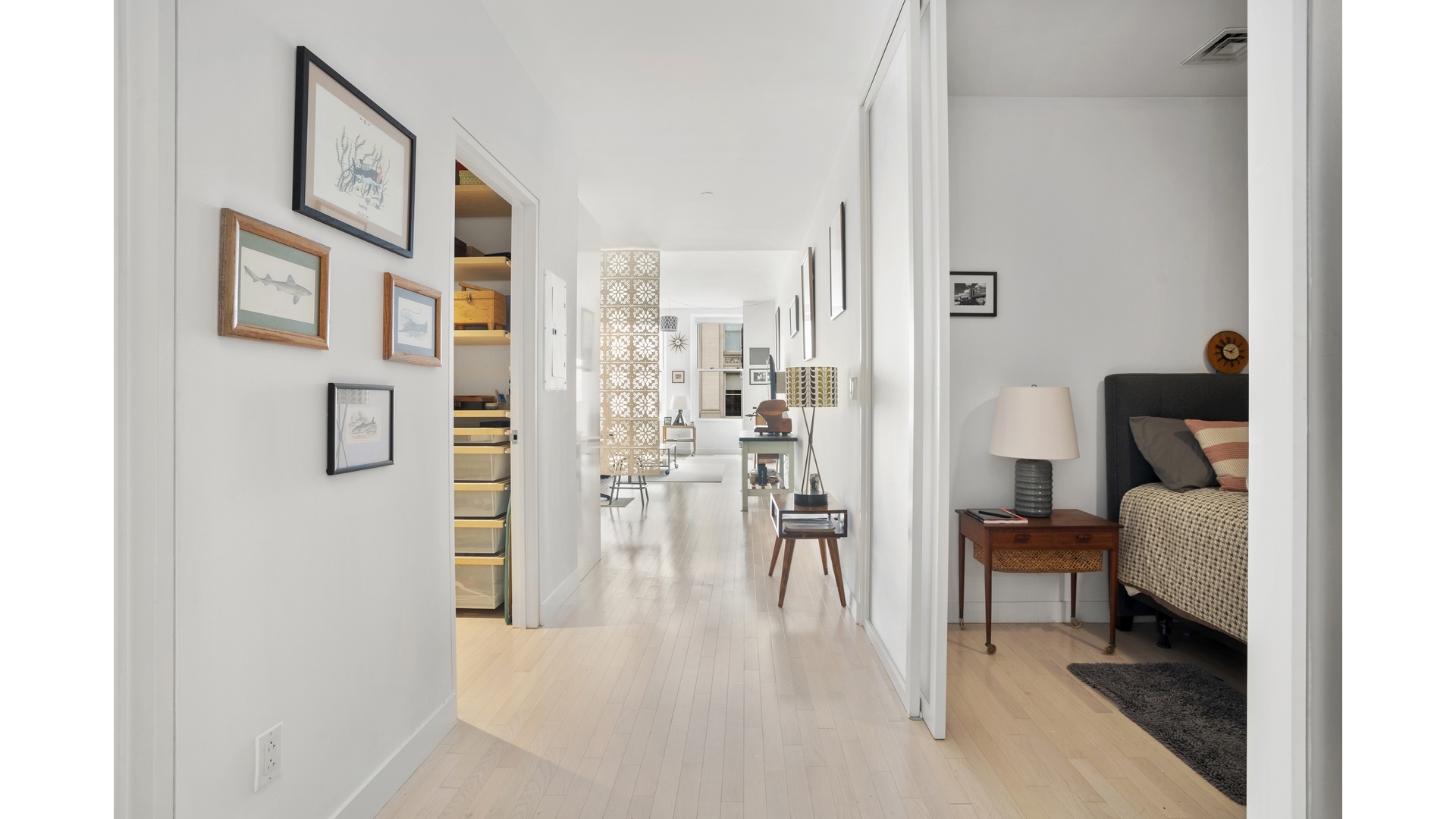 Additional accents of this home are fully outfitted walk-in-closet, custom shades for the oversized windows, in-unit washer/dryer closet, antique white oak floors and central air & heat. #5D's footprint enjoys 100% fully usable space; its layout boasts full functionality with a size larger than most traditional one bedrooms .